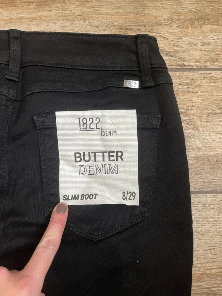 1822 DENIM NEW Black Butter Jeans High Rise Slim Boot Women’s Sz 8 / 29 NWT