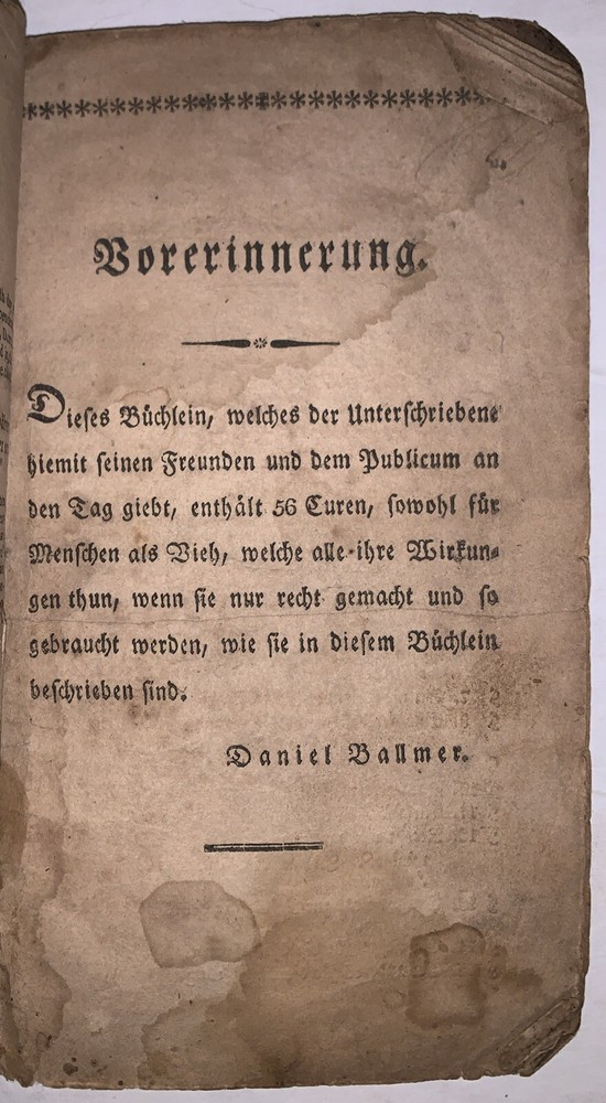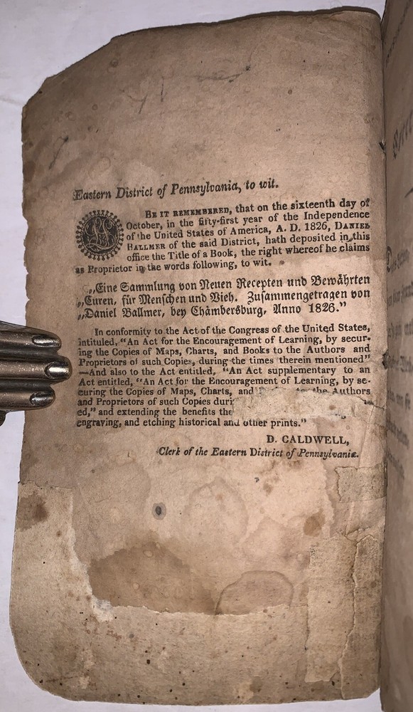 1827, 1st, PA GERMAN, MEDICAL BOOK, CURES FOR HUMANS & LIVESTOCK, DANIEL BALLMER