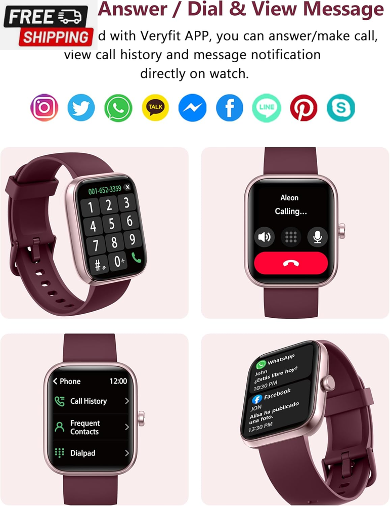 Fast Shipping On All Items 30 Days Money Guarantee Customer Support Excellent Service 100% Satisfaction Satisfaction Guaranteed Smart Watch, 1.83'' Smartwatch Women Men Answer Make Calls, Alexa Fitness Watch, IP68 Waterproof Fitness Tracker, Heart Rate Monitor, 100+ Sports Pedometer Watch, Timer for Android & Ios Phone Specification Item model number IDW25 Battery Capacity 300 Milliamp Hours Operating System iOS 9.0 or Android 6.0 and above Battery Cell Composition Lithium Ion Color PURPLE Memory Storage Capacity 128 MB Product Dimensions 15.75 x 11.81 x 11.81 inches Country of Origin China Connectivity Technology Bluetooth Item Weight 38 Grams Shape Rectangular Wireless Communication Standard Bluetooth Standing screen display size 1.83 Inches Batteries 1 Lithium Polymer batteries required. (included) Manufacturer KALINCO Screen Size 1.83 Inches Special Feature Alexa Built-in, Make/Answer Calls, Heart Rate/Blood Oxygen/Stress Monitoring GPS No GPS Item Description Lightweight Smart Watch with Long Battery Life: This smartwatch features a 1.83-inch screen with a 240*284 resolution, delivering a stunning HD visual experience. Its slim body is paired with a flexible and durable silicone strap, weighing just 38g for ultimate comfort. Fit Watch has a battery life of 7 days after 2 hours of charging. In power-saving mode, it can last for 20 days, and in standby mode, it can endure for 30 days. Please download VeryFit APP and pair the watch with APP for the first usage. The watch only works with Android 6.0+ or iOS 9.0+ smartphones.(๐๐จ๐ญ ๐๐จ๐ซ ๐ญ๐๐๐ฅ๐๐ญ ๐จ๐ซ ๐๐จ๐ฆ๐ฉ๐ฎ๐ญ๐๐ซ.) Alexa Built-in Fitness Tracker: Download the 'VeryFit' app from App Store/Google play and connect your fitness tracker with smartphone. With Alexa, you have the convenience of controlling various tasks solely through your voice. You can use voice control or you can wake up Alexa by pressing and holding the power button or by calling the icon. Just speak into your watch to ask questions, set an alarm, control music, check the weather, control Alexa smart devices and more. Stay Connected to Call & View Messages Freely: You can easily answer/make calls and receive message notifications (such as WhatsAPP, SNS, etc.) on the watch ๐ฎ๐ง๐๐๐ซ ๐๐จ๐ง๐ง๐๐๐ญ๐๐ ๐ฌ๐ญ๐๐ญ๐ฎ๐ฌ. The red dot mark will appear at the top of watch face when you have unread notifications, which remind you not to miss any messages with this new function. You can also set the sound volume and vibration intensity of the watch or turn on silent mode. It's also easy to set up Do Not Disturb mode for your focus periods. ๐๐ฅ๐๐๐ฌ๐ ๐ง๐จ๐ญ๐ ๐๐๐๐๐๐ ๐ซ๐๐ฉ๐ฅ๐ฒ ๐ญ๐จ ๐ฆ๐๐ฌ๐ฌ๐๐ ๐๐ฌ! All-in-One Health Partner Smartwatch: The fitness watch separately monitor blood oxygen, stress and 24/7 heart rate, ๐ข๐ง๐ฌ๐ญ๐๐ง๐ญ๐ฅ๐ฒ ๐๐ฅ๐๐ซ๐ญ๐ข๐ง๐ ๐ฒ๐จ๐ฎ ๐จ๐ ๐๐ง๐ฒ ๐ข๐ซ๐ซ๐๐ ๐ฎ๐ฅ๐๐ซ๐ข๐ญ๐ข๐๐ฌ. What's even more impressive is its newly upgraded detection technology that enables you to measure them simultaneously with just one click, saving time and ensuring efficiency. The activity watch will monitor your sleep and breathing quality in real time, which keeps you informed of the basic health status. The health watch can remind you to drink water, wash hands and move around. For women, it thoughtfully include a menstrual cycle tracking feature to manage your period. Various Sports Watch & IP68 water resistance: You can add 20 sports types on watch from 100+ sports choices in the APP. It can intelligently recognize the exercise when you are running and walking. You can view time duration, calories, distance, average/max pace, aerobic training effect, and more detail data on watch and view more analysis in APP. You can also control music when exercising, donโt need to exit the sports mode. With the real IP68 waterproof level, itโs perfect for water sports, such as swimming. ๐๐ฎ๐ญ ๐ง๐จ๐ญ ๐ฌ๐ฎ๐ข๐ญ๐๐๐ฅ๐ ๐๐จ๐ซ ๐ก๐จ๐ญ ๐ฌ๐ก๐จ๐ฐ๐๐ซ๐ฌ, ๐ฌ๐๐ฎ๐ง๐๐ฌ, ๐จ๐ซ ๐๐๐๐ฉ-๐ฌ๐๐ ๐๐ข๐ฏ๐ข๐ง๐ . You can use breathing training to rest after workout. More Considerate Fitness Tracker Watch: The ladies/ men smartwatch has Find My Phone, Music Control, Camera Control, Weather Push, Unit Setting, Time Format Selection, Various Watch Faces, Alarm Clock, Stopwatch, Timer, Flashlight, Screen Brightness, Screen-on Time, Raise to Wake, DND Mode, Power Saving Mode, Connected GPS and Wellness Management in APP. The VeryFit APP is unique to expanded many new functions, making your exercise process more positive, effective, and scientific. You can find FAQ, E-manual, Wellness Management, Connected GPS route in VeryFit. Product Description The watch needs 30 consecutive steps to register valid activity because: Precision: Regular walking patterns (step frequency, stride length) filter out minor movements like adjusting clothing. Accuracy: Continuous walking more reliably reflects true activity and meets health-tracking standards. About us We offer the best prices around on high quality products. Our E-store includes media such as books, movies, music and games while offering electronics, toys, sporting apparel, clothing, tools, general home, garden items and more. Shipping We are always working hard to ensure your package arrives as soon as possible. Please understand that some factors like weather, high postal traffic, and the performance of shipping companies are outside of our control. We offer free shipping to the lower 48 states and ship within 2-3 business days of payment, usually sooner. We do not accept P.O. Boxes. Plea