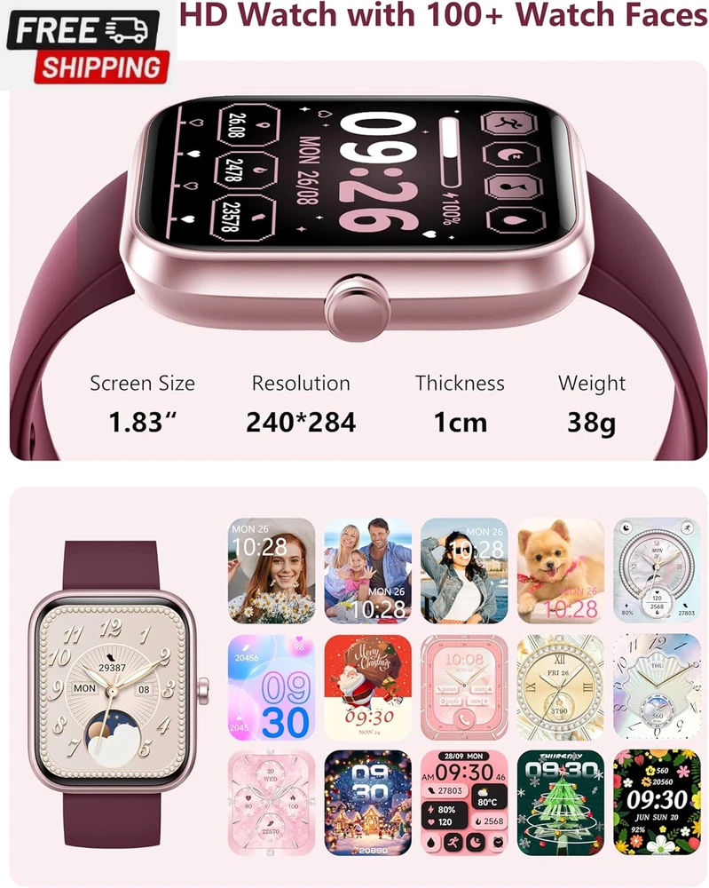 This smartwatch is a game-changer! The 1.83" screen is crisp, and the Alexa integration is super handy. Love that itโs IP68 waterproofโperfect for workouts. The heart rate monitor and 100+ sports modes keep me motivated, while calls and notifications work flawlessly. Battery life is solid, and the purple color looks sleek. Fast shipping, great customer service, and a satisfaction guarantee make it a no-brainer. Highly recommend!