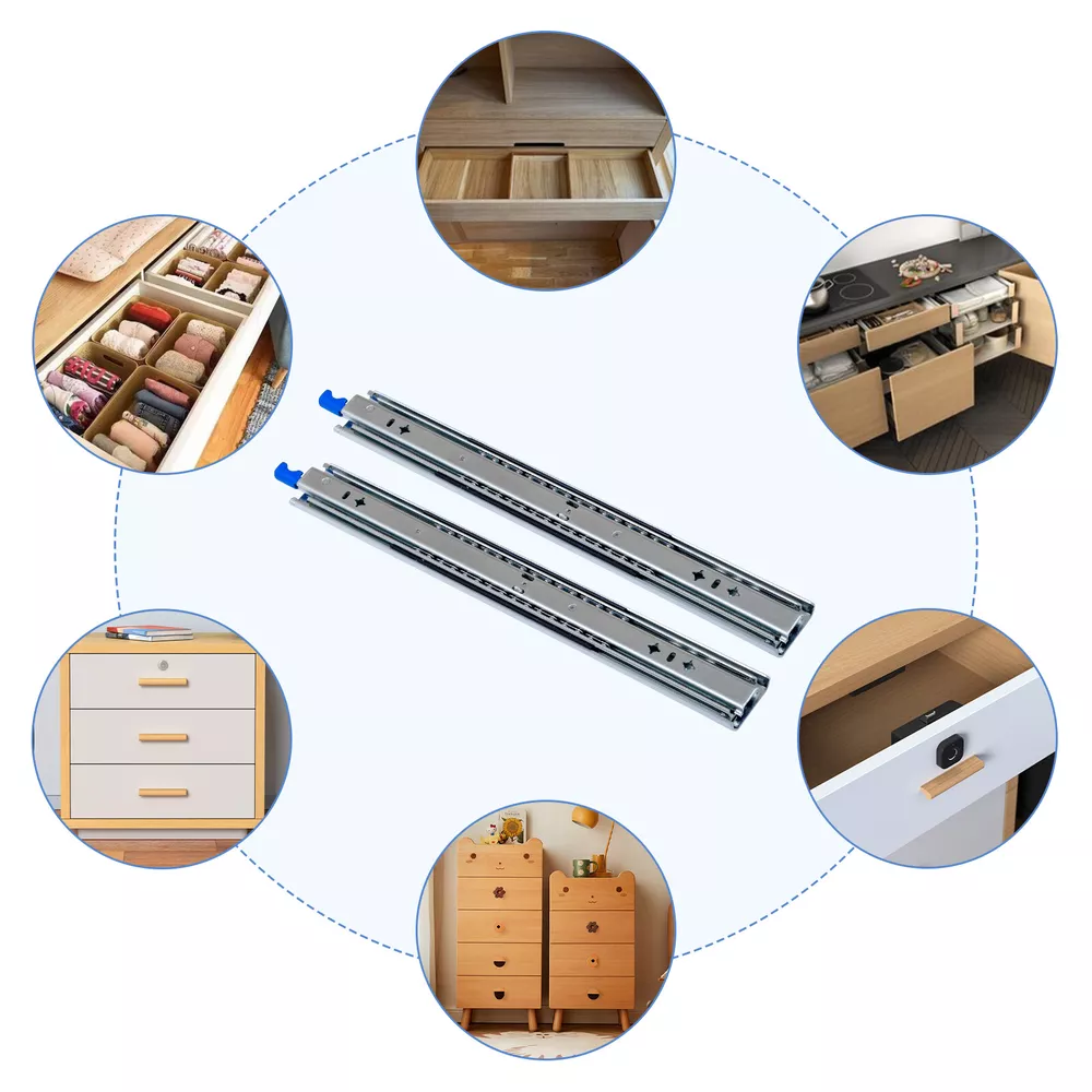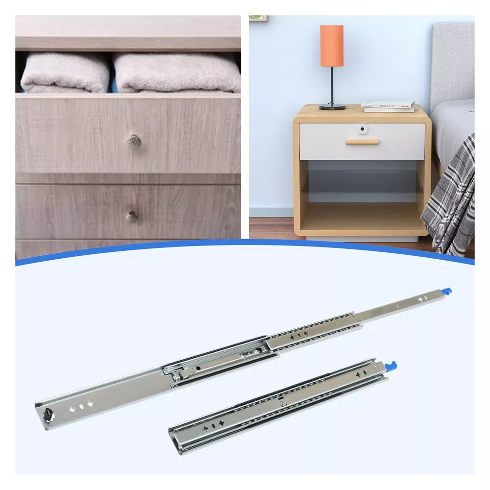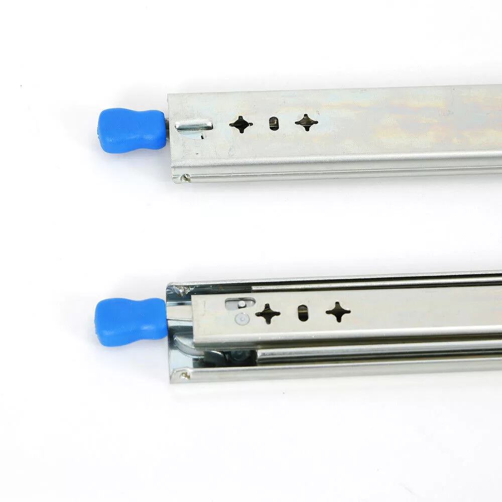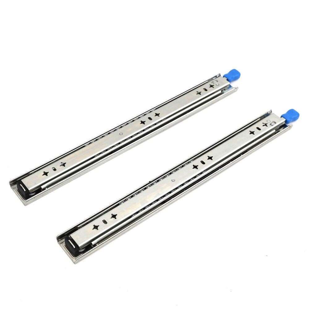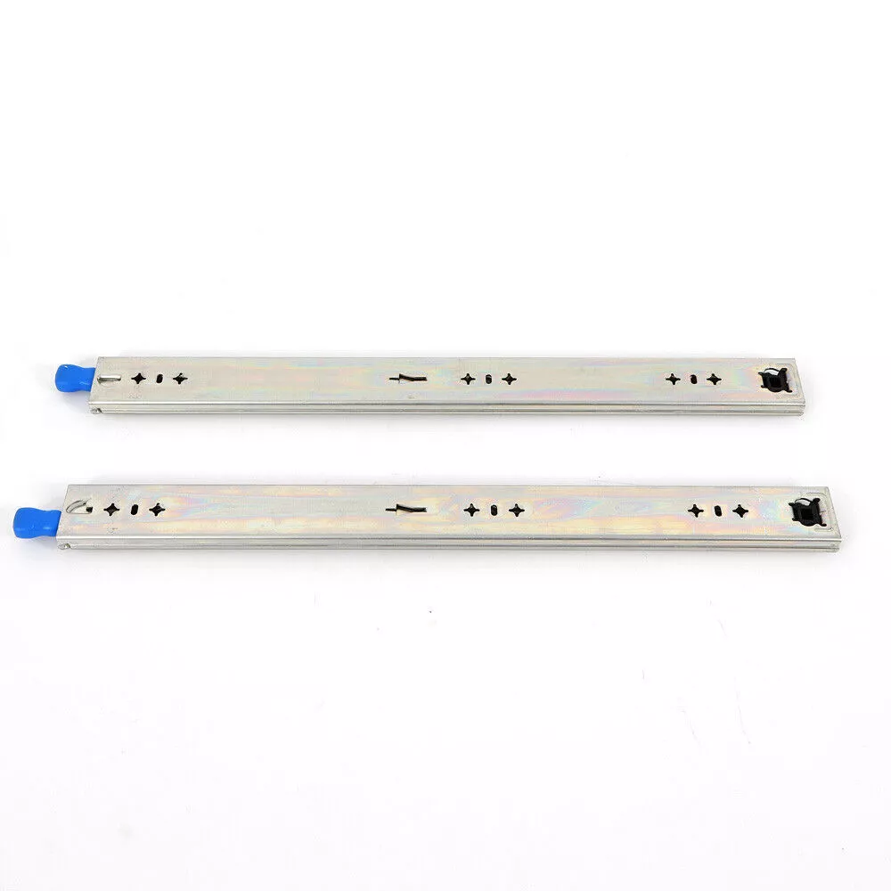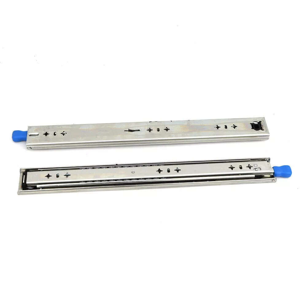 Features: 1. The surface is coated with high density zinc metal, which can effectively prevent the corrosion of the product surface and prolong the service life of the product. 2. Anti-skid rubber pad, increase friction, put back track colloidal fall and open automatically after closing. 3. Anti-skid device with lock, suitable for heavy industrial equipment. 4. Solid steel ball, check can bear 120 KG (the longer the pull out, the smaller the load). 5. Three-section track design, effective load-bearing, precise contraction. Package Included: 1 Pair Heavy Slide (excluding mounting brackets and screws) Note: -Due to different producing batches, product details might be a little different. If you minding the difference, please buy it carefully. -Please allow 1-3MM differs due to manual mea 18-40" Heavy-duty Drawer Slides with Lock Ball Bearing Full Extension 1 Pair HOT Description This is a new heavy-duty lock slide rail with good stability, small swing, smooth sliding, easy to use, suitable for all kinds of cupboard, tool cabinets and other large equipment, is the furniture industry, caravan and industrial field of high-quality choice. Specification: Colour: Silver Type: Heavy slides Material: high quality cold rolled sheet Bearing capacity: 120KG Surface treatment: blue zinc, electrophoretic black Installation Form: Drawer Side Installation Specifications: 18"(450mm),20"(500mm),22"(550mm),24 ” (600mm),28"(700mm),32" (800mm),36(900mm) ” ,40 ” (1000mm). Origin Length: 17.7 ", 19.6”,21.6", 23.6”,27.5 ", 31.4",35.4”,39.3”. Extended Length: 35.4 ",39.3 ” , 43.3",47.2 ” , 55.1",62.9",70.8 ” ,78.7 ” . Features: 1. The surface is coated with high density zinc metal, which can effectively prevent the corrosion of the product surface and prolong the service life of the product. 2. Anti-skid rubber pad, increase friction, put back track colloidal fall and open automatically after closing. 3. Anti-skid device with lock, suitable for heavy industrial equipment. 4. Solid steel ball, check can bear 120 KG (the longer the pull out, the smaller the load). 5. Three-section track design, effective load-bearing, precise contraction. Package Included: 1 Pair Heavy Slide (excluding mounting brackets and screws) Note: -Due to different producing batches, product details might be a little different. If you minding the difference, please buy it carefully. -Please allow 1-3MM differs due to manual measurement. -Due to the different display and different light, the picture may not reflect the actual color of the item. Thanks for your understanding. note:The uppermost layer of the slide rail is divided into left and right. After it is completely pulled out, please return to the original way. If it is replaced and installed forcibly, it will not work In consideration of safety, after the drawer is loaded, it will be dangerous to separate, so the heavy-duty slide rails cannot be separated. In consideration of safety, after the drawer is loaded, it will be dangerous to separate, so the heavy-duty slide rails cannot be separated. Payment Delivery details Terms of sales About us Contact us Payment We accept ebay payment 。 Fees such as import duties, taxes are not included in the item price or shipping costs. These charges are the buyer's responsibility. Delivery details Shipping: 2-9 working days to: USA Terms of sales We maintain high standards of excellence and strive for hundred percent customer satisfaction. Feedback is very important to us. We hope that you contact us immediately before you give neutral or negative feedback, so that we can address your concerns. It is impossible to address issues if we do not know about them! About us Your satis faction is our ultimate goal. We work hard to earn your trust and future business. Our certified technicians have tested each item before shipping. The unit comes with 1 year limited warranty on all manufacturing defects. a) If you receive a defective item, you may return it or ask for a discount. Please contact us within 14 days after you receive the package. b) What you returned must be intact and in its original packaging as re? u. Customer is responsible for shipping costs of the returned item. c) We will cover the cost of shipping back t with the shipping rate indicated in the registration page. We will send you a new unit or refund the full payment you paid. Thank you. Contact us Business Hour Business Hour: Monday To Friday: 8:30 AM to 5:00 PM (Beijing China time) Due to time zones, our reply to your questions may not be immediately. But within above working time, we will reply your email within 24 hours. If it's non-workdays, please kindly be patient and wait till Monday. Please contact us with ebay message. Please feel free to contact us if you have any questions. Monday To Friday: 8:30 AM to 5:00 PM (Beijing China time) Due to time zones, our reply to your questions may not be immediately. But within above working time, we will reply your email within 24 hours. If it's non-workdays, please kindly be patient and wait till Monday. Please contact us with ebay message. Please feel free to contact us if you have any questions. Feature stable performance and high quality Manufacturer Warranty 2 Years shipping notice Can not ship to Puerto Rico,Alaska/Hawaii Item location CA /NJ /Austell Item Height Does Not Apply Item Length Does Not Apply Suitable For all kinds of cupboard Item Width Does Not Apply Material high quality cold rolled sheet Colour Silver Type Heavy slides Bearing capacity 120KG Surface treatment blue zinc, electrophoretic black Installation Form Drawer Side Installation Color Silver Brand SENDERPICK MPN Does not apply