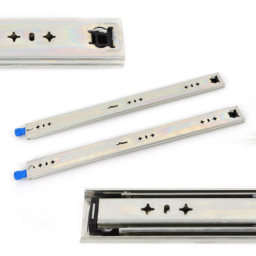 Features: 1. The surface is coated with high density zinc metal, which can effectively prevent the corrosion of the product surface and prolong the service life of the product. 2. Anti-skid rubber pad, increase friction, put back track colloidal fall and open automatically after closing. 3. Anti-skid device with lock, suitable for heavy industrial equipment. 4. Solid steel ball, check can bear 120 KG (the longer the pull out, the smaller the load). 5. Three-section track design, effective load-bearing, precise contraction. Package Included: 1 Pair Heavy Slide (excluding mounting brackets and screws) Note: -Due to different producing batches, product details might be a little different. If you minding the difference, please buy it carefully. -Please allow 1-3MM differs due to manual mea 18-40" Heavy-duty Drawer Slides with Lock Ball Bearing Full Extension 1 Pair HOT Description This is a new heavy-duty lock slide rail with good stability, small swing, smooth sliding, easy to use, suitable for all kinds of cupboard, tool cabinets and other large equipment, is the furniture industry, caravan and industrial field of high-quality choice. Specification: Colour: Silver Type: Heavy slides Material: high quality cold rolled sheet Bearing capacity: 120KG Surface treatment: blue zinc, electrophoretic black Installation Form: Drawer Side Installation Specifications: 18"(450mm),20"(500mm),22"(550mm),24 ” (600mm),28"(700mm),32" (800mm),36(900mm) ” ,40 ” (1000mm). Origin Length: 17.7 ", 19.6”,21.6", 23.6”,27.5 ", 31.4",35.4”,39.3”. Extended Length: 35.4 ",39.3 ” , 43.3",47.2 ” , 55.1",62.9",70.8 ” ,78.7 ” . Features: 1. The surface is coated with high density zinc metal, which can effectively prevent the corrosion of the product surface and prolong the service life of the product. 2. Anti-skid rubber pad, increase friction, put back track colloidal fall and open automatically after closing. 3. Anti-skid device with lock, suitable for heavy industrial equipment. 4. Solid steel ball, check can bear 120 KG (the longer the pull out, the smaller the load). 5. Three-section track design, effective load-bearing, precise contraction. Package Included: 1 Pair Heavy Slide (excluding mounting brackets and screws) Note: -Due to different producing batches, product details might be a little different. If you minding the difference, please buy it carefully. -Please allow 1-3MM differs due to manual measurement. -Due to the different display and different light, the picture may not reflect the actual color of the item. Thanks for your understanding. note:The uppermost layer of the slide rail is divided into left and right. After it is completely pulled out, please return to the original way. If it is replaced and installed forcibly, it will not work In consideration of safety, after the drawer is loaded, it will be dangerous to separate, so the heavy-duty slide rails cannot be separated. In consideration of safety, after the drawer is loaded, it will be dangerous to separate, so the heavy-duty slide rails cannot be separated. Payment Delivery details Terms of sales About us Contact us Payment We accept ebay payment 。 Fees such as import duties, taxes are not included in the item price or shipping costs. These charges are the buyer's responsibility. Delivery details Shipping: 2-9 working days to: USA Terms of sales We maintain high standards of excellence and strive for hundred percent customer satisfaction. Feedback is very important to us. We hope that you contact us immediately before you give neutral or negative feedback, so that we can address your concerns. It is impossible to address issues if we do not know about them! About us Your satis faction is our ultimate goal. We work hard to earn your trust and future business. Our certified technicians have tested each item before shipping. The unit comes with 1 year limited warranty on all manufacturing defects. a) If you receive a defective item, you may return it or ask for a discount. Please contact us within 14 days after you receive the package. b) What you returned must be intact and in its original packaging as re? u. Customer is responsible for shipping costs of the returned item. c) We will cover the cost of shipping back t with the shipping rate indicated in the registration page. We will send you a new unit or refund the full payment you paid. Thank you. Contact us Business Hour Business Hour: Monday To Friday: 8:30 AM to 5:00 PM (Beijing China time) Due to time zones, our reply to your questions may not be immediately. But within above working time, we will reply your email within 24 hours. If it's non-workdays, please kindly be patient and wait till Monday. Please contact us with ebay message. Please feel free to contact us if you have any questions. Monday To Friday: 8:30 AM to 5:00 PM (Beijing China time) Due to time zones, our reply to your questions may not be immediately. But within above working time, we will reply your email within 24 hours. If it's non-workdays, please kindly be patient and wait till Monday. Please contact us with ebay message. Please feel free to contact us if you have any questions. Feature 1 Compact Design,Unique Appearance,high reliability * Feature * Easy installation,Convenient Use,Easy Operation Feature stable performance and high quality Manufacturer Warranty 2 Years shipping notice Can not ship to Puerto Rico,Alaska/Hawaii Item location CA /NJ /Austell Item Height Does Not Apply Item Length Does Not Apply Suitable For all kinds of cupboard Item Width Does Not Apply Material high quality cold rolled sheet Colour Silver Type Heavy slides Bearing capacity 120KG Surface treatment blue zinc, electrophoretic black Installation Form Drawer Side Installation Color Silver Brand SENDERPICK MPN Does not apply