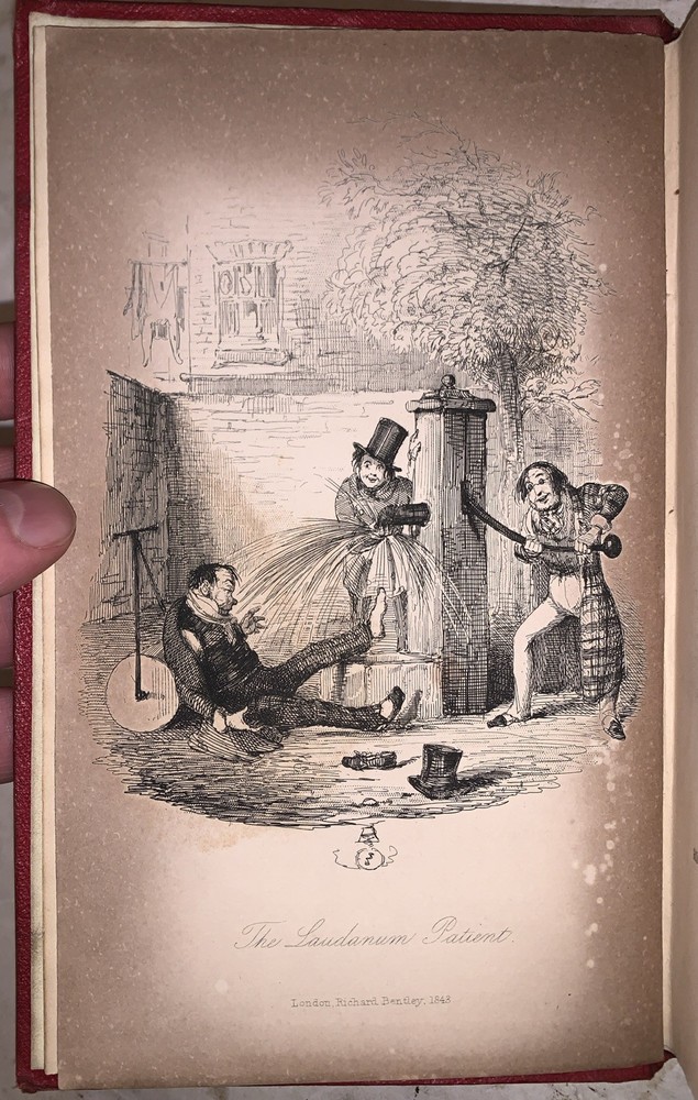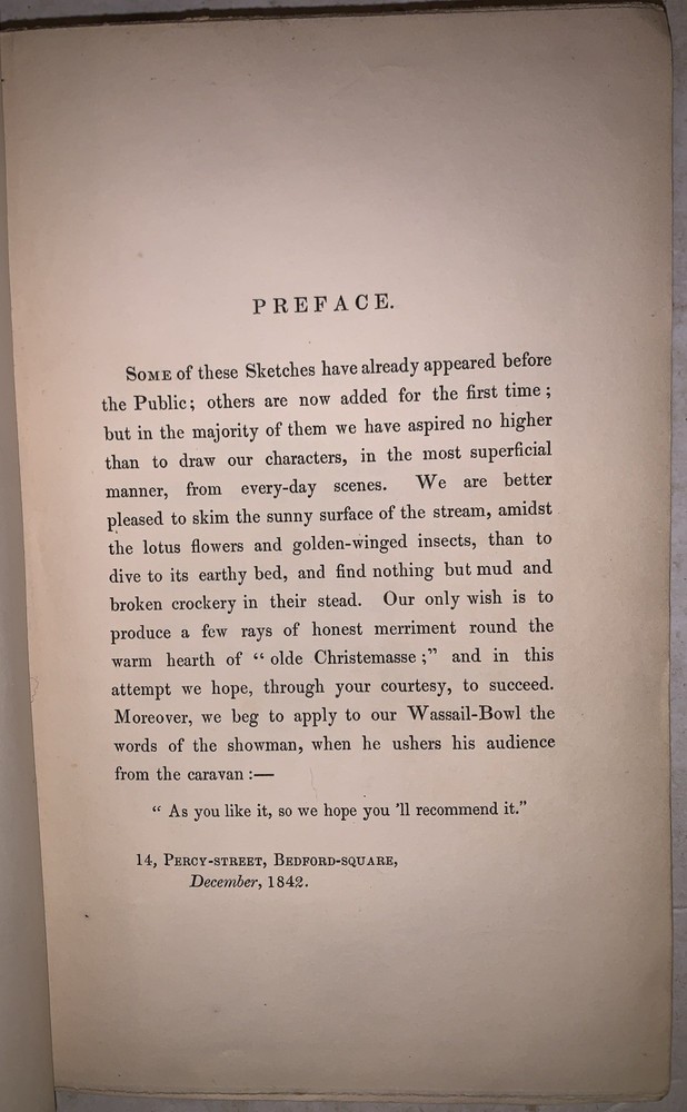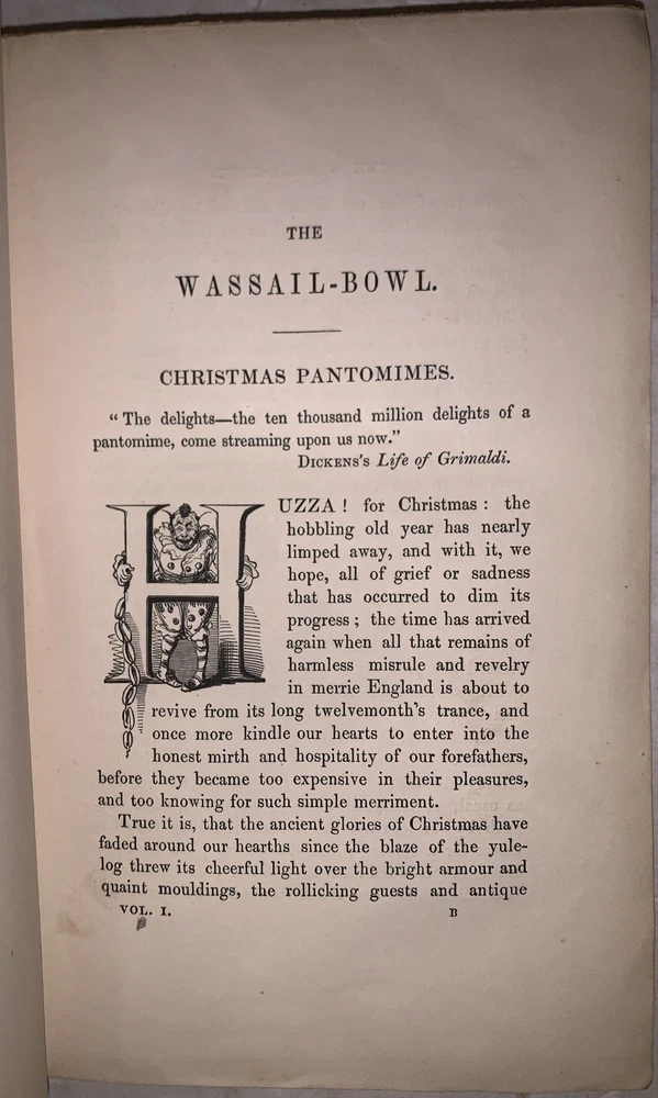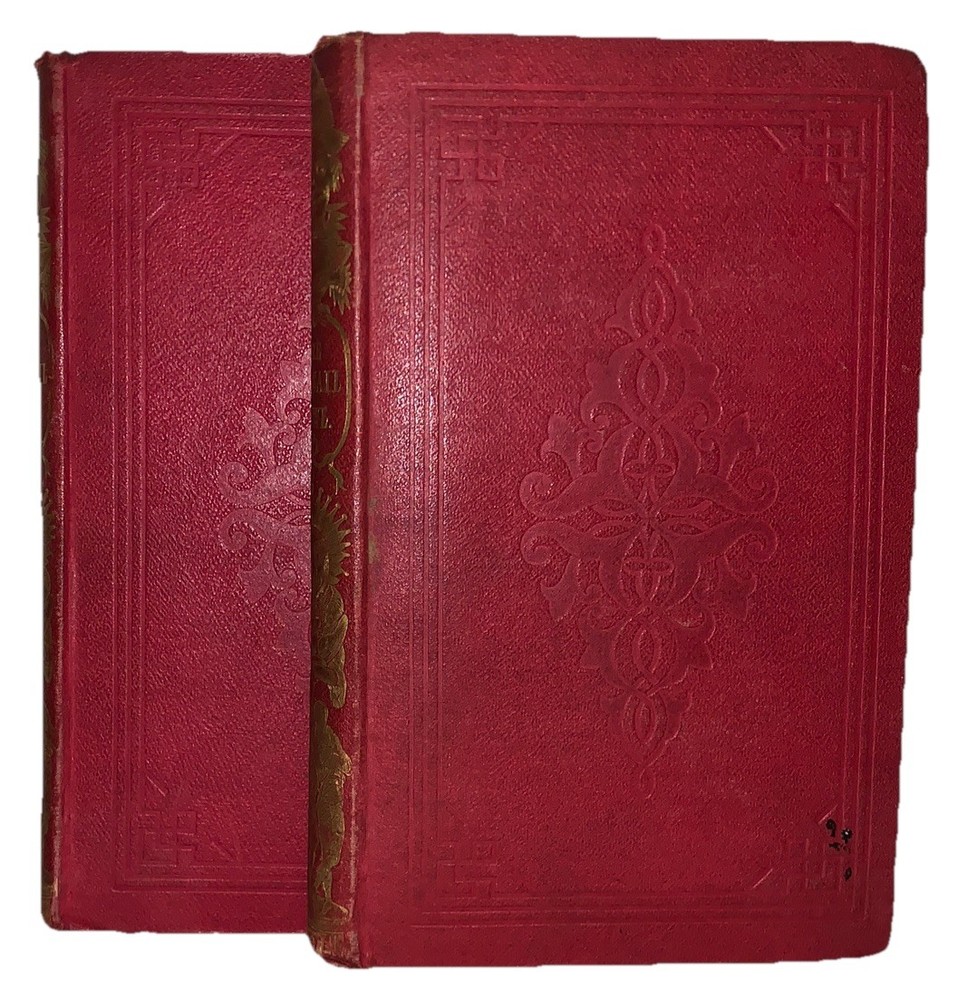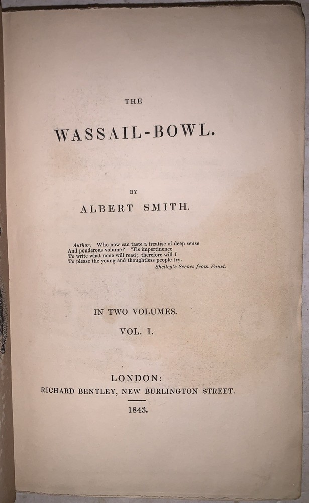 The Wassail-Bowl by Albert Smith In Two Volumes London: Richard Bentley 1843 First Edition Two octavos, 252p.; 249, [2] pages, publisher's original blind-stamped red cloth covered boards with ornate gilt decoration to spines. Illustrated in black and white. Some slight rubbing and wear, foxing and discoloration, boards slightly splayed on volume two, corners slightly bumped, else in very good condition. Albert Smith’s The Wassail-Bowl (London: Richard Bentley, 1843) is an appealing two-volume Victorian gift-book issued in richly gilt-decorated red cloth, the most attractive and sought-after of the publisher’s original bindings. Blending humorous sketches, holiday tales, and satirical observations of mid-19th-century London life, Smith’s early work exemplifies the festive literary annuals that flourished in the 1840s. Illustrated with wood-engraved cuts typical of Bentley’s collaborations with artists connected to Punch, the set offers a lively mixture of comic storytelling and winter conviviality. Complete sets in the ornate red gilt cloth are increasingly uncommon, and this edition remains a representative example of the decorative Christmas book tradition that helped shape early Victorian popular literature. If you have any questions, feel free to ask, and don't forget to check out my other listings.