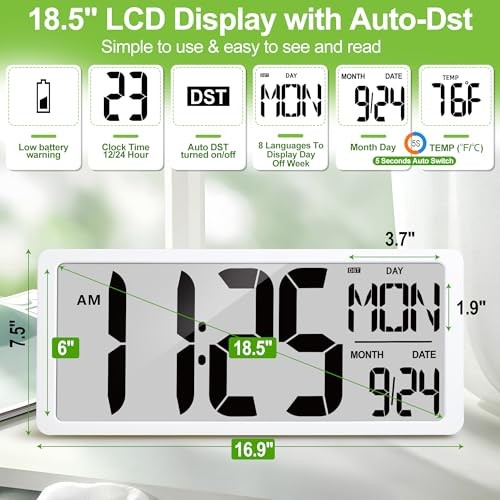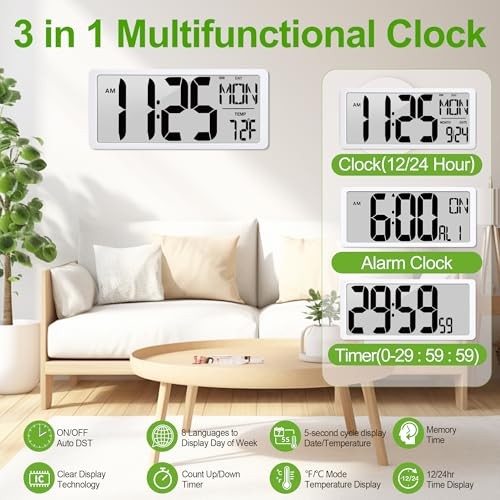 This huge clock is a game-changer for my home office! The jumbo display is incredibly clear from anywhere in the room, and I love having the temperature and date visible at a glance. Setup was a breeze with the included batteries. Highly recommended!