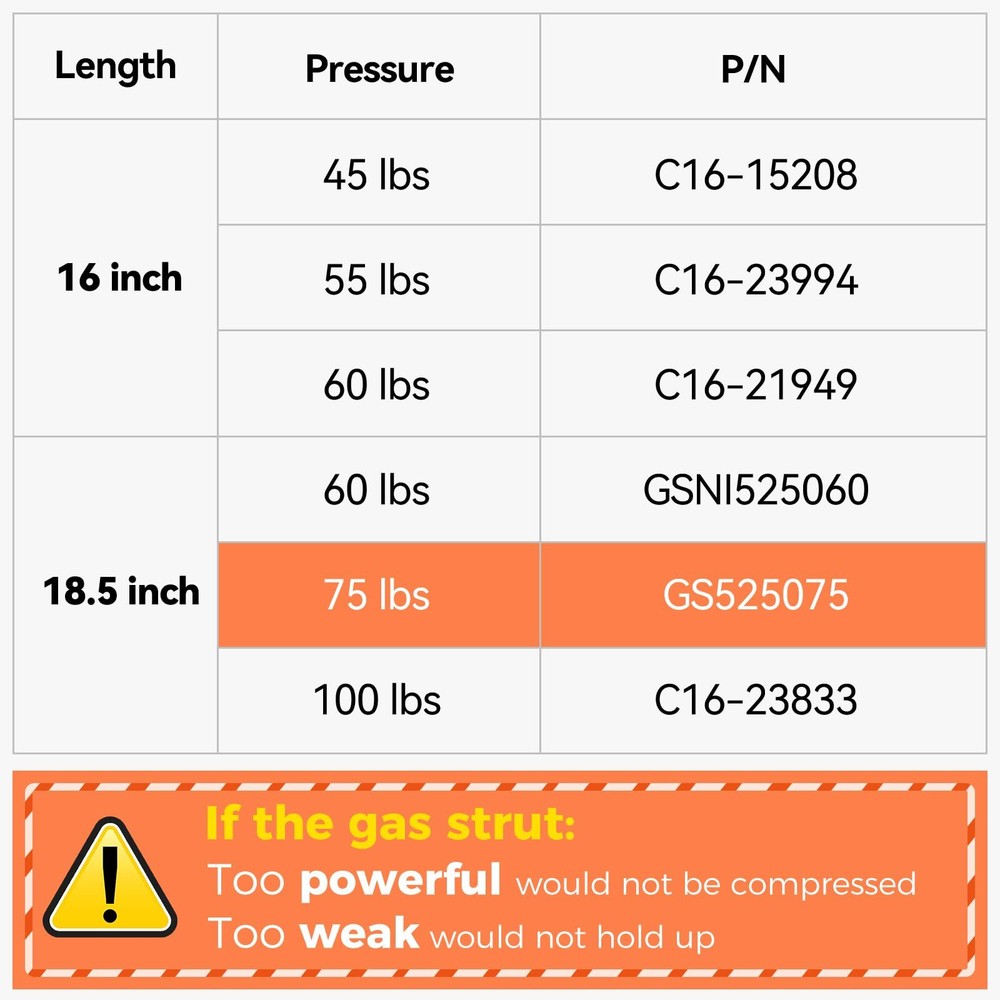 GS525075 SE185P75 18.5 inch 75 lbs Gas Strut Shocks Lift for A.R.E Leer Camper Shell Pickup Truck Cap Topper Canopy Glass Door Hatch Back Window Bed Cover, 18.5" Gas Spring by 2 Pack [Parameter]: Extended length: 18.5in, Compressed length: 11.25 Inch. 75 Lb / 334 N per strut, 2 PACK. PACKAGE INFORMATION: 18.5 inch 75 lbs Gas Strut Spring Shock X 2; Installation guide X 1 [OEM Number]:12197, 525075, 6935, 8195671, 9156VU, GS525075, SE185P75 these parts number fit 18.5 inch 75 lbs struts [About Install]: Easy to install without any special tools requiredm, We have gas strut installation online service and installation manual to guide quick installation in minutes. After installation, the WINDOW can be lifted easily. [Use Scenarios]: Replacement parts of the are camper shell window leer truck topper cap snugtop parts, Note: DO NOT compress them by hands before install [Don't Worry]: will provide you with professional customer service before and after your purchase and offer 18-MONTHS support. Gas Spring Struts: Need to prop open a door, cabinet, barrier, or even a car?Your gas struts are construction grade and do all the heavy lifting so you can focus on the real work.Easy Fit & Removal: Plates fitted to each end of your gas springs can easily be fitted and removed to any surface. Best Uses: leer camper shell struts gas struts spring accessories canopy shell window springs lift support gas shock back struts for a.r.e. camper truck captruck cap gas struts truck topper partsFeatures: safe and smooth So, What’re You Waiting For? Let your new gas springs do the heavy lifting for you while you can crack on with the job at hand, unhindered and well-executed, click "Add To Cart" Now! Shipping We offer FREE shipping on all orders! We ship within Three business days of payment, usually sooner. We use a selection of shipping services such as UPS, FedEx, USPS etc. We only ship to the lower 48 states, no APO/FPO addresses or PO Boxes allowed. Local pickups and combined shipping options are not provided at this time. Return You can return a product for up to 30 days from the date you purchased it. Any product you return must be in the same condition you received it and in the original packaging. Please keep the receipt. Payment We accept payment by any of the following methods: PayPal Please pay as soon as possible after winning an auction, as that will allow us to post your item to you sooner! Feedback Customer satisfaction is very important to us. If you have any problem with your order, please contact us and we will do our best to make you satisfied. Contact Us If you have any queries, please contact us via ebay. We usually respond within 24 hours on weekdays. Please visit our eBay store to check out other items for sale! Thank you for shopping at our store.