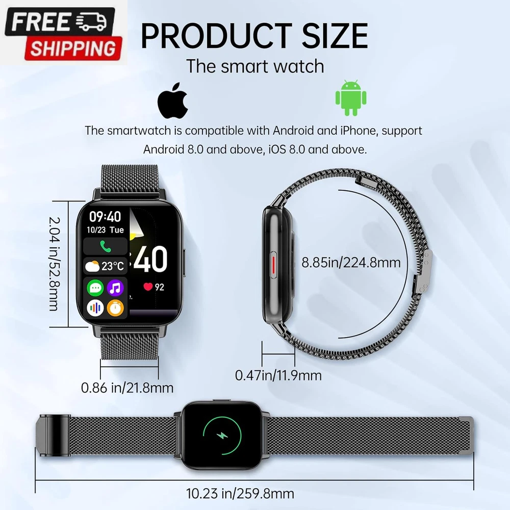 Fast Shipping On All Items 30 Days Money Guarantee Customer Support Excellent Service 100% Satisfaction Satisfaction Guaranteed Smart Watch(Answer/Make Call), 1.85" Smart Watch for Men Women IP68 Waterproof Smart Watches for Android Iphone Fitness Activity Tracker Heart Rate Sleep Monitor, 100+ Sport Modes ,Pedometer,Black. Specification Item model number smart watch 162 Operating System android Battery Cell Composition Lithium Polymer Color Black Special Feature function(f) {var _np=(window.P._namespace("DetailPageProductOverviewTemplatesJava"));if(_np.guardFatal){_np.guardFatal(f)(_np);}else{f(_np);}}(function(P) { P.when('A').execute(function(A){ A.on('a:truncate:po-attribute-truncate-1:updated', function(data) { var isTruncated = !data.truncateInstance.getIfTextFits(); var seeMoreElement = document.getElementById('po-attribute-see-more-id-1'); if(seeMoreElement) { seeMoreElement.style.display = isTruncated ? '' : 'none'; } }) }); })); Heart Rate Monitor, Sleeping Monitor, Bluetooth call, Notifications, Activity Tracker, Female Health, Voice assistant, 1.85 Large HD Touch Screen Smart Watch, Calorie Tracker, Password Protection, Find phone, Weather, Music, Breath training, Stopwatch, Alarm clock, Timer, Calculator, Camera control See more Brand HXQHSTBG Country of Origin China Connectivity Technology Bluetooth Item Weight 8.1 ounces Shape Rectangular Wireless Communication Standard Bluetooth Model Name smart watch 162 Standing screen display size 1.85 Inches Batteries 1 Lithium Ion batteries required. (included) Manufacturer HXQHSTBG Screen Size 1.85 Inches Package Dimensions 11.26 x 4.06 x 0.75 inches GPS No GPS Item Description 1️⃣【1.85" DIY Dial&Multifunctional Smart Watch】 1.85" HD full-colour touch large screen digital watch provides a clearer and more comfortable visual experience. Over 100 kinds of dials for you to choose from, you can even customize your colour and style to show your personality. The smartwatch has a variety of useful functions such as alarm clock, stopwatch, music/camera control, weather, torch, find your phone and more. smartwatch Compatible with Android iPhone. (Note: The smart watch come with 2 watch bands:one stainless steel black steel bracelet and one black silicone strap) 2️⃣【Make/Answer Calls & Read Message】The smart watch for men women has a built-in microphone and speaker. After connecting with the "Fitcloudpro" app via Bluetooth, you can use the fitness watch to easily answer/make calls/ /view call records, and you can also receive mobile phones and apps Notify and read messages (Facebook, Calendar, Messenger, Instagram, Gmail, Whatsapp, Twitter, Snapchat etc.) The smart watch suitable for most phone and Compatible with Android/iPhone.(Android 8.0 and above,iOS 8.0 and above)Note: The watch CAN'T reply message, can view/read message. 3️⃣【24-Hour Health Monitoring Smartwatch】This smartwatch monitors heart rate and sleep, and the sleep monitor provides sleep quality analysis.Record sleep duration in deep sleep, submerged sleep, and awake states to help you develop quality sleep habits.This men's and women's smartwatch also provides women's period reminder, breathing training, sedentary reminder, reminder and water drinking reminder to help you better manage your health. 4️⃣【Bulit in Voice Assistant&Multifunctional Smart Watch】The smartwatch with built-in Voice Assistant function, providing voice service, you can command voice Assistant to play music, read news, check the weather, set alarm clock or control,and the watch come with various functions,such as weather forecast, play music control, calendar, timer,alarm clock, find phone, etc. 5️⃣【100 Sports Modes】Sleek and simple sport watch for men women with 100 sports modes (walking, running, cycling, elliptical, yoga, pilates, swimming, dancing, rowing machine, etc.) to get personalized exercise data and advice by tracking steps, distance, calories, activity time and heart rate. 6️⃣【IP68 Waterproof】The blood oxygen watch adopts IP68 waterproof, which has a good waterproof effect for daily life, such as: washing hands, anti-sweat, anti-rain, etc. (Not recommended to be worn in the shower or in environments with water vapour, not in contact with hot water.) 7️⃣【7-10 Days Working Time】 The smart watch for iphone android comes with a 300mAh battery that provides up to 7-10 days of usage and an incredible 28 days of standby time, and takes only 2 hours to charge. offer 1 year warranty. 7/24 hours customer service, if you have any questions, please feel free to cont-us. Product Description The video showcases the product in use. The video guides you through product setup. The video compares multiple products. The video shows the product being unpacked. smart watch for men Merchant Video 1 Bluetooth Call 2 Message Notifiction 3 AI Voice Assistant 1 100 Sport Modes 2 Activity Tracking 3 Heart Rate Monitor 4 Blood Oxygen Measure 5 Sleep Monitor 1 Various Functions 2 100 Watch Faces 3 IP68 WaterProof 4 Size&Package Contents How do I turn on the watch for the first time ? 1. Please charge to activate the watch before first use. 2. Long press the function button to turn on the watch. 3. In order to better use the watch in the future, you need to tear the protective film before and after the watch. Watch and phone Bluetooth disconnection ,how to do ? 1. Make sure the APP is running at the backstage, do not shut it down on your phone. 2. Is ther the watch is connected to other mobile phones, if so, please turn off the Bluetooth of the mobile phone and disconnect the watch on the APP firs How to set watch language and time? The default language of the smart watch is English,When the watch is connected to the phone, it will automatically synchronize the time and language on the phone, and you cannot set the time on the watch. Q: How to customize your own picture? Go to the app > Device> Dial Library > Dial Center > Click the first green picture > Background > Cl