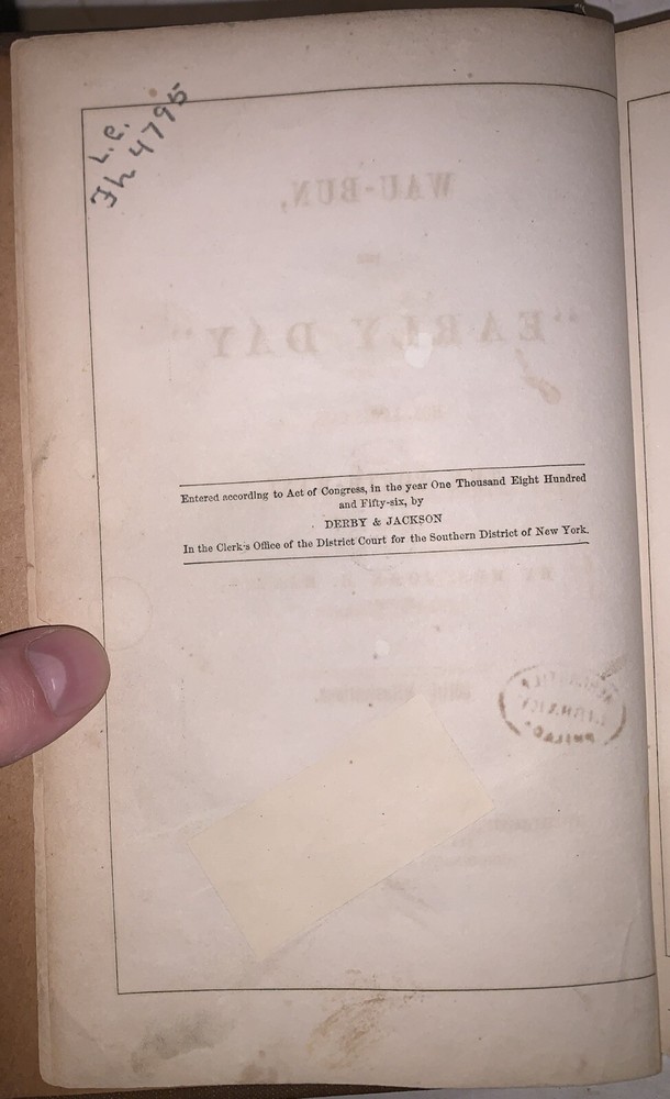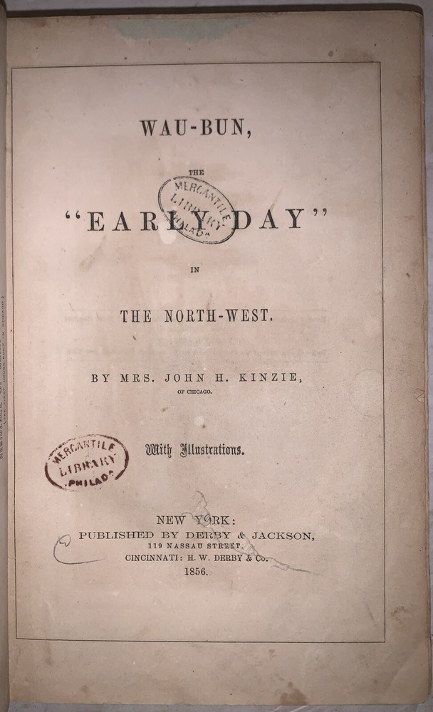 Wau-Bun, the "Early Day" in the North-West by Mr. John H. Kinzie, of Chicago [Juliette Augusta Magill Kinzie] With Illustrations New York: Derby & Jackson 1856 First Edition Octavo, 498 pages, rebound in gilt lettered brown cloth covered boards. Illustrated with black and white plates. Ex-library with some of the typical markings. Some rubbing and wear, foxing and discoloration throughout, else in good + condition. Wau-Bun: The "Early Day" in the North-West is a compelling firsthand account of frontier life in the American Midwest during the early 1830s, written by Juliette Augusta Magill Kinzie and originally published under her husband John H. Kinzie’s name. Drawing from her personal experiences living at Fort Winnebago and traveling through what are now Illinois, Wisconsin, and Michigan, Kinzie offers detailed observations of pioneer society, interactions with Native American tribes, and the turbulent events surrounding the Black Hawk War. Rich in vivid descriptions and historical insights, Wau-Bun captures the challenges, dangers, and daily realities of early settlement, while also providing a rare female perspective on the rapid transformation of the Northwest Territory. Though reflecting the attitudes of its time, the work remains an important historical document for understanding early American expansion and Native American relations. If you have any questions, feel free to ask, and don't forget to check out my other listings.