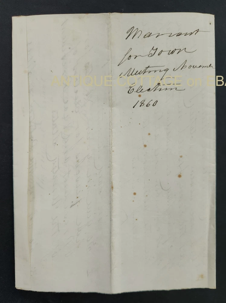 1860 antique SPRINGFIELD nh TOWN MEETING WARRANT voting presidential election SCROLL DOWN for MORE PHOTOS in DESCRIPTION Click HERE to view or search ANTIQUE.COTTAGE listings. This listing is for the paper shown. Requesting those eligible residents to meet to vote on the items identified in document. Excellent original early family and/or town genealogy, history, antique, collectible heirloom and/or ephemera. autograph CONDITION : See listing description and photos. - International buyers are responsible to pay VAT or other Taxes to their countries as required. - eBAY collects and remits sales tax on behalf of several states. If you are a dealer, you can write to eBay to file a form to become tax exempt. LOC: LOC2: PAPERBOX04-TMKT Powered by SixBit's eCommerce Solution