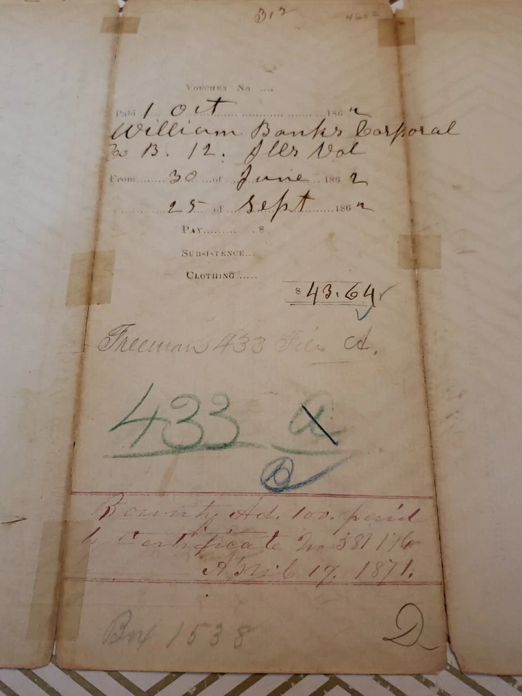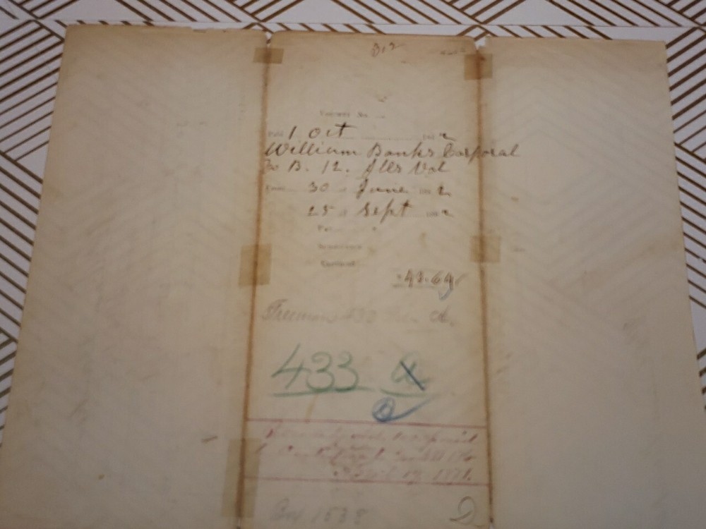 J639 Some tearing at seams as shown w tape. This is a unique collectible from the Civil War era. The letter discharge payment voucher is a genuine piece of history that was issued during the war. It serves as a reminder of the sacrifices made during the conflict and the impact it had on the nation. The voucher is in its original form and is a great addition to any militaria collection. The theme of the item is centered around the Civil War and it is a perfect way to commemorate the event.