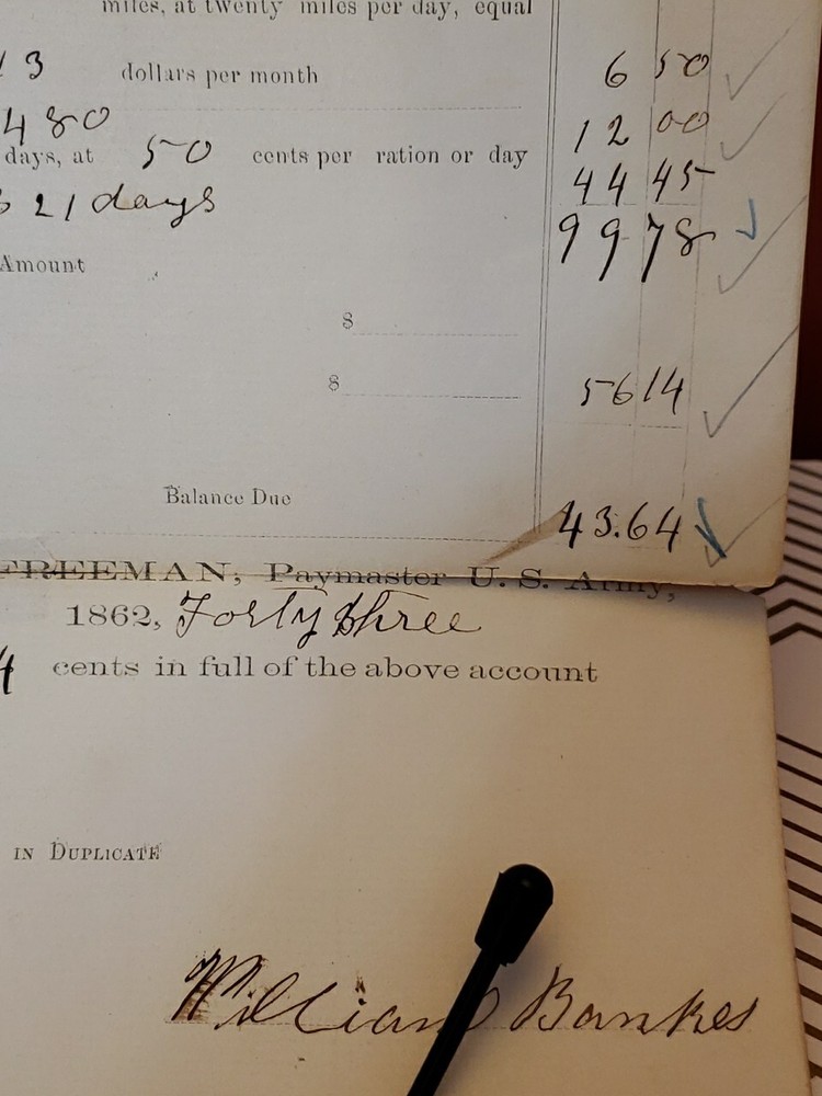 $ 10.56CONFEDERATE POSTAGE RECEIPT FOR LETTERS TRANSFERRED FROM MACON TO CANTON 1864