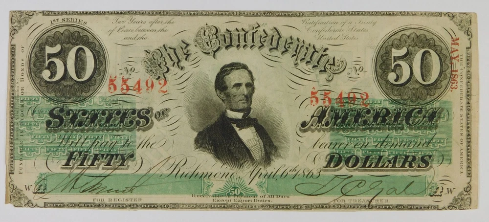 1863 $50 Confederate States of America Very Nice Note Circulated The Note in the Pictures Is the Note You Will Receive ** **Payment Due Within 5 Days** ** U.S.A. $4 .95 Shipping via U SPS w/Tracking *** ** Local Taxes: ** You may be subject to your State/Local taxes. I have no control over this. *** Important: World Shipping via eBay International Shipping System Cost & Delivery Times Vary by Country... eBay Determines Rate...Not Me. **** Additional Local Customs Fees, Taxes May Apply As You Receive the Item Outside of the U.S. *** Not Every Country Will be Eligible to be shipped to... eBay Determines Eligibility Combined Shipping Available I will only ship to a PayPal verified addres s ... no excepti ons! 30-day return privilege if coin/items are in the original condition. Payment Via PayPal.