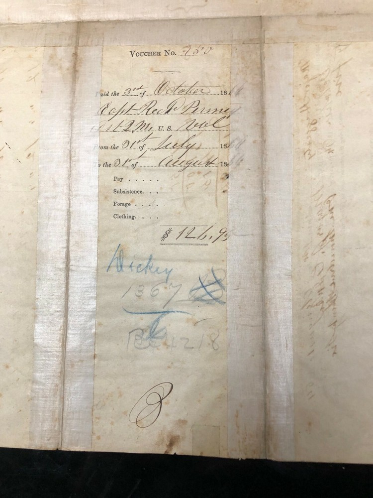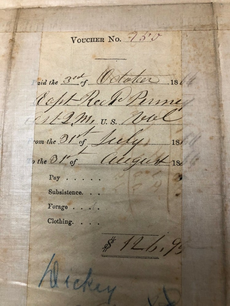 Vintage August 1864 Civil War Payment Voucher Post or place where due: Vicksburg, MS (during Military Occupation of Vicksburg) Paymaster: Major Haggerty Voucher for Richard Penney, Captain & Assistant Quartermaster of Volunteers