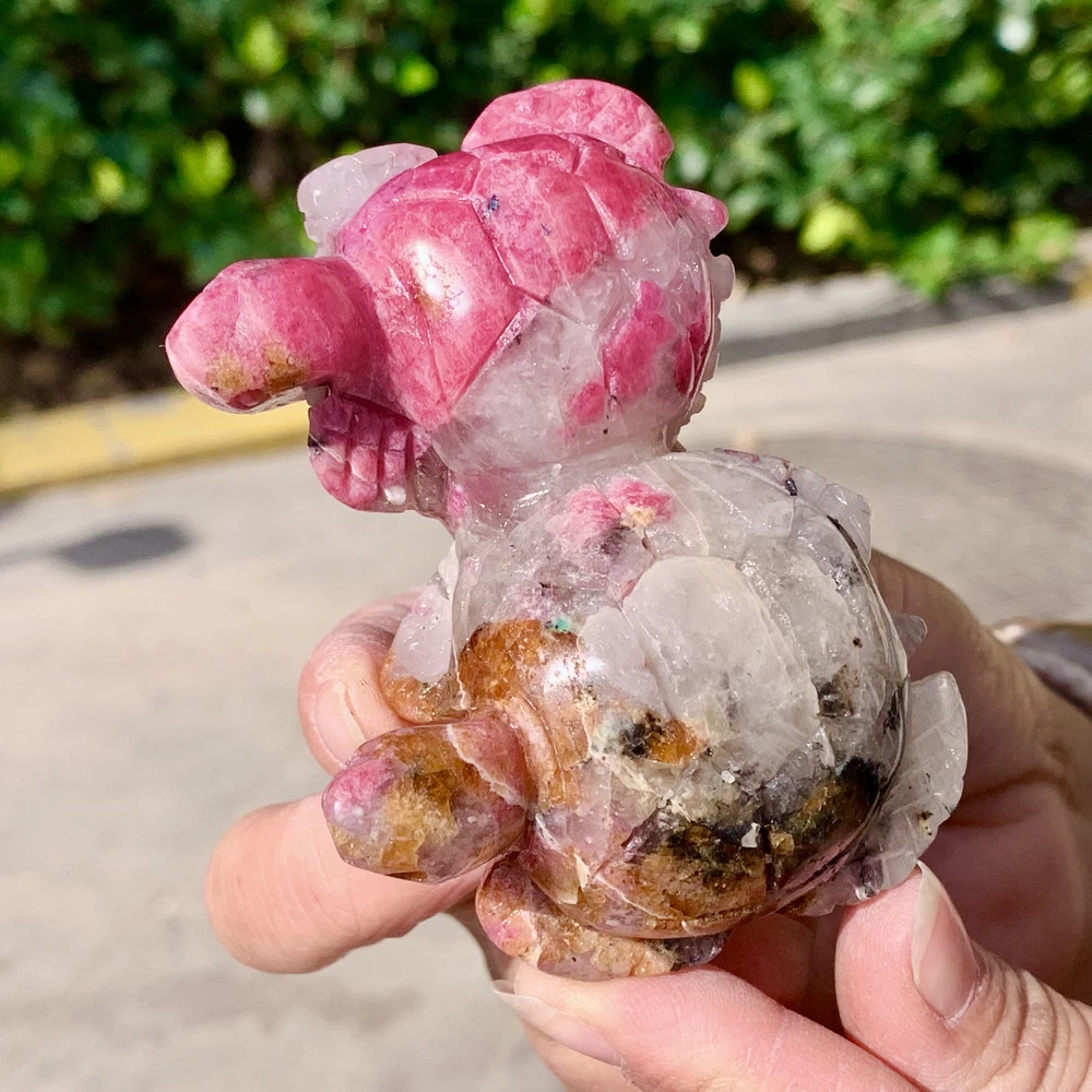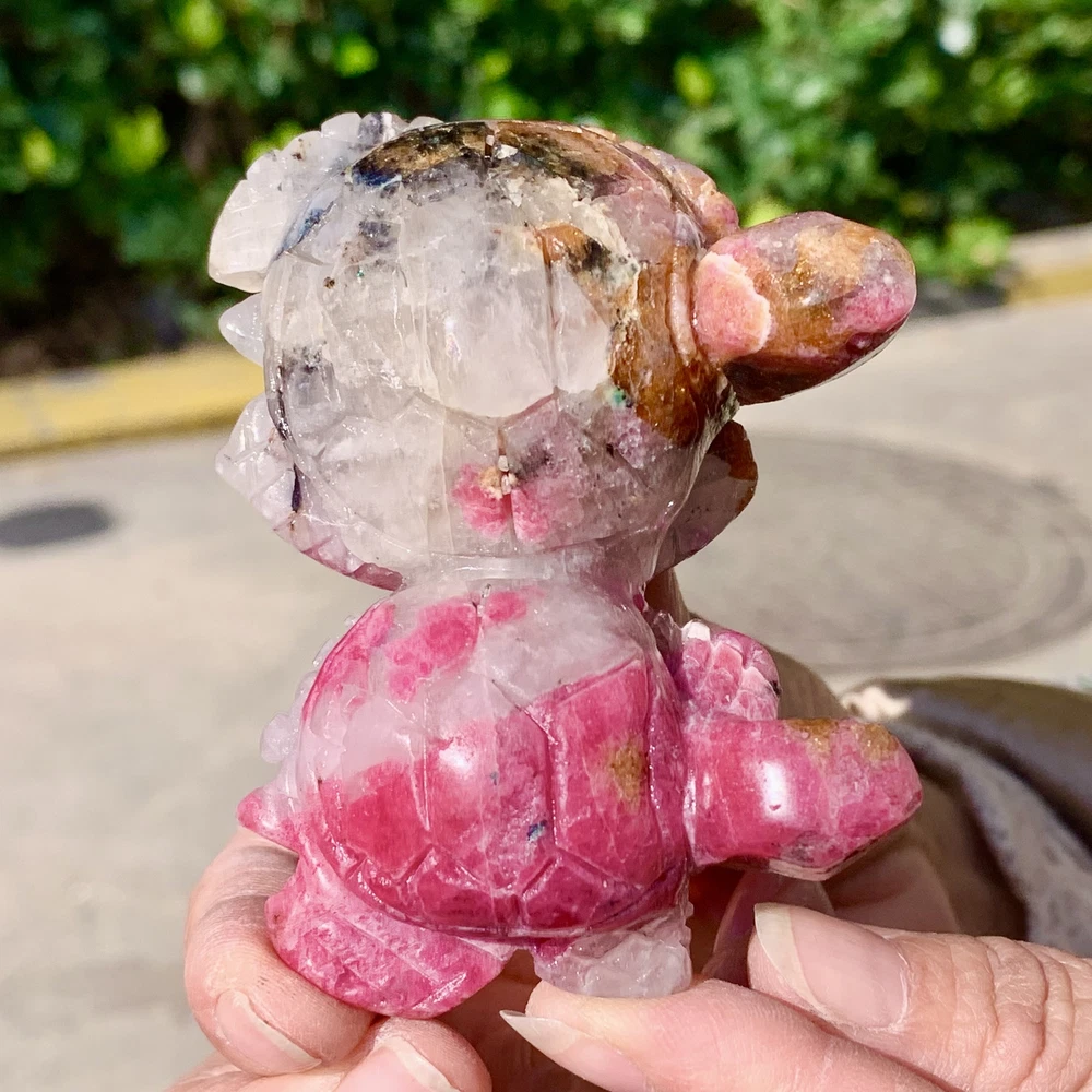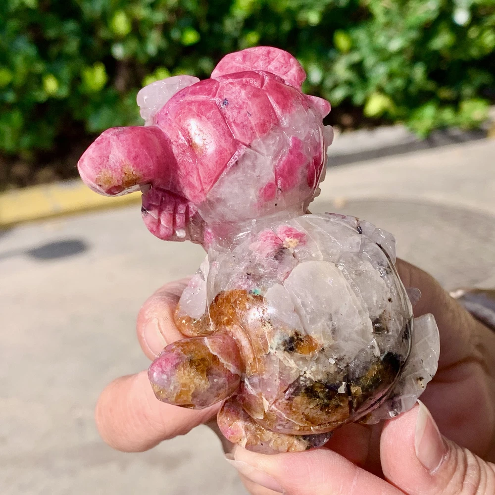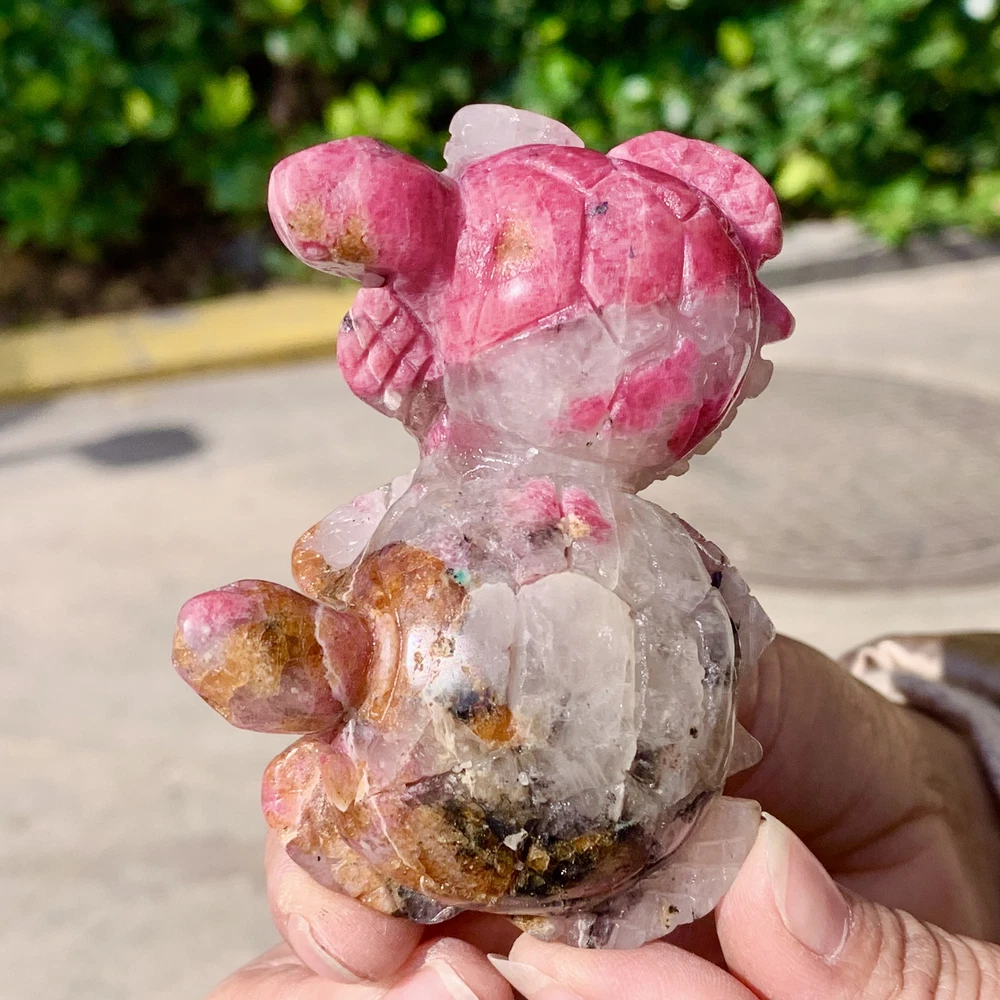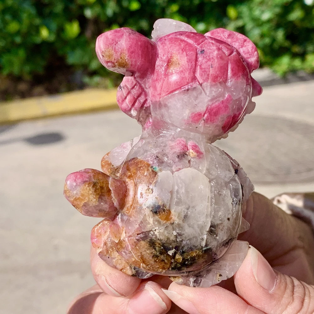 186G Natural Pink Rhodonite Quartz turtle Carved Crystal Statue Animal Gift