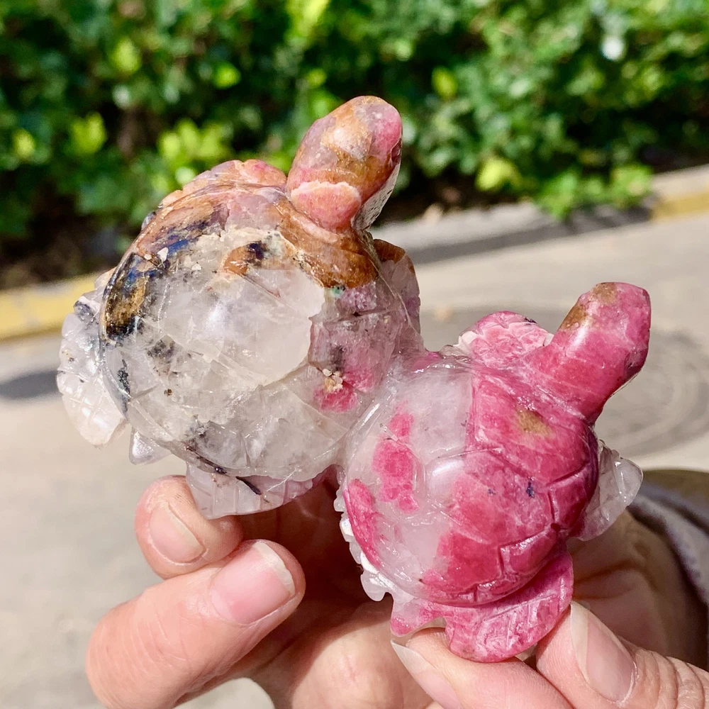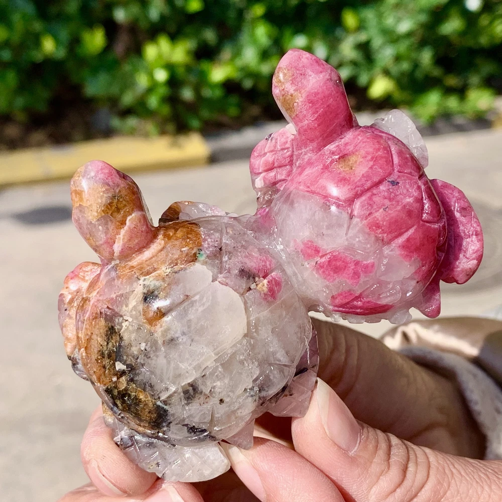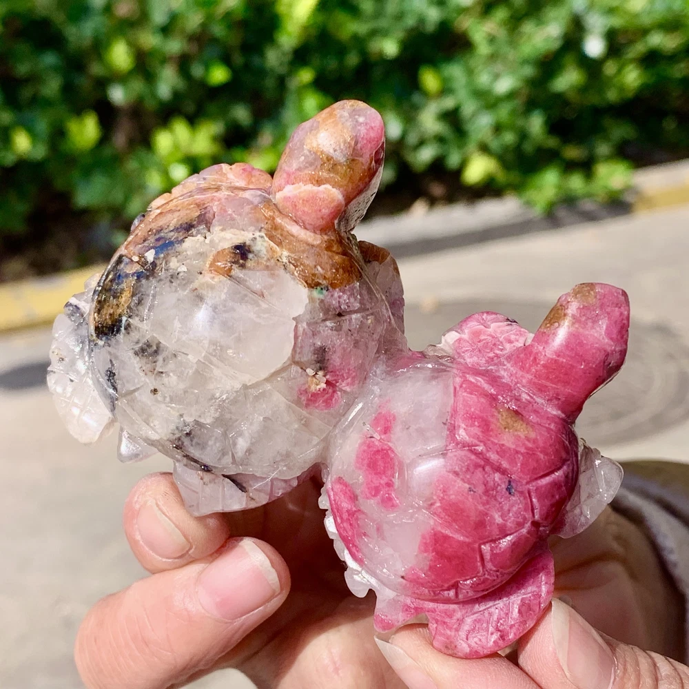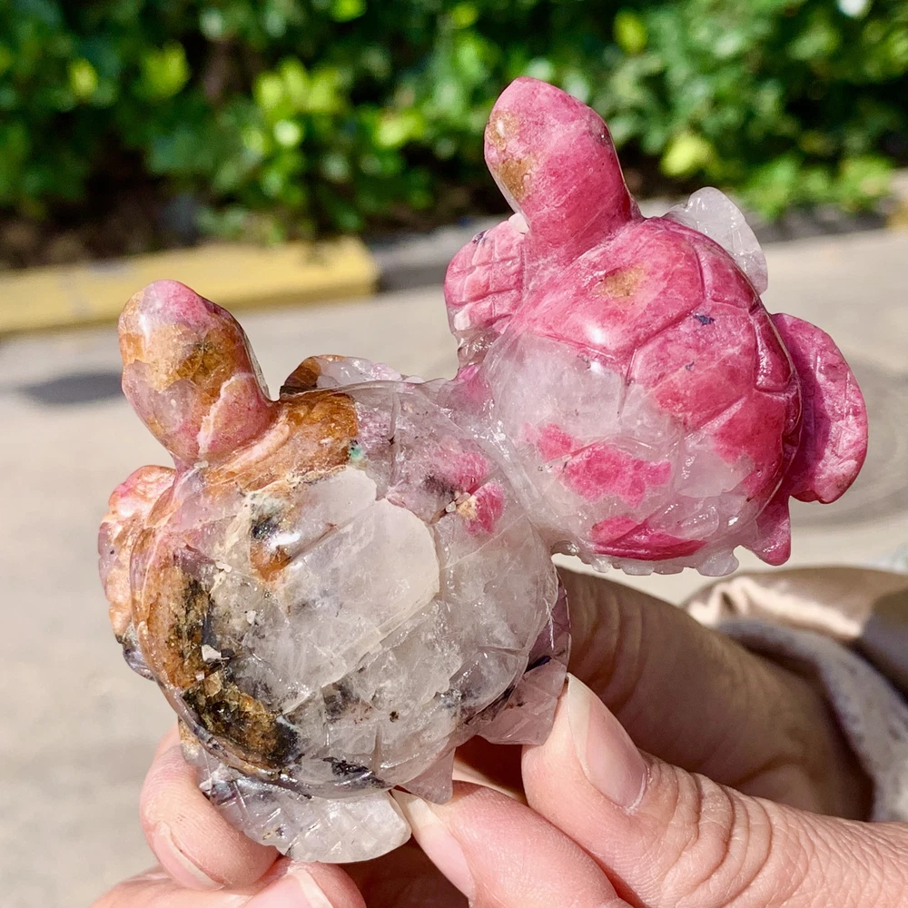 186G Natural Pink Rhodonite Quartz turtle Carved Crystal Statue Animal Gift