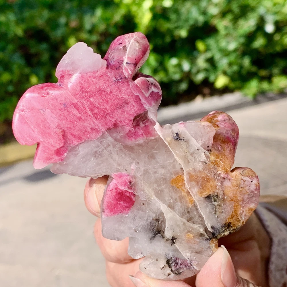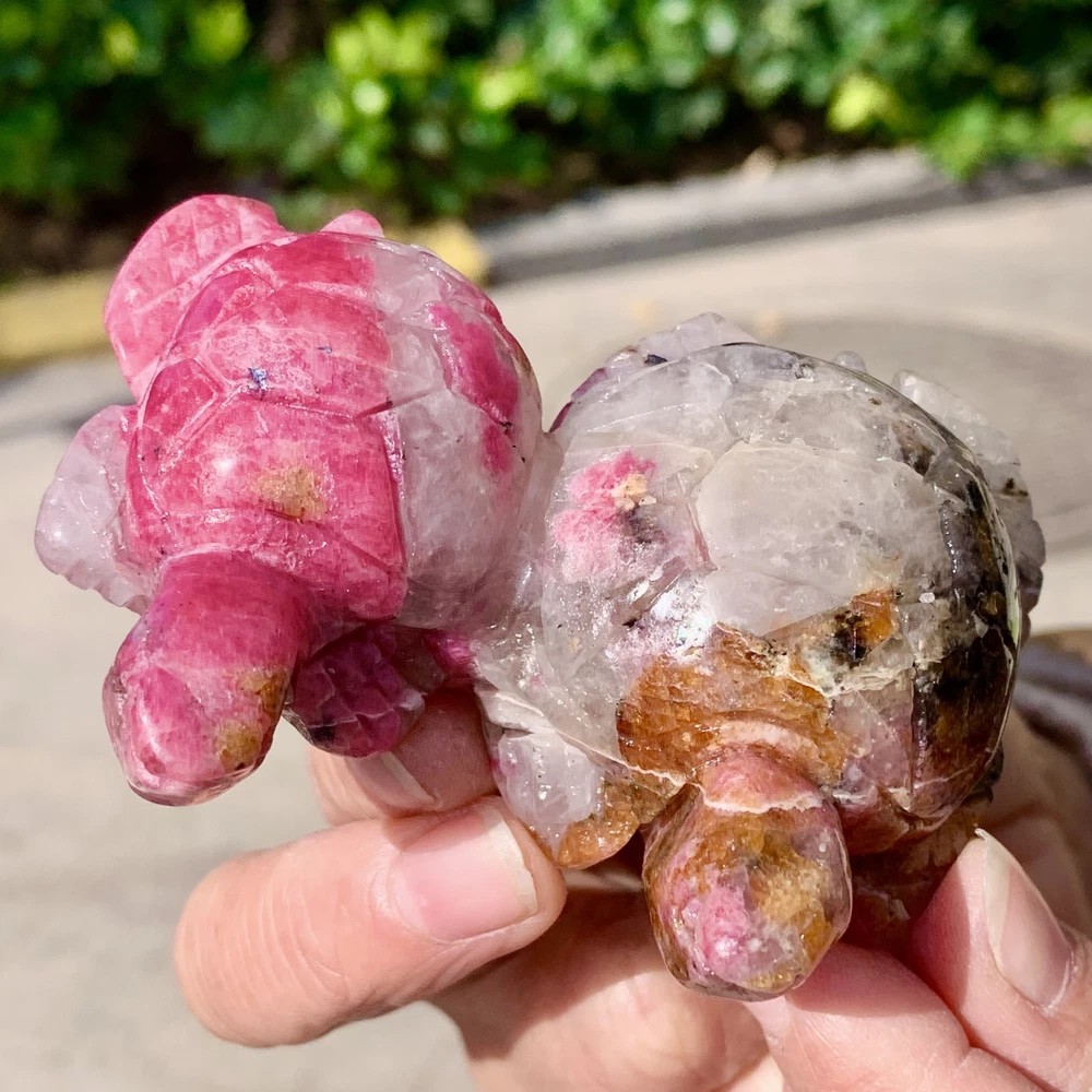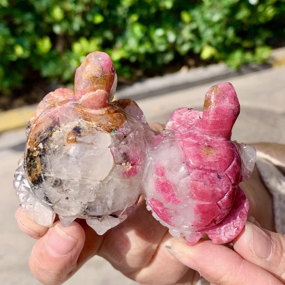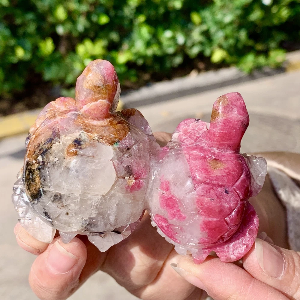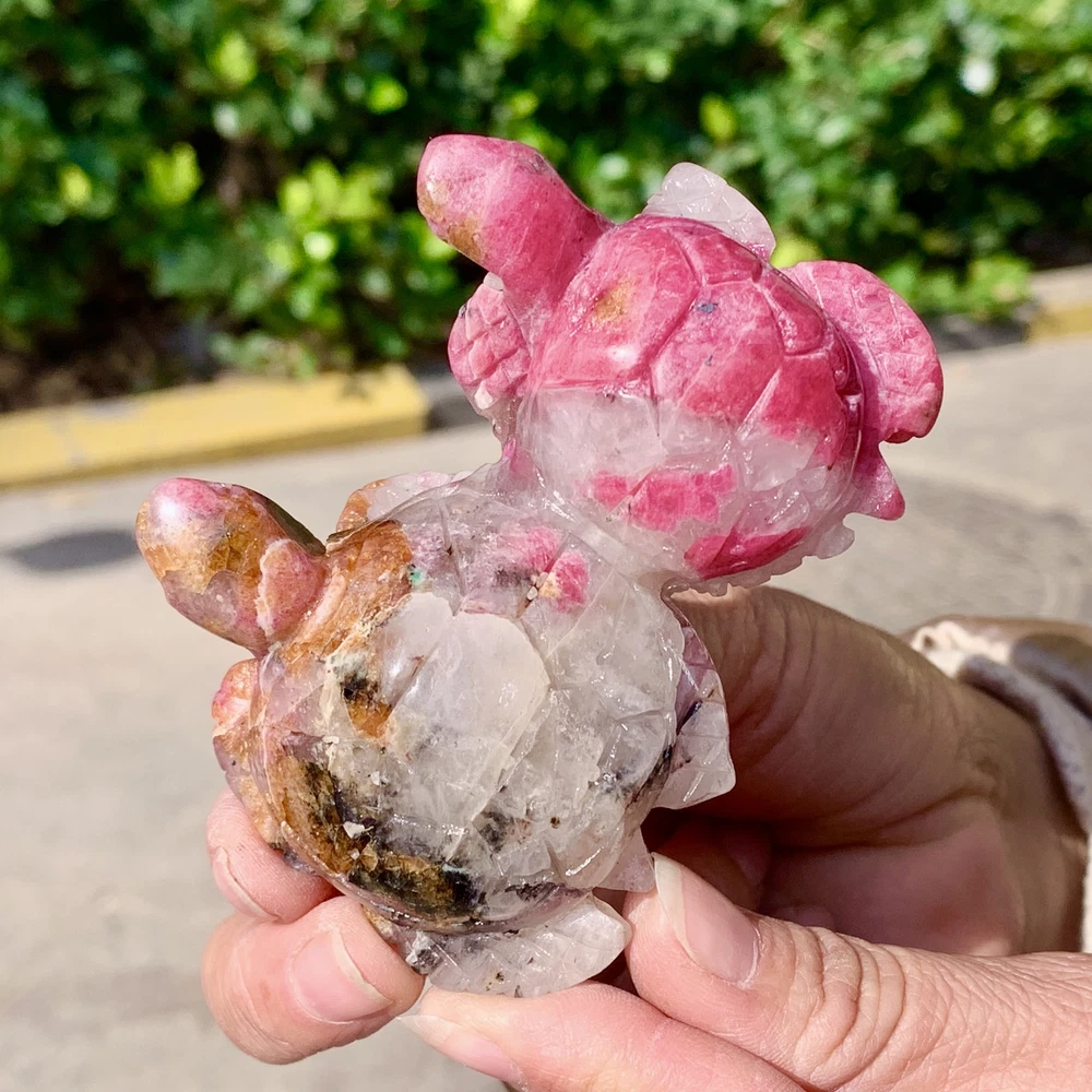 186G Natural Pink Rhodonite Quartz turtle Carved Crystal Statue Animal Gift