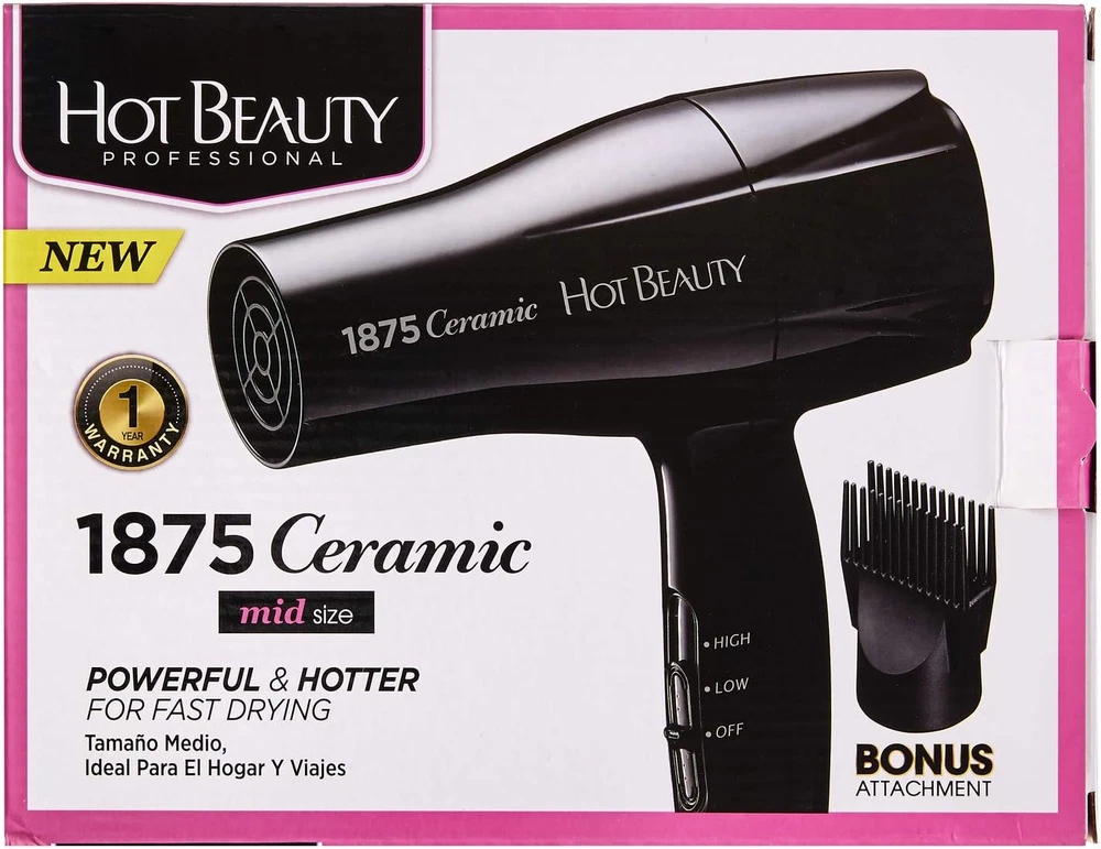【Powerful & Hotter】 Experience salon-quality drying with our blow dryer's impressive power. It delivers a high-velocity airflow, ensuring your hair dries quickly while providing an extra boost of heat for efficient styling. 【Mid Size for Home or Travel】 Designed with convenience in mind, our blow dryer is compact enough for easy storage and travel. Whether you're at home or on the go, you can achieve professional-looking results without compromising space. 【Slide Bar Switch】 Customize your drying experience with slide bar switch. It allows you to effortlessly adjust the airflow speed and temperature, catering to your unique hair type and desired style. 【Detachable Comb Attachment】The included comb attachment snaps on easily, allowing for precise styling and added volume. This versatile tool is perfect for creating a variety of looks, from sleek and straight to full-bodied and textured. 【Versatile Styling Tool】Whether preparing for a special occasion or managing daily hair care, the Hot Beauty Hair Dryer is your go-to device for achieving an array of stylish looks effortlessly. B07BJ4JVYZ