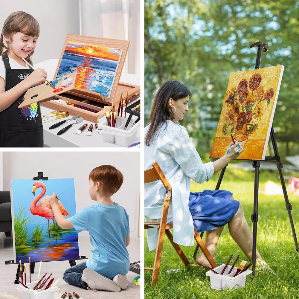 Store New Arrivals Add to Favorite View Feedback Contact 187Pcs Professional All-In-One Art Painting Kit with Aluminum & Beech Wood Easel, 96 Acrylic, Watercolor & Oil Paint Set, Complete Art Supplies Painting Set for Adults, Artists, Beginners Description Item model number 179 Item dimensions L x W x H 21.65 x 17.32 x 4.57 inches Age Range (Description) Adult Color Multicolor Set Name Deluxe Artist Painting Kit Material Wood Style Modern Item Weight 19.46 pounds Size 187Piece Set Model Name Deluxe Artist Painting Kit Art Craft Kit Type Painting Number of Pieces 187 Special Feature Non-Toxic Product Dimensions 21.65 x 17.32 x 4.57 inches Paint Type Acrylic, Watercolor, Oil 【All-in-One PROFESSIONAL Painting Kit:Paint Instantly with Everything! 】Unlock your creativity with this complete art supplies set! WHAT YOU GET: TWO Premium easels (Aluminum Tripod + Beechwood Tabletop), Professional-grade paints (48 Acrylics, 24 Watercolors, 24 Oils), specialized brush sets for each medium (15 Acrylic, 10 Oil, 10 Watercolor), versatile surfaces (Canvas Boards, Stretched Canvas, Oil/Watercolor/Acrylic Paper Pads), essential tools (5 Palette Knives, 2 Palettes, Color Mixing Wheel), PLUS our exclusive bonus: Stain-Resistant Artist Apron & Brush Cleaning Basin! Perfect for beginners, students, hobbyists, and pros exploring multiple mediums. 【PRO-GRADE & NON-TOXIC PAINTS: Vibrant Colors, Safe for All】Experience rich, vivid pigments with professional high pigmentation for true color intensity. The 24 rich Oil Paints offer slow drying for smooth layering and textures. 24 vibrant Watercolors deliver transparent washes with minimal granulation. These lightfast 48 acrylic paints resist fading over time, delivering smooth blending and quick-drying performance – ideal for techniques from thin glazes to thick impasto. Certified Non-Toxic (ASTM D-4236 & EN71-3), acid-free, and safe for kids & adults – Delivering premium performance for every skill level. 【DUAL PRO EASELS: Floor Standing + Tabletop】 Paint anywhere, any style! Accommodate multiple canvas sizes with 2 versatile easels: A sturdy, adjustable-height Aluminum METAL TRIPOD EASEL for large canvases and outdoor painting (plein air), and a solid BEECHWOOD TABLE EASEL for detailed studio work. Paint freely anywhere. Perfect for home studios, art classrooms, or artists on the go. 【PERFECT GIFT FOR ALL AGES & SKILL LEVELS: Impress Every Artist!】 The perfect present that wows! Looking for an art gift for adults, teens, or kids? This 187-piece deluxe painting set arrives in elegant, gift-ready packaging. It's the #1 gift choice for creatives - kids, teens, adults, beginners, professionals. Ready-to-use painting gift set ideal for Christmas, birthdays, graduation, or any occasion. Give the incredible gift of professional art supplies they'll truly cherish! 【Unbeatable Value & Quality: Exclusive Bonus + Pro Tools】Paint mess-free and Enjoy a cleaner studio with BONUS stain-resistant artist apron and brush basin cleaner – rarely included in other kits! This comprehensive 179-piece professional art kit offers exceptional value. Every tool – from carefully selected pro brushes to durable easels and our exclusive apron & basin – is built for performance and longevity. Enjoy significant money& time savings vs. purchasing equal-quality individual professional art materials separately. The smart, long-lasting choice for seasoned artists and dedicated beginners. Product description ABOUT US We offer the best prices around on high quality products. Our E-store includes media such as books, movies, music and games while offering electronics, toys, sporting apparel, clothing, tools, general home, garden items and more. SHIPPING We are always working hard to ensure your package arrives as soon as possible. Please understand that some factors like weather, high postal traffic, and the performance of shipping companies are outside of our control. We offer free shipping to the lower 48 states and ship within 2 business days of payment, usually sooner. We do not accept P.O. Boxes. Please provide a physical address. For shipping outside of the continental USA, we only use eBay's Global Shipping Program.The item is shipped to KY and then sent to the rest of the world. International customers are responsible for all duties and taxes. Continue to check out in order to calculate costs for shipping the item to your country. Messages regarding eBay's Global Shipping Program MUST be directed at eBay EXCLUSIVELY. RETURNS We offer a 30-Day Return Policy on items which you are not completely satisfied with. You have the option for a full-refund or an exchange of the item. No returns are available on items shipped outside of the USA. PAYMENT We accept PayPal. CONTACT US This page content is yet to come Please ad us to your favorite seller and visit again later Thank You CUSTOMER SATISFACTION We try our very best to make sure every customer is completely satisfied. If there's a problem, message us! We're happy to help. WE ACCEPT Copyright © 2021 AutoDS. | All Rights Reserved
