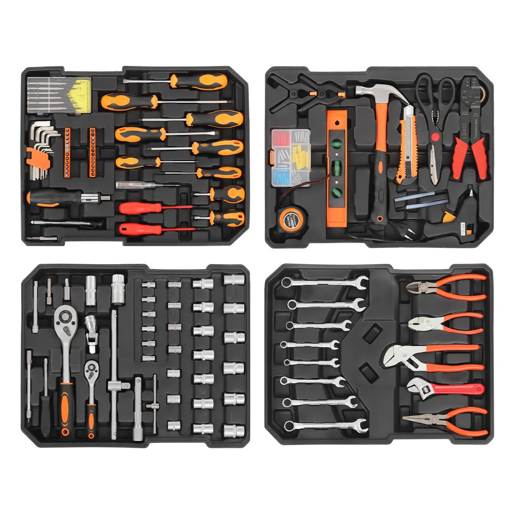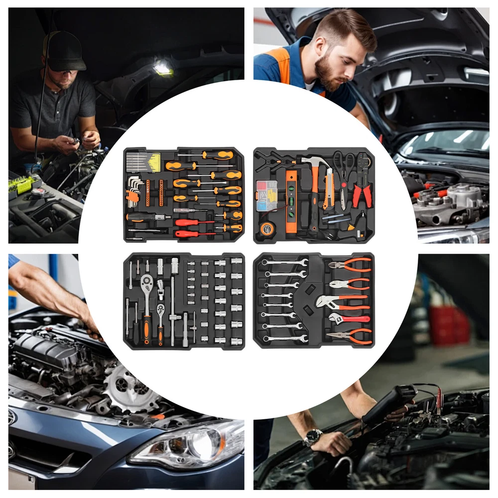 Specifications Style: Modern Color: Silver Material: Carbon Steel Process: Chrome-plated Number of Pieces: 187 Number of Compartments: 4 Luggage Size: 50.8*38.1*20.3cm/20*15*7.99in Package Size: 38.5*21*52cm/15.16*8.27*20.47in Gross Weight: 11kg/24.25 lbs Net Weight: 10kg/22.05 lbs Package Included 1* Hardware Tool Set 1* Luggage 2* Keys 187Pcs Trolley Case Tool Box Set, Household Hand Tool Kit, Mixed Hand Tool Kit Description This hardware tool set is a comprehensive solution designed specifically for vehicle maintenance technicians to efficiently and safely disassemble, examine, and repair various vehicles. It is made of high-strength carbon steel for high durability. With complete accessories, it is a time-saving and labor-efficient device that maximizes efficiency while minimizing physical strain. Overall, our tool kit offers great efficiency, convenience, and durability, making it a versatile tool for professionals. Key Features Selected Material : It is made of high-quality carbon steel and treated with a chrome-plated process, which is strong, rust-resistant, corrode-resistant, impact-resistant, and has a long service life, providing precise and flawless work. Good Assistant : It can provide professional vehicle maintenance and repair, making it an ideal choice for miscellaneous workers, mechanics, construction workers, and workshop workers to improve work efficiency. Complete Kit: This product contains 187 pieces of commonly used tools, including spanners, screwdrivers, rulers, hammers, universal joints, etc., which can meet the repair and maintenance needs of different vehicles without the need to search for additional tools. Cost-saving : With this kit, you can realize convenient vehicle maintenance by yourself without going to an automobile shop and its high quality allows for reuse, saving you time and money. Easy to Carry and Store: The practical luggage has four built-in grooved compartments for easier storage, keeping every tool protected while preventing bumps, wear and tear, and loss. Smooth wheels, practical handle, and telescopic rod make it easy to move around and convenient to carry wherever you need it. Labor-saving Cleaning : The smooth surface and simple design allow for easy cleaning and maintenance with a damp towel (not included). Ideal Gift: This practical tool kit is a thoughtful gift for fathers and husbands on holidays, birthdays, and other occasions. Customer Service: We aim to provide quality products and services. If you have any problems, please feel free to contact us. We will reply and solve the problem for you as soon as possible. Details Lock Design: A lockable luggage can effectively prevent tool loss and prevent children from accidentally taking it, improving safety. Two keys are convenient for you to keep and avoid losing them. Rounded Edges : The burr-free and rounded edges improve the safety of use. Stable Feet: They keep the case sitting upright for you to store without shaking and affecting the tools inside. Application It is suitable for the repair and maintenance of motorcycles, bicycles, cars, electric vehicles, home maintenance, garden care, general repairs, etc. Specifications Style: Modern Color: Silver Material: Carbon Steel Process: Chrome-plated Number of Pieces: 187 Number of Compartments: 4 Luggage Size: 50.8*38.1*20.3cm/20*15*7.99in Package Size: 38.5*21*52cm/15.16*8.27*20.47in Gross Weight: 11kg/24.25 lbs Net Weight: 10kg/22.05 lbs Package Included 1* Hardware Tool Set 1* Luggage 2* Keys Notes Please pay attention to safety during the operation. Please allow the slight color difference caused by the shooting light and 1-3cm error due to manual measurement and make sure you do not mind before ordering. Payment Delivery details Terms of sales About us Contact us Payment We accept ebay payment 。 Fees such as import duties, taxes are not included in the item price or shipping costs. These charges are the buyer's responsibility. Delivery details Shipping: 2-9 working days to: USA Terms of sales We maintain high standards of excellence and strive for hundred percent customer satisfaction. Feedback is very important to us. We hope that you contact us immediately before you give neutral or negative feedback, so that we can address your concerns. It is impossible to address issues if we do not know about them! About us Your satis faction is our ultimate goal. We work hard to earn your trust and future business. Our certified technicians have tested each item before shipping. The unit comes with 1 year limited warranty on all manufacturing defects. a) If you receive a defective item, you may return it or ask for a discount. Please contact us within 14 days after you receive the package. b) What you returned must be intact and in its original packaging as re? u. Customer is responsible for shipping costs of the returned item. c) We will cover the cost of shipping back t with the shipping rate indicated in the registration page. We will send you a new unit or refund the full payment you paid. Thank you. Contact us Business Hour Business Hour: Monday To Friday: 8:30 AM to 5:00 PM (Beijing China time) Due to time zones, our reply to your questions may not be immediately. But within above working time, we will reply your email within 24 hours. If it's non-workdays, please kindly be patient and wait till Monday. Please contact us with ebay message. Please feel free to contact us if you have any questions. Monday To Friday: 8:30 AM to 5:00 PM (Beijing China time) Due to time zones, our reply to your questions may not be immediately. But within above working time, we will reply your email within 24 hours. If it's non-workdays, please kindly be patient and wait till Monday. Please contact us with ebay message. Please feel free to contact us if you have any questions. Brand Unbranded Type Handy Man Tool Set Number of Pieces 187 Color Orange, Red Case Included Yes Tools Included 187 pieces of commonly used tools On Feb 5, 2025 at 20:03:06 PST, sell