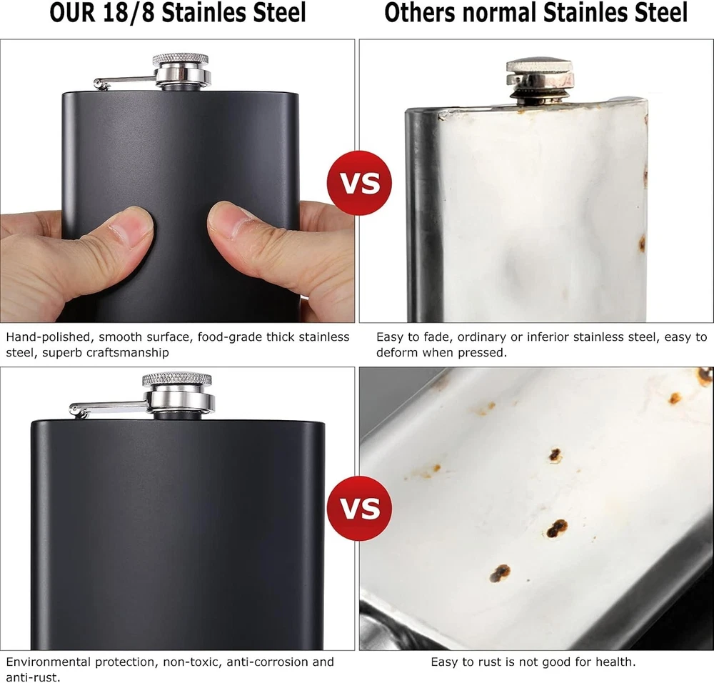 18/8 Stainless Steel 12oz Hip Flask with Free Funnel - Leak Proof Design ‹ › ‹ › ‹ › ‹ › ‹ › ‹ › ‹ › ‹ › 18/8 Stainless Steel 12oz Hip Flask -Leak Proof Design Features: Finest food grade 304 18/8 stainless steel High-frequency welding laser-free solder, environmental protection, non-toxic, anti-corrosion, anti-rust 100% leak proof with secure sealing Handcraft polishing classical design Comes with a free funnel Benefits: High-quality stainless steel ensures durability and longevity Safe and non-toxic materials Leak-proof design for worry-free carrying Classic and timeless design Includes a free funnel for easy filling Why choose our 18/8 Stainless Steel 12oz Hip Flask? Looking for a reliable and stylish hip flask? Our 18/8 Stainless Steel 12oz Hip Flask is the perfect choice. Made from the finest food grade 304 18/8 stainless steel, it is not only durable and corrosion-resistant but also safe for your health. The high-frequency welding laser-free solder ensures a leak-proof design, so you can enjoy your favorite drink without any spills. With its classic and timeless design, this hip flask is perfect for any occasion. Plus, it comes with a free funnel for easy filling. Whether you're fishing, hunting, camping, or enjoying a BBQ, our hip flask is the perfect companion. Don't settle for anything less - order your 18/8 Stainless Steel 12oz Hip Flask today! Shipping Free & Fast Shipping - We offer free shipping to most of the USA with a normal delivery time of 3-7 days. However, due to the current situation, additional delivery time (up to 3 weeks) may be required for some items. Alternative Carriers - We may use alternative carriers (e.g. USPS, FedEx, UPS, etc.) to ensure your package arrives safely and on time. Due to the use of multiple carriers, we are unable to provide a tracking number automatically. Handling Time - Orders are processed and shipped within 1-2 business days of receiving cleared payment. Shipping Restrictions - Shipping to Alaska, Hawaii, Puerto Rico, Guam, and other US territories may incur shipping charges or delivery restrictions. Please contact us before ordering, or your order can be refunded/cancelled. State Restrictions - There may be restrictions based on your state of purchase. For example, certain items may not be shipped to California due to state regulations. Contact for Tracking Updates - If you require tracking updates or have any concerns about the delivery of your order, please feel free to contact us, and we will be happy to assist you. Return 30-Day Hassle-Free Returns - We want you to be completely satisfied with your purchase. If you are not, you can return the item within 30 days of receiving it for a full refund or exchange. Easy Return Process - To start a return, simply contact us and we will provide you with a prepaid return shipping label and detailed instructions. Restocking Fee - There are no restocking fees for returns. However, the buyer is responsible for return shipping costs if the return is not due to a seller's error. Refund Processing Time - Refunds will be processed within 5 business days of receiving the returned item in its original condition. Payment We accept all major credit cards, PayPal, and Apple Pay for your convenience. Your payment information is secure and encrypted to ensure a safe and seamless transaction. Please complete your payment within 3 days of purchase to avoid any delays in shipping. Feedback Your feedback is extremely important to us. We strive to provide the best products and customer service possible. If you are satisfied with your purchase, please take a moment to leave us a positive review. If you have any concerns or issues with your order, please contact us before leaving negative feedback. We are committed to resolving any problems and ensuring your satisfaction. Contact Us If you have any questions or concerns, please feel free to reach out to our customer support team. You can contact us through the eBay messaging system. We are available Monday to Friday, 9:00 am to 5:00 pm EST, and we will do our best to respond to your inquiry within 24 hours. Thank you for supporting our small family business!