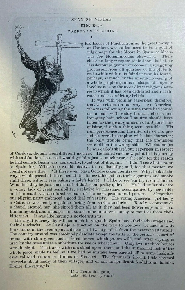 Vintage illustration removed from a magazine published in 1882. Contains 18 pages including 16 illustrations. Page size approximately 6 inches x 9 inches. Would be great for addition to any vintage print collection. SKU # 16326 Nice article overall. Has some browning, age toning, and dinged corners, but overall very nice for a 100-year-old magazine article.