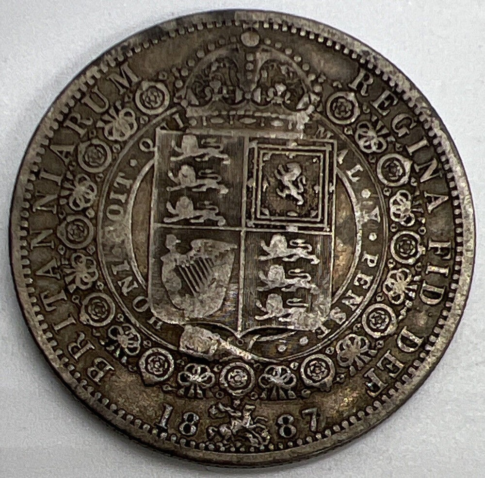 1887 Victoria Half-Crown British Silver Coin Fine Collectible Grade a1170