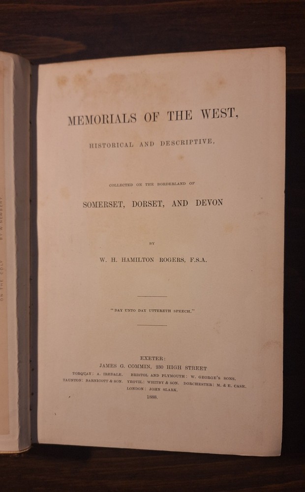 The product is a leather-bound book titled "1888 Memorials Of The West (Historical And Descriptive)" by W.H. Hamilton Rodgers. It is a historical book published by James G. Commin in London, England. The book is in English and is an original edition, not a facsimile. It is a valuable collectible item for those interested in the history of the United Kingdom and the west.