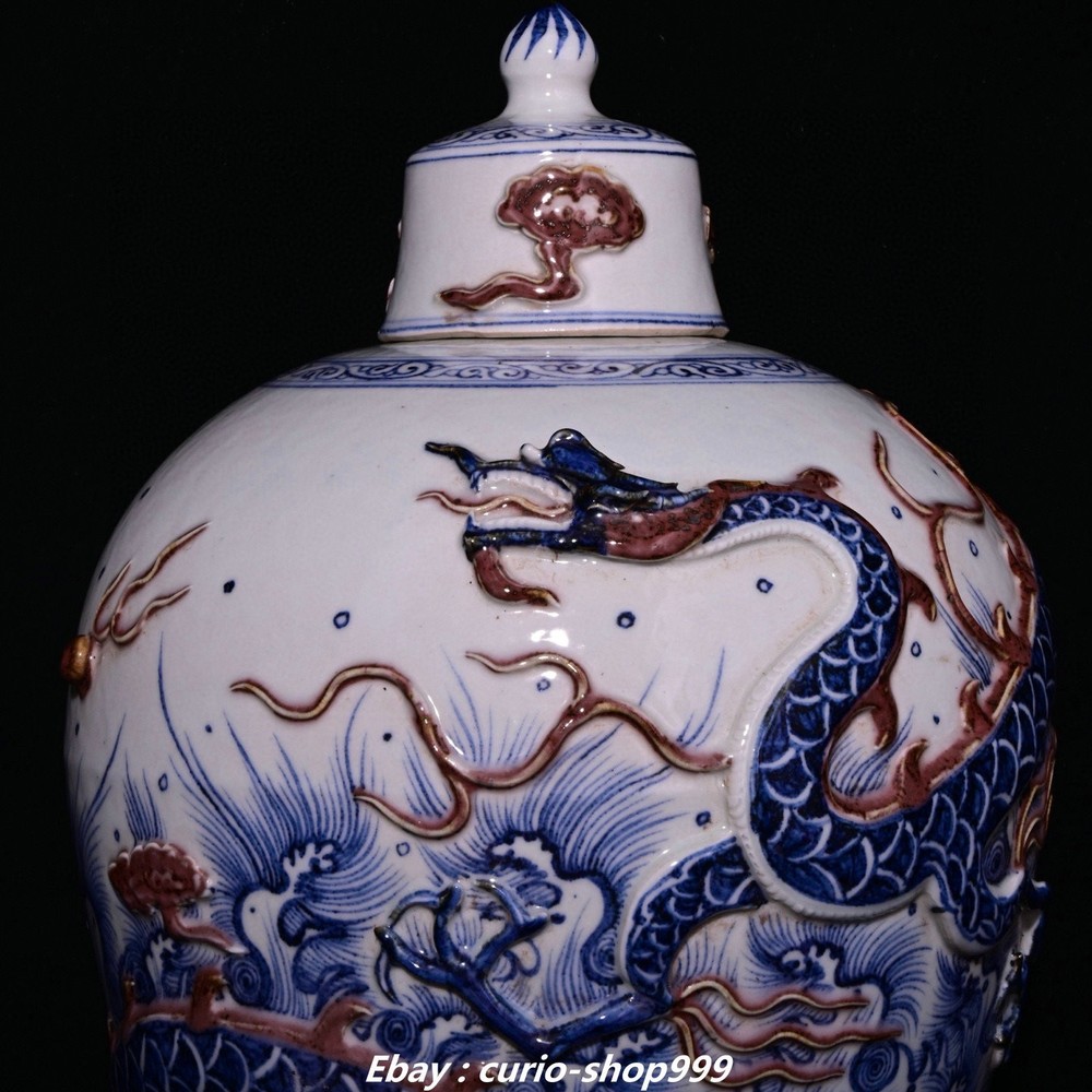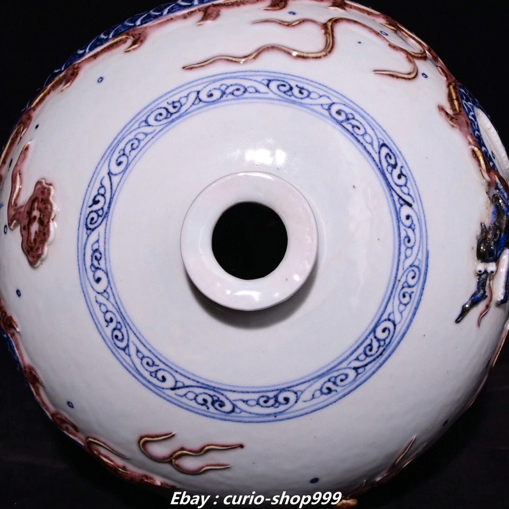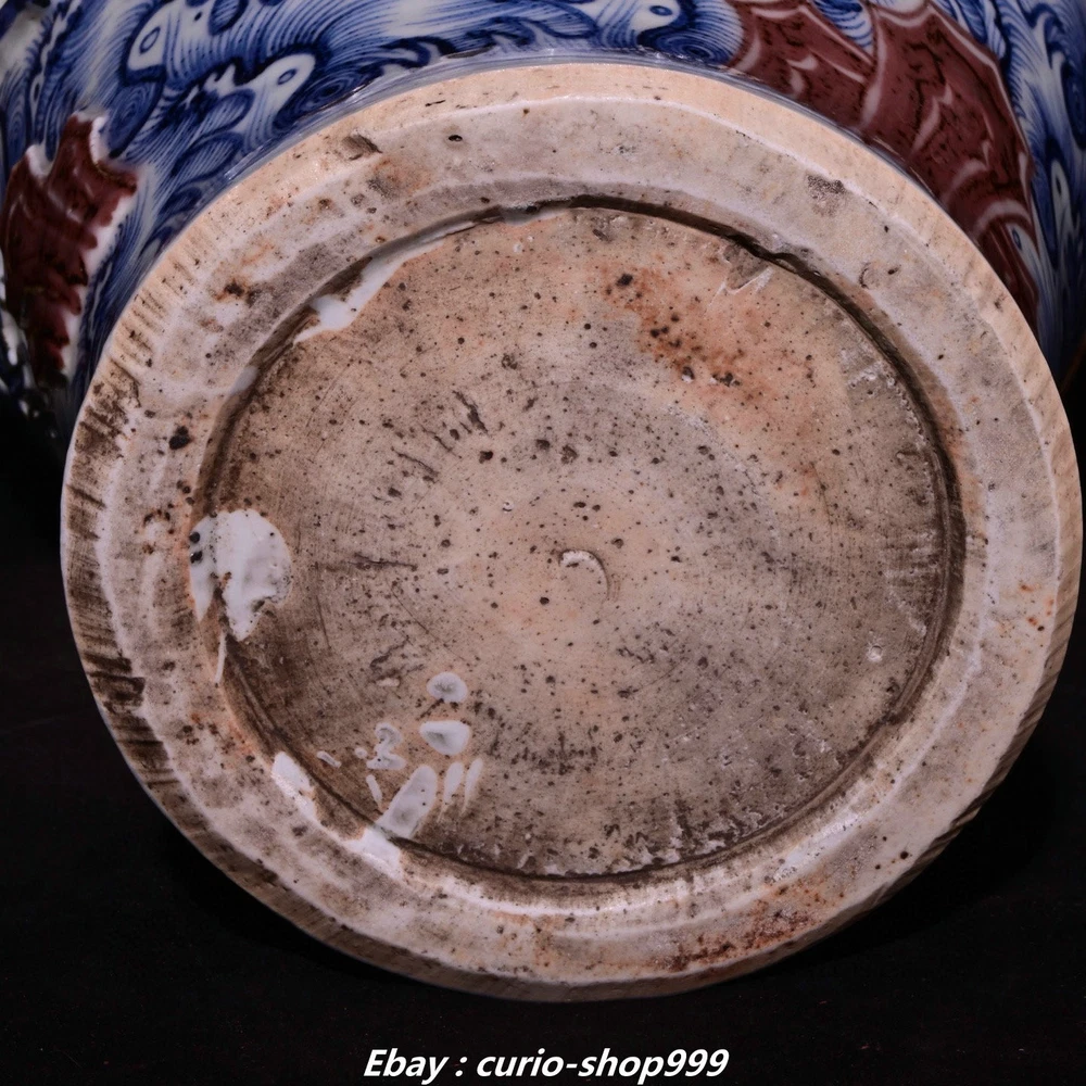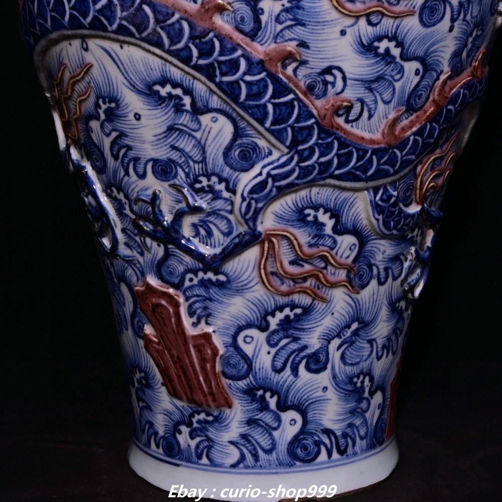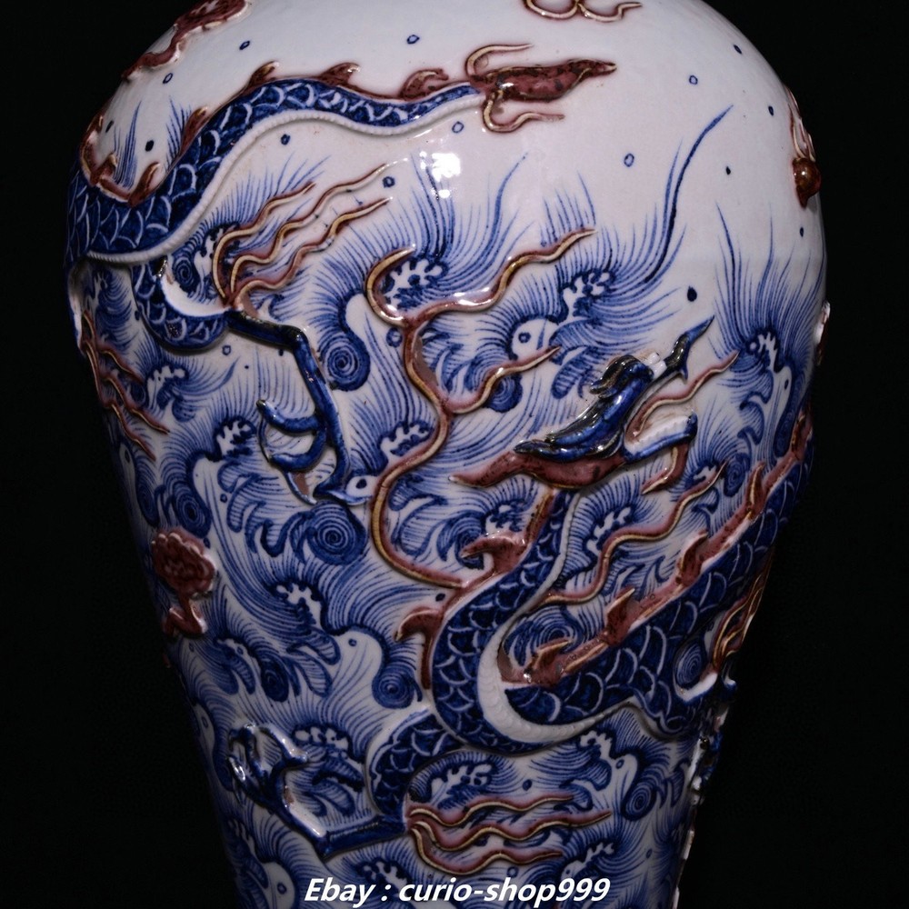 **** Welcome to our antique & Collectable Shop : Porcelain**** Description: Here is 18.9"Yuan Dynasty Blue White Red Glaze Porcelain Dragon Pattern Bottle Vase Pair . It is in good condition, and was created by skilled craftsmen in traditional style with fine handcrafts.This is a great piece of valuablellection, a valuable personal alter or a very good present. the handwork is very fine with incredible detailling. Don't miss out this chance to get it.Wish you good luck! Material : Blue White Red Glaze Porcelain Size: Heigh 18.9 Long 10.2 breadth 10.2 (inch) Condition Perfect Condition. Perfect, with no scratc hes, flaws or repairs. Weight: 15 KG----included the weight of packing materials Shipping cost to all over the world countries in Free Honored Customers: We are selling the collectibles products and crafts in Beijing ,China since 1993 and collected them all over the world all the time . In our shop the bronze sculpture, animal, vase, urn, flowerpot,Incense Burner.Table chair sets. Militaria goods. buddha statues, Bodhisattva Statues, Buddhist Ritual Items etc is our speciality .Many of the items we sell come from our own personal collection and have been in our family for a very long time .My great-grandfather was the first in this family to start collecting art & antiques when he still lived in San Xi and Tibet around 1922 ,some of the paintings he once collected can now be seen in museums around the globe.We won't make money from t he shipping cost, if you dislike the item when you receive it,we can refund all of your money to you within thirty days. Please confidence for bidding . We recommend the combine shipping and offer you an big price discount if you order more items together ! 2025.7.23 四 号