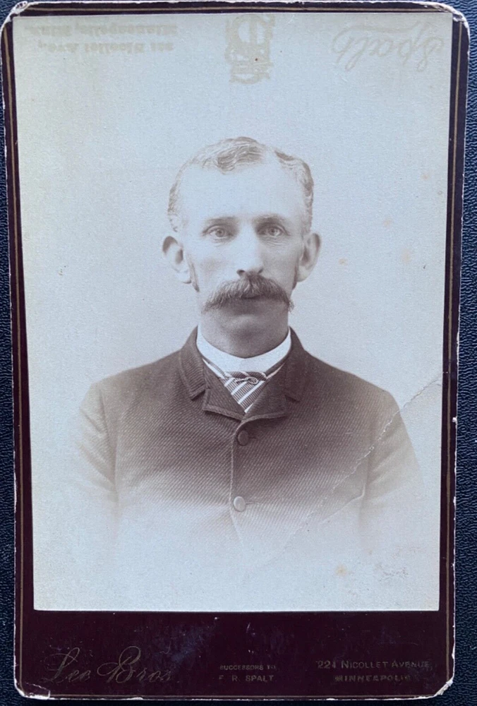 Mustachioed Man Antique cabinet card photograph 1890s Photo taken by Lee Bros. of Minneapolis, Minnesota Size of photo is 4.25"x 6.5" inches Visit our store for 2,000+ items – Thank You!