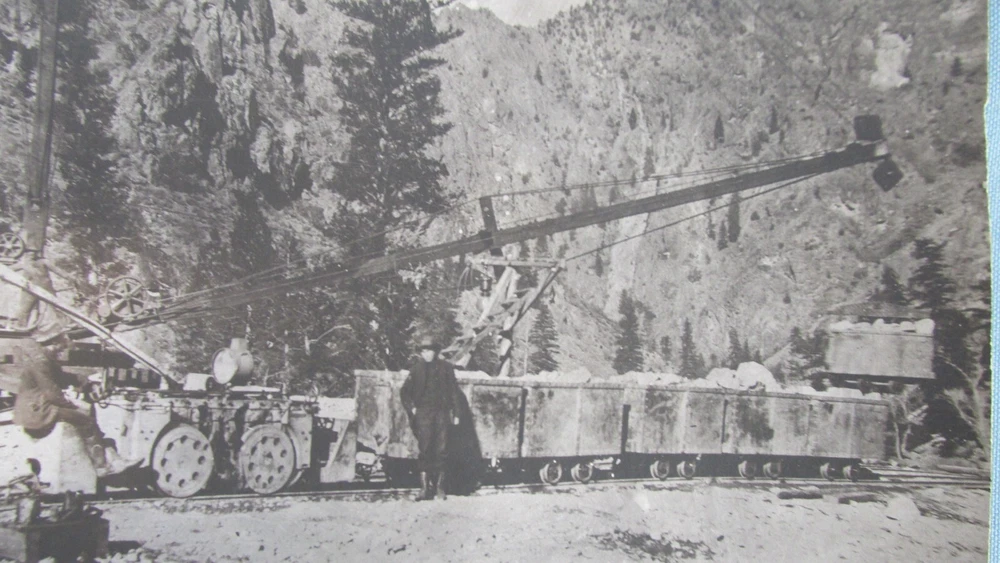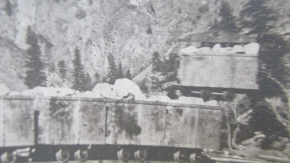 Offered here is an original 1890's Print Photograph that shows a string of Five Ore Cars being pulled by a large Mine Locomotive, with one ore car being lowered into place at the back of the line. A classic photograph from Marble, Colorado, based on the steep mountain terrain and the large pieces of white rock in the ore cars. Well detailed with the Mine Loco Operator posed as shown.. Measures 6.50 x 4.75. The mining town of Marble is located not far from Aspen and Glenwood Springs, still producing large quarried pieces of valuable marble today. The Marbel was used in building foundations across the country, as well as crushed to use as ballast. Great display photograph well suited for framing. Thanks for looking!