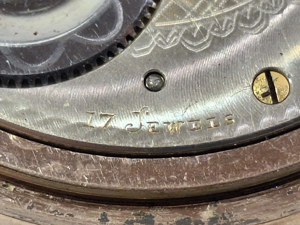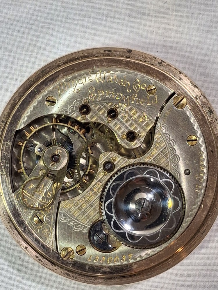 The 1896 Wadsworth Pilot Pocket Watch is a luxurious timepiece with a solid yellow gold plate and a matte finish. This double plate watch features an Arabic numeral dial, 12-hour dial, and a white color scheme. It has been wound and found operational, but not tested for accuracy or duration. Manufactured in the United States in the late 19th century Illinois Watch Co,, this open-faced pocket watch is a timeless piece that exudes elegance and sophistication. Perfect for both men and women, this Wadsworth pocket watch is a classic accessory that adds a touch of luxury to any outfit.