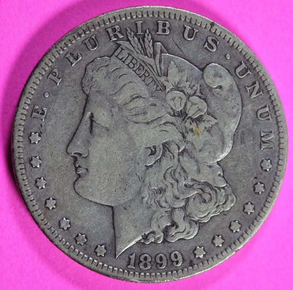 Fineness: 0.900 Certification: Uncertified Precious Metal Content per Unit: .7734 oz Brand/Mint: U.S. Mint Country/Region of Manufacture: United States Composition: Silver Total Precious Metal Content: .7734 oz Strike Type: Business Year: 1899 Grade: Ungraded Coin: Morgan Silver Dollar