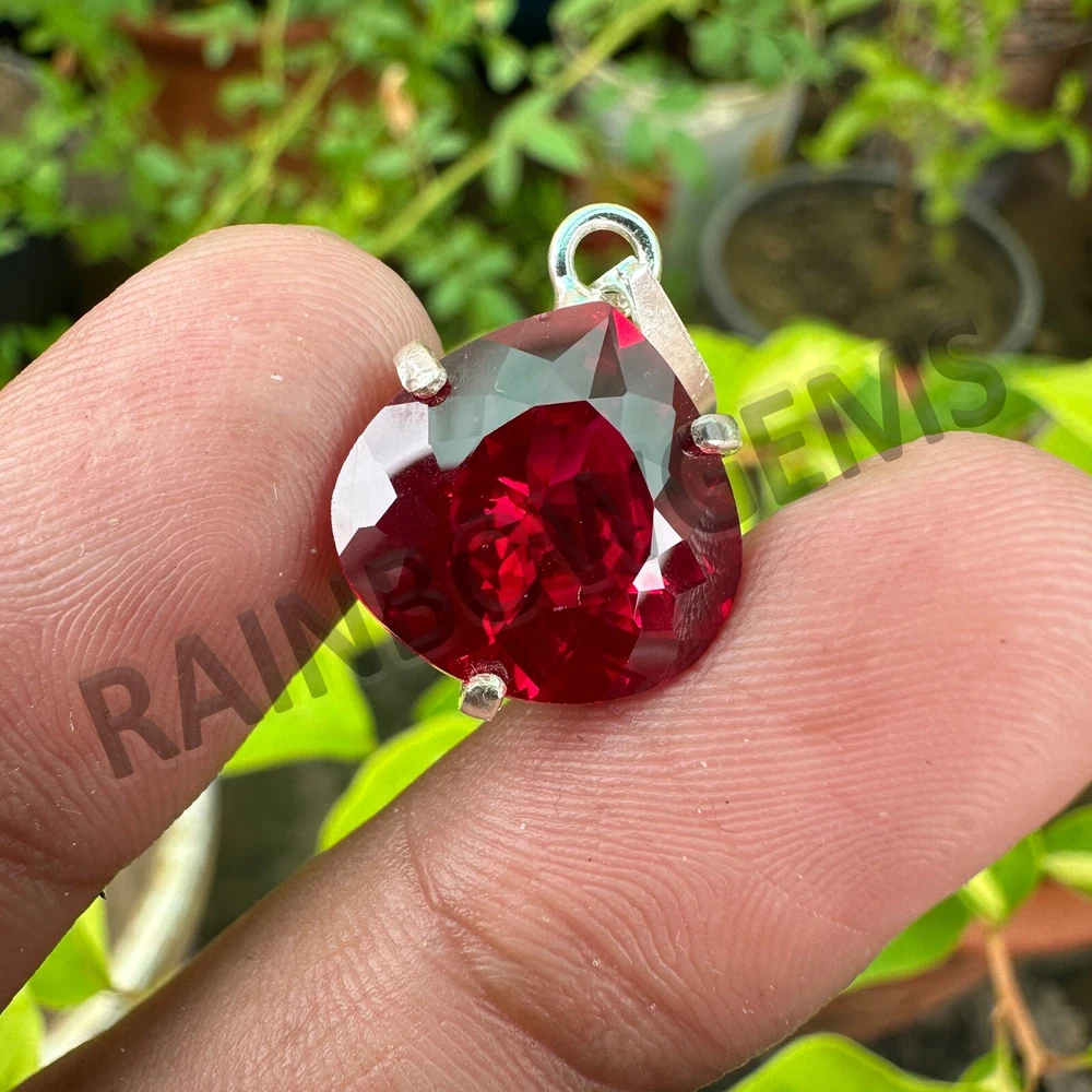 $ 31.6917.85 CT Natural Red Ruby Pendant in 925 Sterling Silver Handcrafted Jewelry