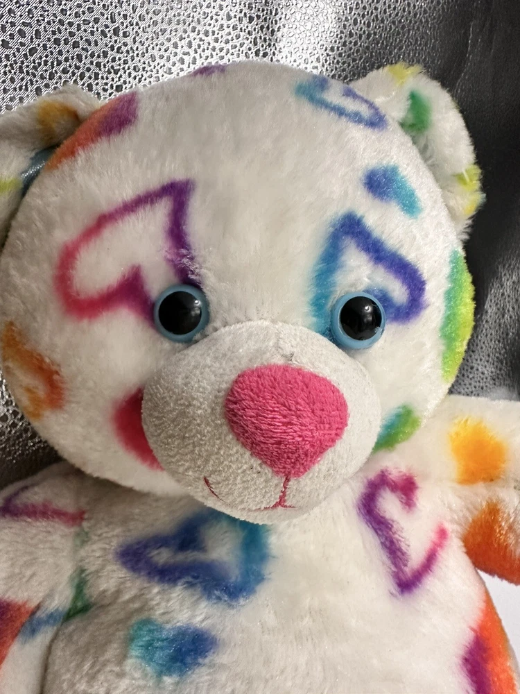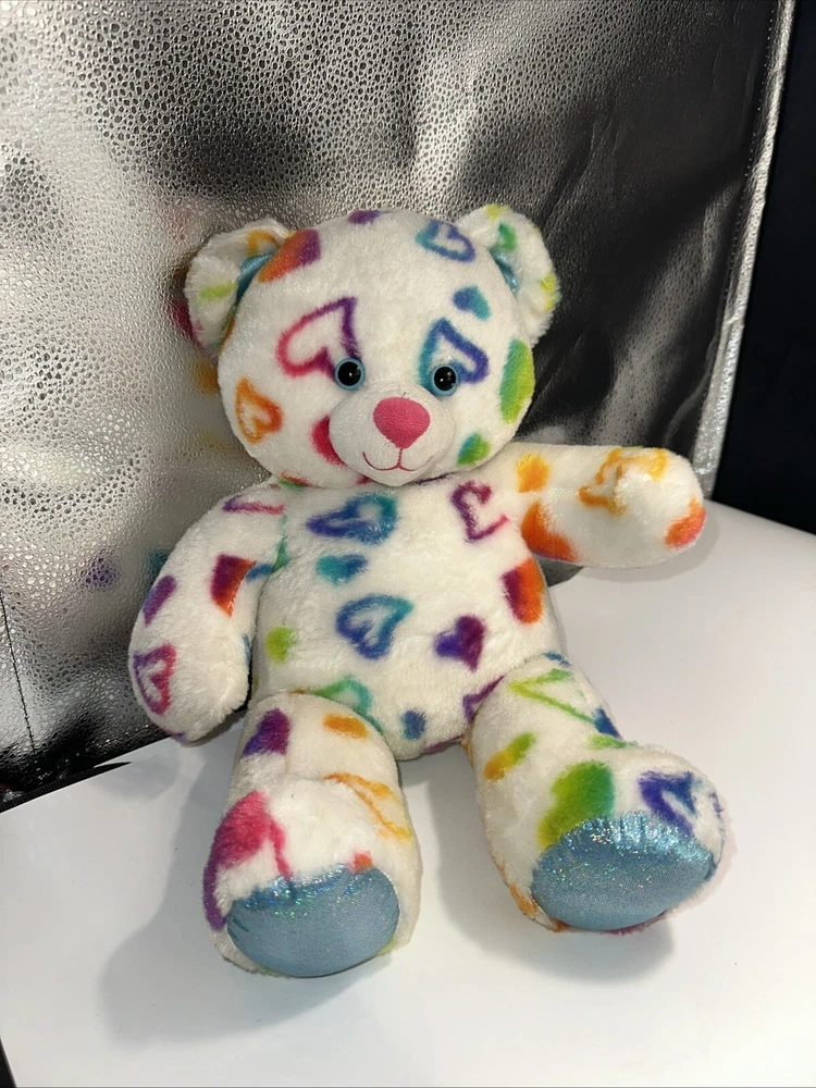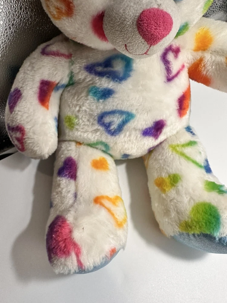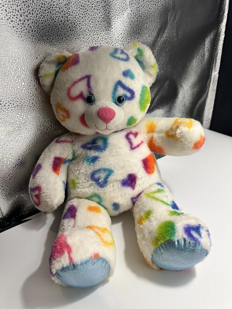 #18D Build a Bear Rainbow Hearts Teddy Plush 16" Stuffed Toy Lovey