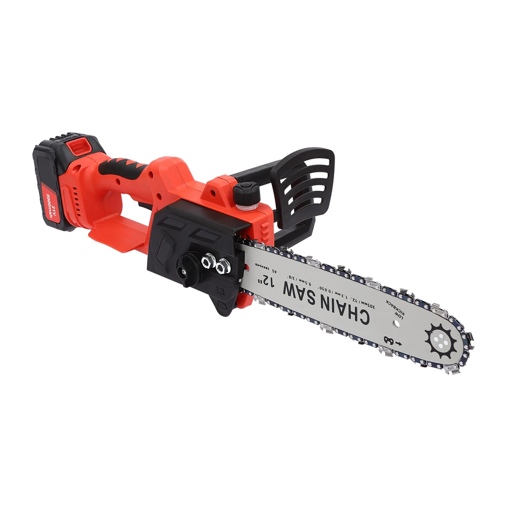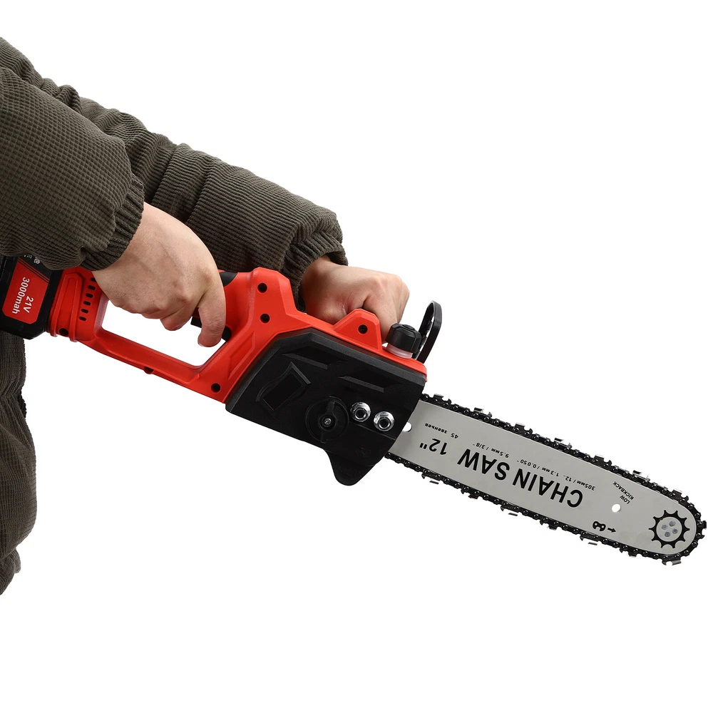 Package Included 1* Chainsaw Mainframe 1* Guide Bar 1* Chain 1* Battery 1* Charger 1* Protective Baffle 1* Handel 1* Wrench 1* English Manual Specifications Style: Modern Model: 18D04 Color: Red, Black Battery Voltage: 21V Battery Capacity: 3000mAh Plug Standard: US Standard Power Source: Battery Powered Motor Type: Brushless Motor Assembly Required: Yes Guide Bar Length: 30.48cm/12 in Adapter Model: SRJ210100 Adapter Input: AC 100-240V, 50/60HZ, 0.8A Adapter Output: 21V 1.0A Gross Weight: 3.5kg/7.72 lbs Total Height(Battery Included): 65cm/25.59in Battery Size(L*H): 20*14cm/7.87*5.51in Package Size: 16*20.5*36cm/6.3*8.07*14.17 in Welcome to worldwide888-shopping! Description Description Using traditional axes to cut wood is inefficient and very tiring, so you can choose our mini cordless chainsaw for improving efficiency in pruning, wood cutting, and gardening. It boasts a high quality and provides a great cutting effect, all while featuring a lightweight and compact design. With a battery-powered power source, it can be conveniently used for outdoor operations, emergencies, and in locations without access to sockets. Having it will make your work easier and simpler! Key Features Sturdy and Durable: The product is made of high-quality materials, using exquisite craftsmanship, with high strength, wear resistance, and long service life. High Efficiency: Thanks to its premium motor, strong power, sharp chain, long guide plate (12 in), and fast chain speed, this item can achieve a large cutting diameter with less power consumption, allowing you to prune, saw, and log with less time and effort. Environment-friendly: Adopting rechargeable lithium batteries as the power source without plugging in wires, this chainsaw is more environmentally friendly compared to other gasoline-powered chain saws because it does not generate gas and emissions. Long-lasting Battery : The large-capacity (3000mAh) lithium battery can make the product work for long hours, so do not have to worry about frequent charging and power emergencies affecting the work. The equipped charger ensures timely charging for the battery. Thoughtful Design: The oil level window allows you to monitor changes in the oil level in real-time to facilitate timely refilling. Good Heat Dissipation Performance: The heat-sink holes on the machine ensure a good heat dissipation effect, which can effectively avoid excessive body temperature, thereby extending the service life of the machine. High Safety: The safety lock and on/off trigger provide a double safeguard against accidental activation and protect your use. Easy to Use: Easy to Use : With the lightweight (gross weight: 7.72 lbs), compact design(25.59in total length), and a detailed English manual, you can easily operate the cordless chainsaw. Even the elderly and women can easily operate and control it, making cutting and trimming a pleasure. Customer Service: We aim to provide high-quality products and services. If you have any questions, please feel free to contact us. We will reply as soon as possible and solve the problem for you. Details Protective Baffle: It reduces workpiece debris splashing and protects you from injury during cutting. Ergonomic Handles: The ergonomic handle has textured skin, gives you a comfortable grip without slipping, absorbs shock, and reduces hand fatigue even in long-term use. The auxiliary handle is easy to control to achieve a good balance and high-cutting performance. Application It is widely used in gardens, parks, farms, ranches, pastures, orchards, greenhouses, forests, camping, etc., and can be used for forest harvesting, wood cutting, small branch pruning, bush pruning, gardening, home woodworking, bamboo sawing, logging, DIY crafts, and so on. Specifications Style: Modern Model: 18D04 Color: Red, Black Battery Voltage: 21V Battery Capacity: 3000mAh Plug Standard: US Standard Power Source: Battery Powered Motor Type: Brushless Motor Assembly Required: Yes Guide Bar Length: 30.48cm/12 in Adapter Model: SRJ210100 Adapter Input: AC 100-240V, 50/60HZ, 0.8A Adapter Output: 21V 1.0A Gross Weight: 3.5kg/7.72 lbs Total Height(Battery Included): 65cm/25.59in Battery Size(L*H): 20*14cm/7.87*5.51in Package Size: 16*20.5*36cm/6.3*8.07*14.17 in Package Included 1* Chainsaw Mainframe 1* Guide Bar 1* Chain 1* Battery 1* Charger 1* Protective Baffle 1* Handel 1* Wrench 1* English Manual Notes Please note that gloves (not included) should be worn if necessary. Please keep the product out of reach of children to avoid injury. Please use this product to cut wood within the applicable size range. Please note that this product does not come with lubrication oil. Please read the English manual completely before use, and pay particular attention to the safety instructions included. Please fully charge it before your first use. Please confirm the direction and tightness of the chain before use. If it is not used for a long time, please remember to fully charge the battery first for a better experience the next time you use it. Please allow the slight color difference caused by the shooting light and 1-3cm error due to manual measurement, and make sure you do not mind before you order. Payment Delivery details Terms of sales About us Contact us Payment We accept ebay payment 。 Fees such as import duties, taxes are not included in the item price or shipping costs. These charges are the buyer's responsibility. Delivery details Shipping: 2-9 working days to: USA Terms of sales We maintain high standards of excellence and strive for hundred percent customer satisfaction. Feedback is very important to us. We hope that you contact us immediately before you give neutral or negative feedback, so that we can address your concerns. It is impossible to address issues if we do not know about them! About us Your satis faction is our ultimate goal. We work hard to earn your trust and future business. Our certified technicians have tested each item before shipping. The unit comes with