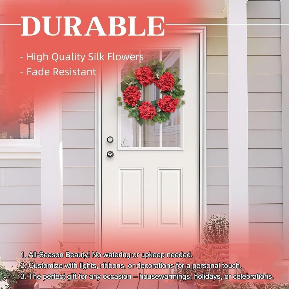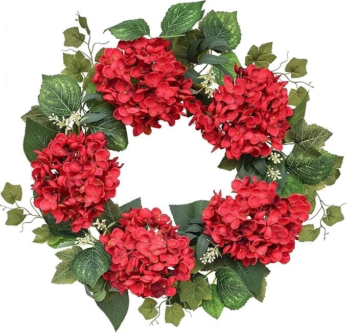 Absolutely love this wreath! The rich burgundy hydrangeas and realistic greenery add a lush, elegant touch to my front door. The colors pop year-round, and the quality is amazing—no fading even in harsh weather. Perfect for any season, from spring to Christmas. Makes my home feel warm and welcoming!