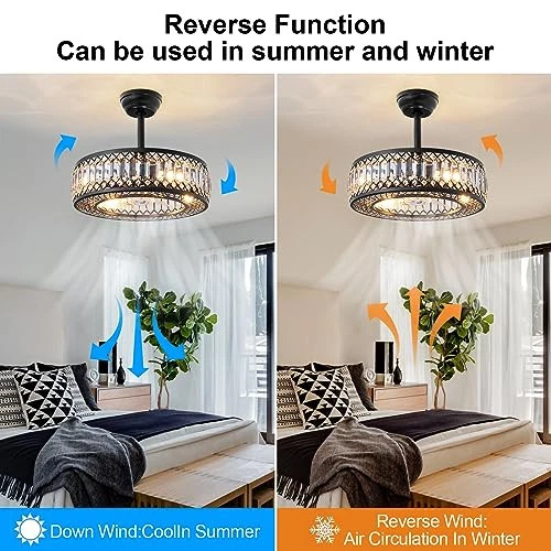 Menu 1. We require immediate payment. 2. We currently accept payment via eBay managed payments only. 3. Once payment is cleared, we will dispatch your shipment within 1-3 business days. Please refer to the "Shipping" tab for more information regarding shipping speed to your destination. Modern Black Crystasl Ceiling Fan with Light, Caged 18" Bladeless Ceiling Fan with Remote Control, 6 Speed Low Profile Enclosed Ceiling Fan with Reversible Motor for Bedroom Kitchen Living Room Product description Crystal Ceiling Fan with Lights: Dazzling look cage ceiling fan light with 7 blades and 4 E26 light bases(Bulbs Not Included), perfectly decorate industrial, vintage, rustic and modern style homes, such as bedroom, living room, dining room, corridor, etc Smart Ceiling Fan with Remote Control: 1/2/4 hour timing, Light & Fan turn ON/OFF, 6-Gear wind speed, Natural wind speed, Forward and Reverse rotating direction. All of the funtion can be controled by remote ( 2 x AAA batteries are required but not included ) Modern Bladeless Fandelier with Reversible Motor: Reversible wind direction help to circulate the airflow in winter and forward wind in summer. Meet your different needs in all seasons. It brings you coolness in summer and promotes heat circulation in winter. Nor Just a classic ceiling fan light but also a home decor 4-LIGHT Caged Ceiling Fan Light: 4*E26 lamp base(bulb not included). Any E26 edison bulb is easily assemble without removing the cage. Max load 60 watt. You could choose warm or cold white as you want, even a energy saving bulbs Easy Installation Ceiling Fan: Including installation accessories and manuals. Most functional components have been assembled, the only thing you need to do is installing this ceiling fan to ceiling. T is also a hanging hook for this ceiling fan light, which can support the fan while it's being connected to the electrical wires. One person can finish the installation PLEASE MESSAGE US IF YOU HAVE ANY OTHER QUESTIONS, AND MANY THANKS FOR READING ALL OF THIS. Copyright ©#. All Rights Reserved.