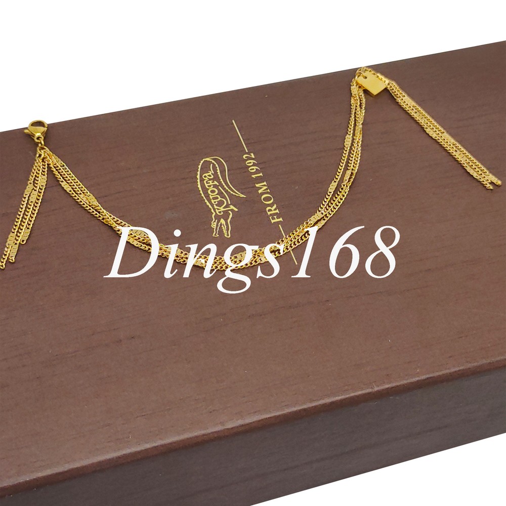 Product Description: This smooth 18K Yellow Gold Filled over 316L Stainless Steel Bracelet is 10 inch long and 1.5mm(0.06mm) wide. It is tarnish-resistant and hypoallergenic. It will not flake off, tarnish or discolor. It is covered under our 60-day 100% money-back guarantee. *** Free velvet gift pouch included. Metal 18K Yellow Gold Filled over 316L Stainless Steel Product Dimension Length: 6.5 inch; Width: 1.5mm (0.06 inch) *** Please always refer to the description for the measurement of the product. Please do not judge the size based on the picture on your screen. The product may look larger or smaller based on your screen size. Weight 3.5 gram Main Color Gold Product SKU E3061 G Metal Description: Gold filled jewelry is different from Gold Plated (GP)jewelry. Gold filled jewelry is made by heat and pressure bonding a layer (at least 25 micron thickness) of gold to some base metal core. It has all the great characteristics of solid gold jewelry. It does not flake off, tarnish or discolor. Gold filled jewelry is an economical alternative to solid gold. Gold plated is a method of covering another type of metal with a very thin, almost microscopic (usually 0.5-micron thick), film of pure gold by electroplating it. 18K gold contains 75% pure gold, while 14K contains 58.5% gold and 10K contains 41.7% gold. So 18K yellow gold has a deeper yellow hue than 14K or 10K. 18K rose gold is less blush-colored than 14K/10K. 18K white gold appears quite similar to 14K/10K white gold. Shipping Policy (U.S, APO, FPO, Puerto Rico, Virgin Islands) All products will be shipped from our warehouse in Morgan Hill, California, USA For USA buyers, we will ship your order by USPS (Postal Office) First Class Mail or Priority Mail (Please make your choice when you make payment). We ship within one working day once payment received. Payments received before 1:00PM will be shipped on the same day. We ship to all address, including physical address, P.O. Box address, Puerto Rico, Virgin Islands, Guam, APO, FPO etc. International Buyers We ship worldwide. Flat Rate shipping to all countries regardless of quantity. For packages of such small size, most countries usually do not charge importing tax. However, in case there is any in importing tax, Please Note: Import duties, taxes, and charges are not included in the item price or shipping cost. These charges are the buyer's responsibility. Please check with your country's customs office to determine what these additional costs will be prior to bidding or buying. Customs fees are normally charged by the shipping company or collected when you pick the item up. These fees are not additional shipping charges. We can not guarantee the exact delivery date for international orders. Customer Service & Return Policy We care about our valued buyers, if you have any questions, our Customer Service staffs will be very glad to help you. We try our best to reply to your emails as soon as possible, however, due to high volume of daily incoming emails and time zone difference, we may not be able to reply your emails immediately. You satisfaction is always our No. 1 concern. Our success is 100% based on your satisfaction and continuous support. No matter for whatever reason, if you are not 100% satisfied, you may always return the product for refund or exchange. Please e-mail us with a brief reason before returning a package. Feedback and Detailed Seller Ratings Dear buyers, we appreciate your business, if you are satisfied with our product and service, please leave us a positive feedback. Your recognition will make us more confident to develop business and serve you better. Our goal is to make sure you are a happy buyer and pleasant shopping with us. Please email us before leaving any 1 or 2 ratings, negative feedback or open any dispute. We understand the concerns and frustrations you might have, and will do our endeavor to resolve the issues. Please give us the opportunity to resolve any problem. For international buyers, when you rate the shipping time part please take international transit into consideration. Click Here for this week's Special Offers!