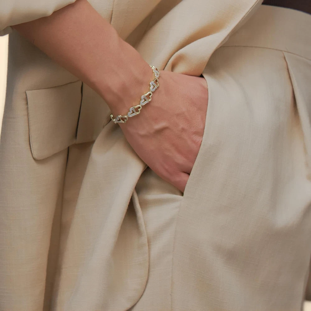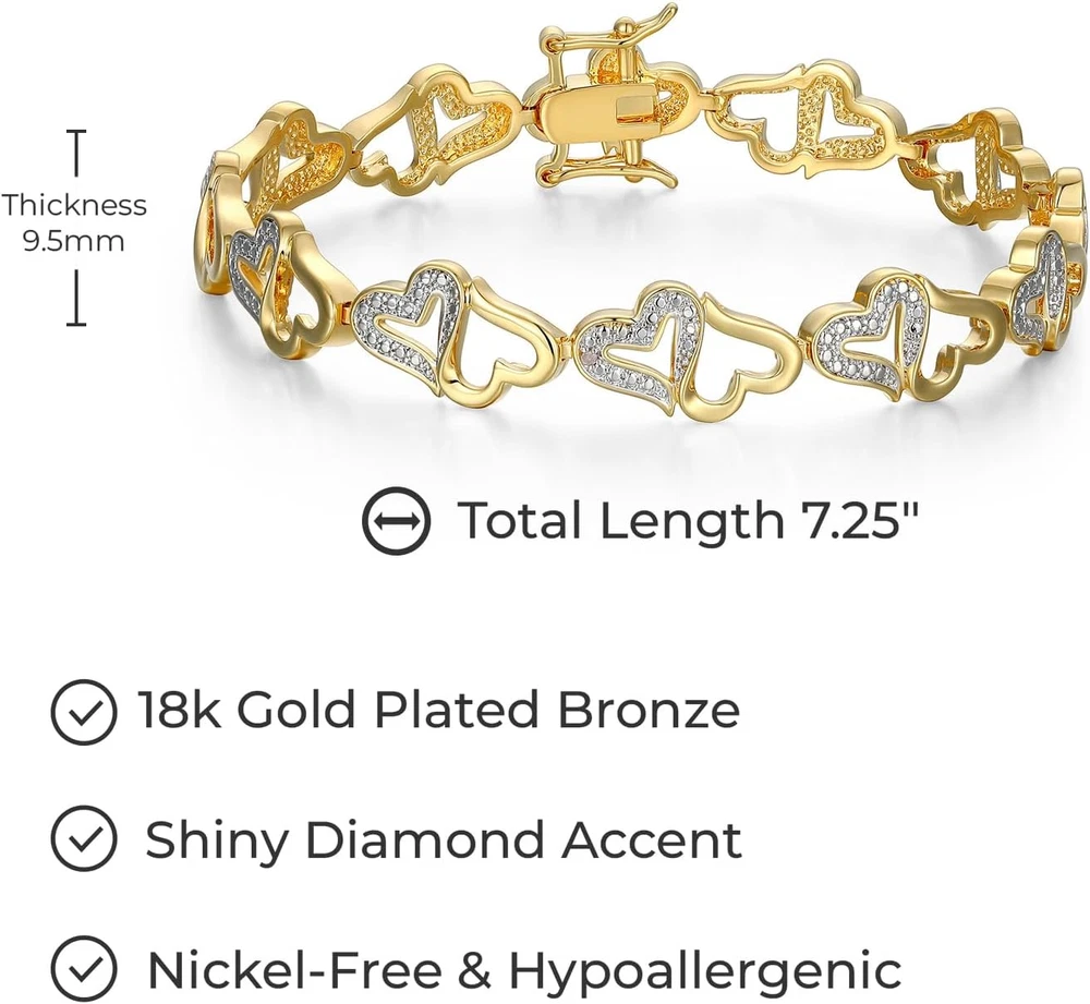 18K Gold Plated Bronze Diamond Accent Open Heart Bracelet, 7.25"