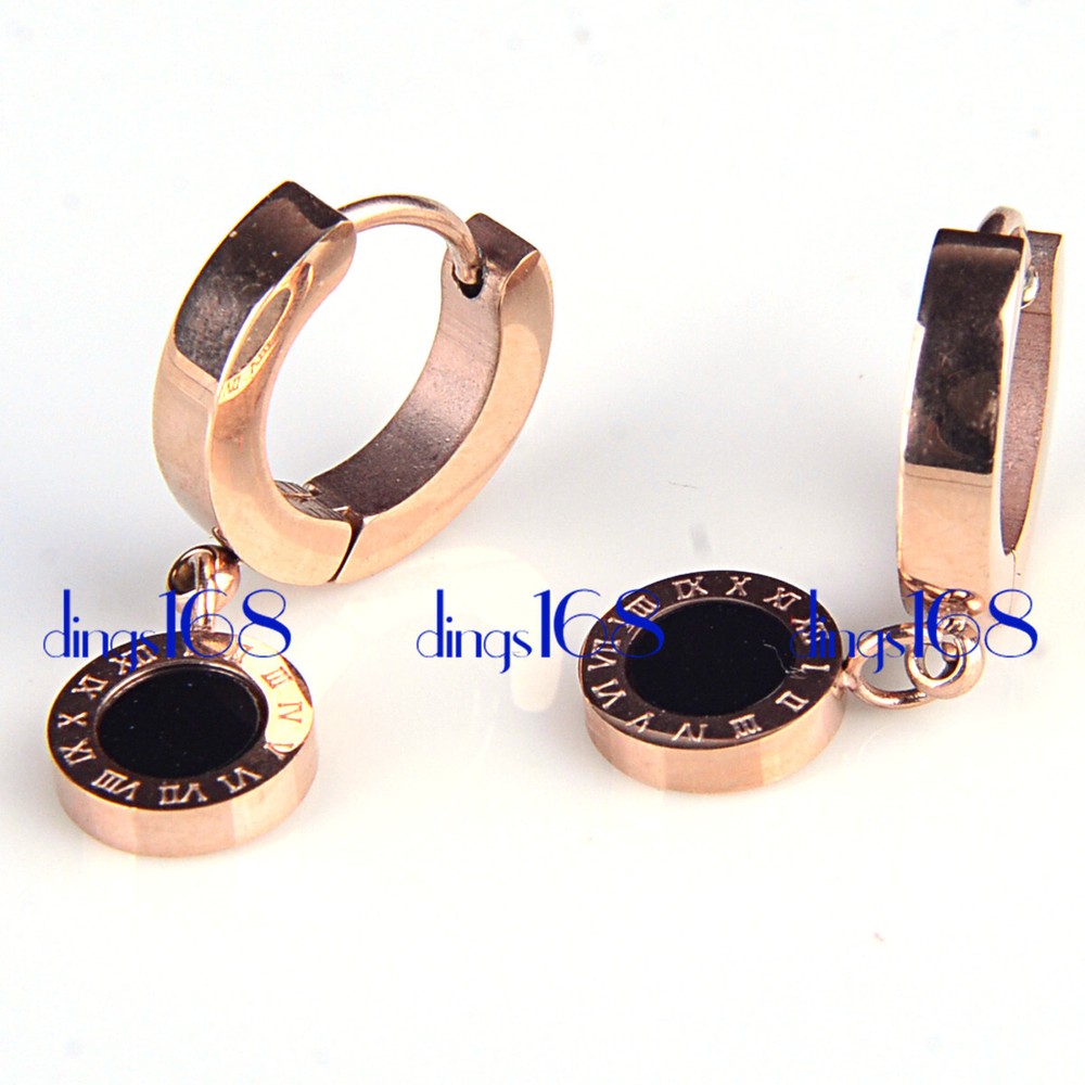 Product Description: This listing is for one pair of 18k rose gold filled hypoallergenic roman numeral acrylic huggie dangle ear. It is hypoallergenic, nickel-free and cadmium-free. This timeless essential is the perfect gift idea for anyone - your significant other, family, friends, or for yourself. Give someone special luxurious fine jewelry to rock from day to night with style. 100% satisfaction guarantee! Quick Shipping from California. *** Free gift box included. Metal 18K Rose Gold Filled Product Dimension 30mm/1.18 inch Long * 14mm/0.55 inch wide Top Hoop: 14mm * 14mm ; 3mm thick; Black Acrylic disc: 12mm * 12mm; 2mm thick *** Please always refer to the description for the measurement of the product. Please do not judge the size based on the picture on your screen. The product may look larger or smaller based on your screen size. Weight 5.6 gram in total (2.8 gram each) Main Color Multi-Color Product SKU A3E Metal Description: Gold filled jewelry is different from Gold Plated (GP)jewelry. Gold filled jewelry is made by heat and pressure bonding a layer (at least 25 micron thickness) of gold to some base metal core. It has all the great characteristics of solid gold jewelry. It does not flake off, tarnish or discolor. Gold filled jewelry is an economical alternative to solid gold. Gold plated is a method of covering another type of metal with a very thin, almost microscopic (usually 0.5-micron thick), film of pure gold by electroplating it. 18K gold contains 75% pure gold, while 14K contains 58.5% gold and 10K contains 41.7% gold. So 18K yellow gold has a deeper yellow hue than 14K or 10K. 18K rose gold is less blush-colored than 14K/10K. 18K white gold appears quite similar to 14K/10K white gold. Shipping Policy (U.S, APO, FPO, Puerto Rico, Virgin Islands) All products will be shipped from our warehouse in Morgan Hill, California, USA For USA buyers, we will ship your order by USPS (Postal Office) First Class Mail or Priority Mail (Please make your choice when you make payment). We ship within one working day once payment received. Payments received before 1:00PM will be shipped on the same day. We ship to all address, including physical address, P.O. Box address, Puerto Rico, Virgin Islands, Guam, APO, FPO etc. International Buyers We ship worldwide. Flat Rate shipping to all countries regardless of quantity. For packages of such small size, most countries usually do not charge importing tax. However, in case there is any in importing tax, Please Note: Import duties, taxes, and charges are not included in the item price or shipping cost. These charges are the buyer's responsibility. Please check with your country's customs office to determine what these additional costs will be prior to bidding or buying. Customs fees are normally charged by the shipping company or collected when you pick the item up. These fees are not additional shipping charges. We can not guarantee the exact delivery date for international orders. Customer Service & Return Policy We care about our valued buyers, if you have any questions, our Customer Service staffs will be very glad to help you. We try our best to reply to your emails as soon as possible, however, due to high volume of daily incoming emails and time zone difference, we may not be able to reply your emails immediately. You satisfaction is always our No. 1 concern. Our success is 100% based on your satisfaction and continuous support. No matter for whatever reason, if you are not 100% satisfied, you may always return the product for refund or exchange. Please e-mail us with a brief reason before returning a package. Feedback and Detailed Seller Ratings Dear buyers, we appreciate your business, if you are satisfied with our product and service, please leave us a positive feedback. Your recognition will make us more confident to develop business and serve you better. Our goal is to make sure you are a happy buyer and pleasant shopping with us. Please email us before leaving any 1 or 2 ratings, negative feedback or open any dispute. We understand the concerns and frustrations you might have, and will do our endeavor to resolve the issues. Please give us the opportunity to resolve any problem. For international buyers, when you rate the shipping time part please take international transit into consideration. Click Here for this week's Special Offers!