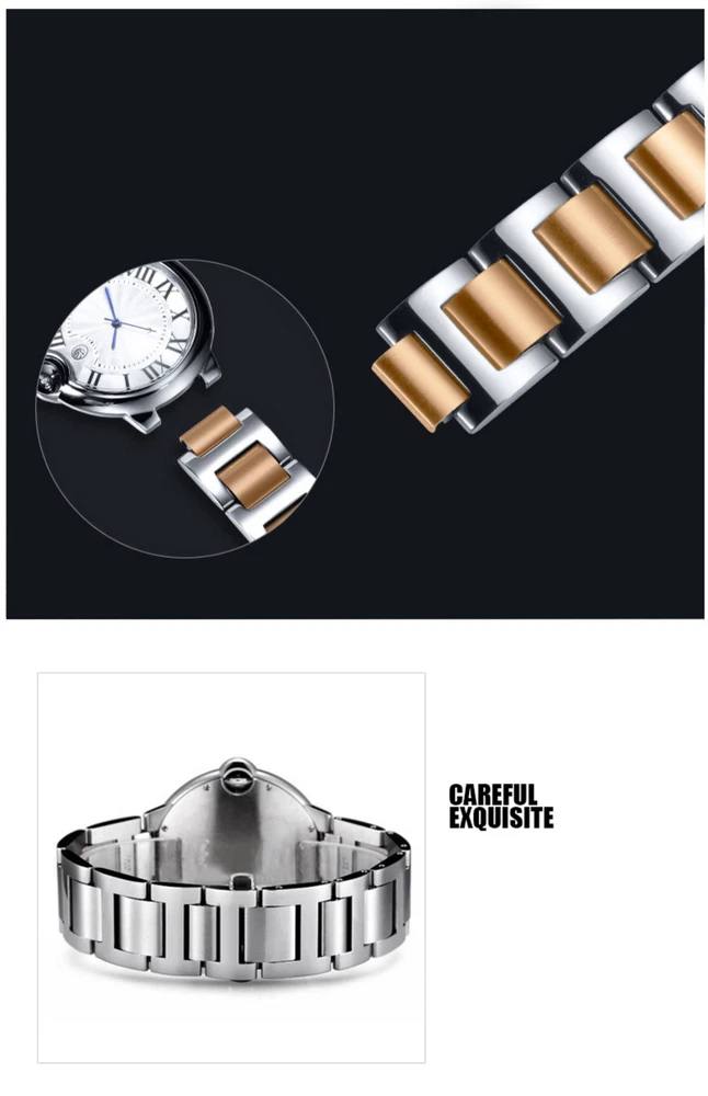 18MM WATCH BAND BRACELET FOR 36MM CARTIER BALLON BLEU SOLID 316L STAINLESS STEEL Product name: suitable for blue balloon series mouse strap Strap material: Solid 316L stainless steel Buckle material: Solid 316L stainless steel Strap Size:18mm*11mm Clasp type: folding buckle Note: Due to the light, there is a little error between the real object and the picture If you place an order, we will ship it quickly Package including : 1 X Watch band with buckle Note : Also available in 14mm, 16mm, 18mm, 20mm, 22mm which is listed in our store for you to purchase. Payment Delivery details Terms Contact us About feedback Payment All payments should be received within 7 working days after auction has ended. Non-paying bidders will be reported to ebay. If you can not pay in time, please contact us. Delivery details Item will be shipped out within 48 hours upon receipt of your cleared payment. We can not ship on Sundays and other public holidays. International Buyers Please Note: Import duties, taxes and charges are not included in the item price or shipping charges. These charges are the buyer's responsibility. Please check with your countrys customs office to determine what these additional costs will be prior to bidding/buying. Please make sure your address in paypal is correct. we will only follow your address listed in the Paypal payment for the shipment. Combine shipment is not allowed. If you want to combine all the items together, you should still pay for all of the shipping, insurance and handling fee! Terms 60 Days Limited Warranty: Warranty is for EXCHANGE ONLY. All products come with a 60 days limited warranty against manufacturer's defects. Buyer could choose exchange to same item or apply store credit to other items in our store. Exchange will be processed after we received return. Return/Refunds: 1. We only accept refund request for un-opened or un-used item, buyer has to return item in original condition and retail package within 30 day for refund(item price minus 20% restock fee). The shipping charge is not refundable. Refund will be processed after we received return. 2. You have 7 days to contact us and 10 days to return it from the date it was received. If this item is in your possession more than 7 days, it is considered used and we will not issue you a refund or replacement. There are NO EXCEPTIONS! 3.All returned items must be in the original packaging and you must provide us with the shipping tracking number, specific reason for the return, and your eBay ID. 4. Return shipping is to be paid by the Buyer Contact us We try our best to reply to your emails as soon as possible, however, due to high volume of daily incoming emails and time zone difference, we may not be able to reply your emails immediately. If you have any questions please contact us before bidding! Thanks. Business Hours: Mon-Fri 9:00-6:00 ET Sat 9:00-12.00 ET Sunday off About feedback We leave positive automatically by our system after received positive feedback. Please contact us if you are going to leave us a neutral or negative feedback, we will try our best to solve the problem.