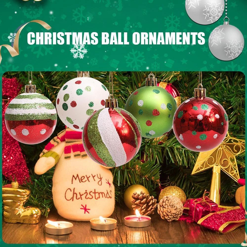 Description Description&Preview shipping&policy Description: Material: Plastic Size: 6 cm / 2.34" Color: Red + Green + White 1. High-Quality Material: Our Christmas balls are made of high-quality plastic, lightweight material that can easily hang on the Christmas tree without worrying about bending branches. They are ideal Christmas decorations. 2. Unique Design: The shiny Christmas balls come in red and green as the main colors, bright and exquisite in design, more fitting to the Christmas theme, making the holiday more vibrant. The classic swirl candy design and polka dots look beautiful and can be paired well with other decorations. 3. Product List: You will receive 18 2.4-inch Christmas balls in red, green, and white, with 6 different styles, 3 of each style. With plenty of quantity and styles to choose from, you can better decorate for Christmas and create a festive atmosphere. 4. Easy to Use: Each plastic Christmas ball has a string attached to the top for easy hanging on the Christmas tree or other desired decorations. The packaging also includes 3 clear plastic boxes for convenient storage when the balls are not needed. 5. Versatile Use: The Christmas balls are not only suitable for Christmas decoration, but also for home decoration, party decoration, holiday gifts, and more. They can also be given as gifts to family and friends to let them enjoy the holiday joy and serve multiple purposes. Package includes: 18 * Christmas decorative balls Preview: Thank you for your purchase Problems? You can follow below process to contact us. There is a time zone difference,but we will do our best to quickly response to your questions: Shipping ● We will arrange shipping for you within 24 Hours after payment cleared except the holidays. ● We always send the item to the address you give us on Payoneer to ensure the security of the item. If you have changed your address, or want us to ship to another address, please change to the new address when you pay us with Payoneer, otherwise we will not be responsible if the package is lost. Payments We accepts Payoneer only If you have any questions about the payment,please contact us through eBay message. Import Duties In case some duty is due Upon delivery, it is your responsibility to meet that expense and this may cause delays to delivery schedule and you may have to pickup goods at the customs office. Terms & Conditions By bidding on this item,the Buyer agrees to all of the terms and conditions as outlined in this listing .please ensure to read and agree to All eBay terms and Conditions before bidding. All pictures are for illustration purpose only and Colours may vary slightly. Our store obeys all eBay Rules and Policies. Returns Policy To Return an item you must contact us and take photos of your item to clearly show any damage or unusual aspects of it. Approved returns will be subject to inspection on arrival. Items must be returned in original condition with all original packaging. All shipping and handing charges are non-refundable Return delivery costs are the responsibility of the buyer. We will cover the cost if sending replacement/repaired items. Within 7 days after receiving your products, we offers a no-hassle 7 day exchange/replace only if your items are found to be defective by manufacturer.