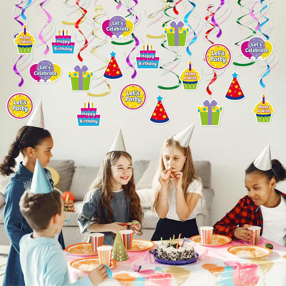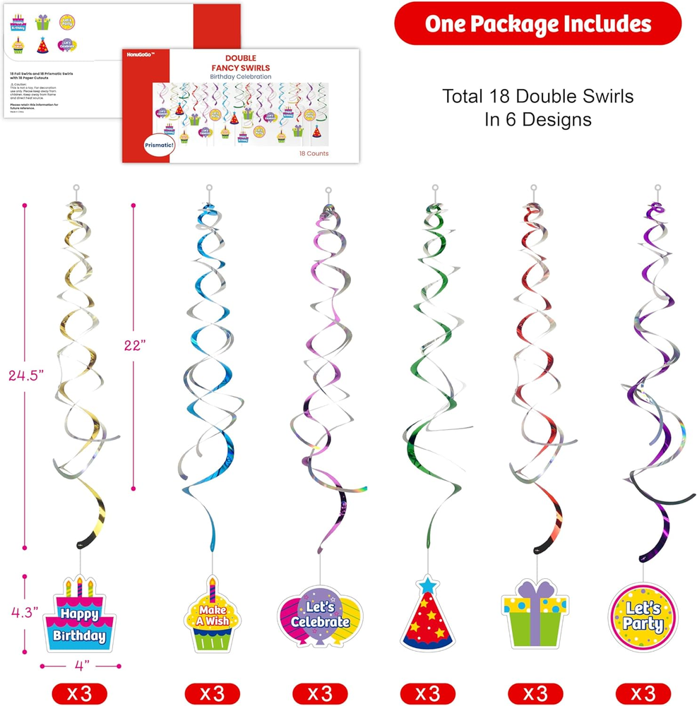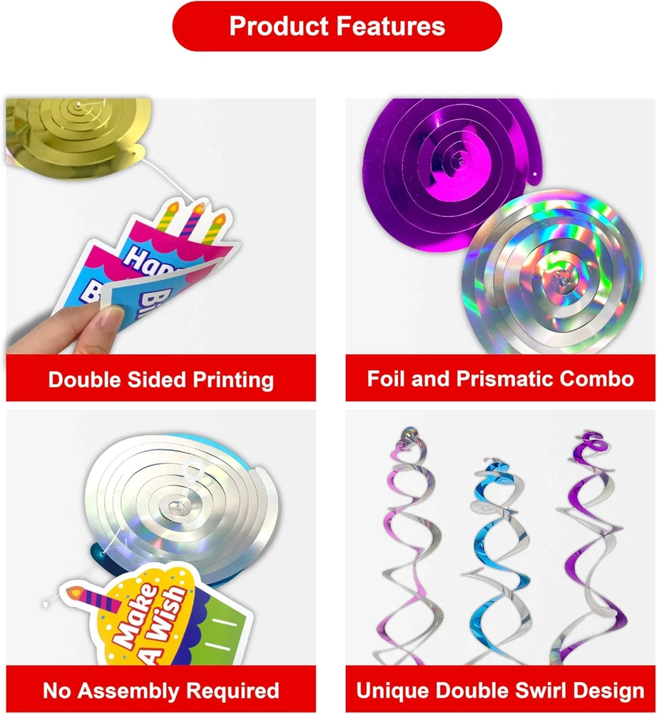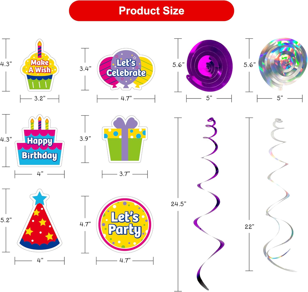 Store New Arrivals Add to Favorite View Feedback Contact Fast deliveries to the customer's home Quality customer service John Make the customers happy! 18Pcs Birthday Party Hanging Decorations - Colorful Swirl Streamers with "Happy Birthday," "Let'S Celebrate," & "Make a Wish" Signs | Perfect for Parties, Birthdays, and Celebrations Description ❤️ Vibrant and Double-Sided Design: Add a lively and colorful touch to your celebration with this 18-piece Double Swirl Hanging Decoration Set. Featuring bold double-sided prints and six charming designs, including cupcakes, gifts, and party hats, it’s a delightful way to enhance the festive atmosphere. 💛 Durable and Eye-Catching Materials: Crafted from high-quality foil and prismatic materials, these lightweight yet sturdy swirls reflect light beautifully, adding a subtle shine to your party decor. Suitable for various festive occasions. 💚 Easy to Use: Designed for convenience, the pre-assembled swirls come with included hooks, making setup straightforward. They can be hung effortlessly on ceilings, doorways, or windows, saving time and effort during your party preparations. 💙 Versatile for All Celebrations: Whether it’s a birthday, anniversary, or baby shower, these decorations complement a variety of themes. Their vibrant colors and holographic designs add a cheerful and welcoming vibe to any event. 💜 Comprehensive Party Set: This set offers 18 Double Swirls in six unique designs, with lengths up to 24.5 inches. The combination of playful prints and holographic shine makes them a fun and versatile addition to your decorations, helping create memorable moments. 🧡For Optimal Storage:Keep decorative items in a dry, well-ventilated space, away from direct sunlight. Extended exposure to excessive dryness or UV rays may lead to fading, warping, or deterioration of materials. Product description Vibrant Birthday Swirls for Every Celebration with Friends! This party set features 18 double swirls in six designs, each up to 24.5 inches, with playful prints and holographic shine for a fun and versatile decoration. Distinctive Double Spiral Design The unique double spiral design, made from premium foil and prismatic materials, reflects light beautifully, adding shine and a festive touch to your decorations. What's In the Box This set features 18 double swirls in six unique designs, with lengths up to 24.5 inches. Ready-to-Use This set comes pre-assembled, so no DIY is required. Simply unpack and enjoy instant decoration for your event. Package Dimensions 12.52 x 6.1 x 0.71 inches; 8.15 ounces ABOUT US We offer the best prices around on high quality products. Our E-store includes media such as books, movies, music and games while offering electronics, toys, sporting apparel, clothing, tools, general home, garden items and more. SHIPPING We are always working hard to ensure your package arrives as soon as possible. Please understand that some factors like weather, high postal traffic, and the performance of shipping companies are outside of our control. We offer free shipping to the lower 48 states and ship within 2 business days of payment, usually sooner. We do not accept P.O. Boxes. Please provide a physical address. For shipping outside of the continental USA, we only use eBay's Global Shipping Program. The item is shipped to KY and then sent to the rest of the world. International customers are responsible for all duties and taxes. Continue to 'check out' to calculate costs for shipping the item to your country. Messages regarding eBay's Global Shipping Program MUST be directed at eBay EXCLUSIVELY. RETURNS We offer a 30-Day Return Policy on items in which you are not completely satisfied with. You have the option of a full-refund or an exchange of the item. No returns are available on items shipped outside of the USA PAYMENT We accept PayPal. CONTACT US This page content is yet to come Please ad us to your favorite seller and visit again later Thank You CUSTOMER SATISFACTION We try our very best to make sure every customer is completely satisfied. If there's a problem, message us! We're happy to help. WE ACCEPT