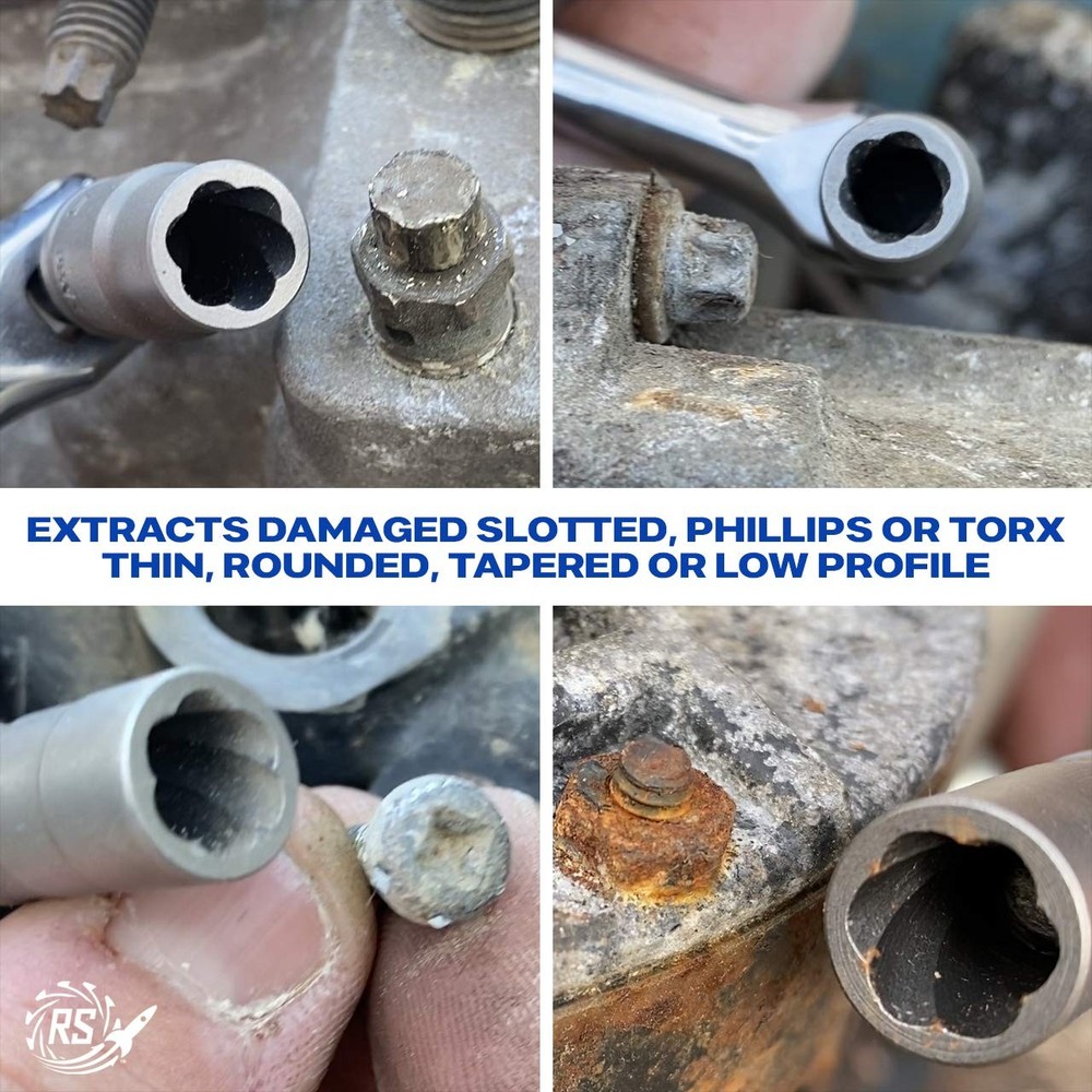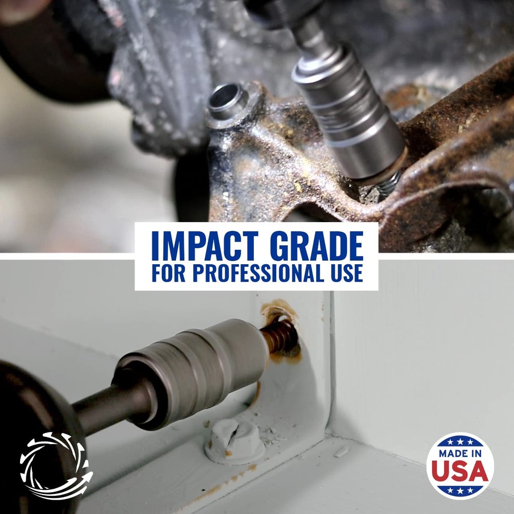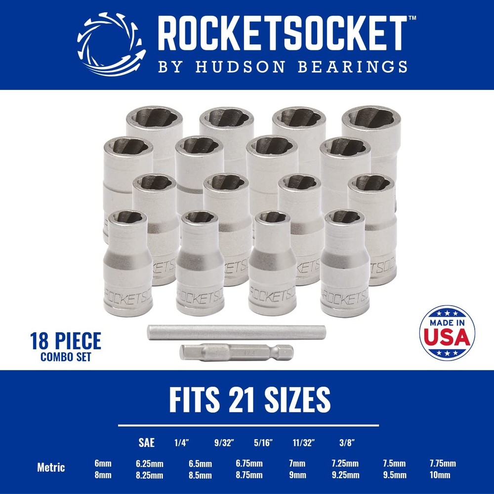 is the original and best damaged fastener removal socket. Designed, engineered and manufactured in the USA with American Drawn Steel. features RAZORGRIP Extraction Technology with helical teeth that grip and don't let go to easily and quickly remove frozen, rusted, stripped, or rounded-off nuts, bolts and screws MADE IN AMERICA WITH AMERICAN DRAWN STEEL - Every impact grade extractor socket is designed, engineered and manufactured in the USA with American Drawn Steel to meet or exceed all professional tool standards. Don't be fooled by quality claims from cheap "imported" extractor sockets. Our sockets extract nuts, bolts & screws that are rusted, worn, painted over even fully stripped. Always trust the original and the best, Trust ! REMOVES STRIPPED, DAMAGED & BROKEN FASTENERS – Every is precision engineered to easily extract damaged bolts, nuts and screws even if they are stripped, rusted, rounded-off or frozen. Our Socket sets with RAZORGRIP provide excellent torque, the more you turn, the tighter the socket grips. The set comes in a heavy duty blow molded case that keeps all the sockets in place. You can depend on quality to make every job faster, safer and a lot less frustrating! SUPERIOR REMOVAL TECHNOLOGY – Only has proven RAZORGRIP Extraction Technology with helical teeth that grip and won’t let go. With bolt extractors make sure that you’ll be able to continue working on even the most challenging projects. With proven RAZORGRIP Extraction Technology, the more you turn, the more torque is applied and the tighter the socket grips! That means no more slipping and no busted knuckles, just fast and safe removals everytime. IMPACT STRENGTH – Because is designed, manufactured and engineered to be used with your favorite power tool or impact wrench we include a convenient 1/4" hex adapter with this set. This 18 piece set uses a 1/4" drive and covers 21 of the most used and requested standard (SAE) and metric (mm) sizes. LIMITED LIFETIME WARRANTY Not all lifetime warranties are the same despite the claims. uses only the highest quality American materials and precision tooling so we can offer a true LIMITED LIFETIME WARRANTY on every socket and socket set we sell! We are committed to providing the most reliable products with the best service to each and every customer. If you ever have a problem with any item, just contact us through the Amazon platform.