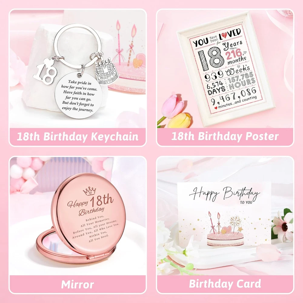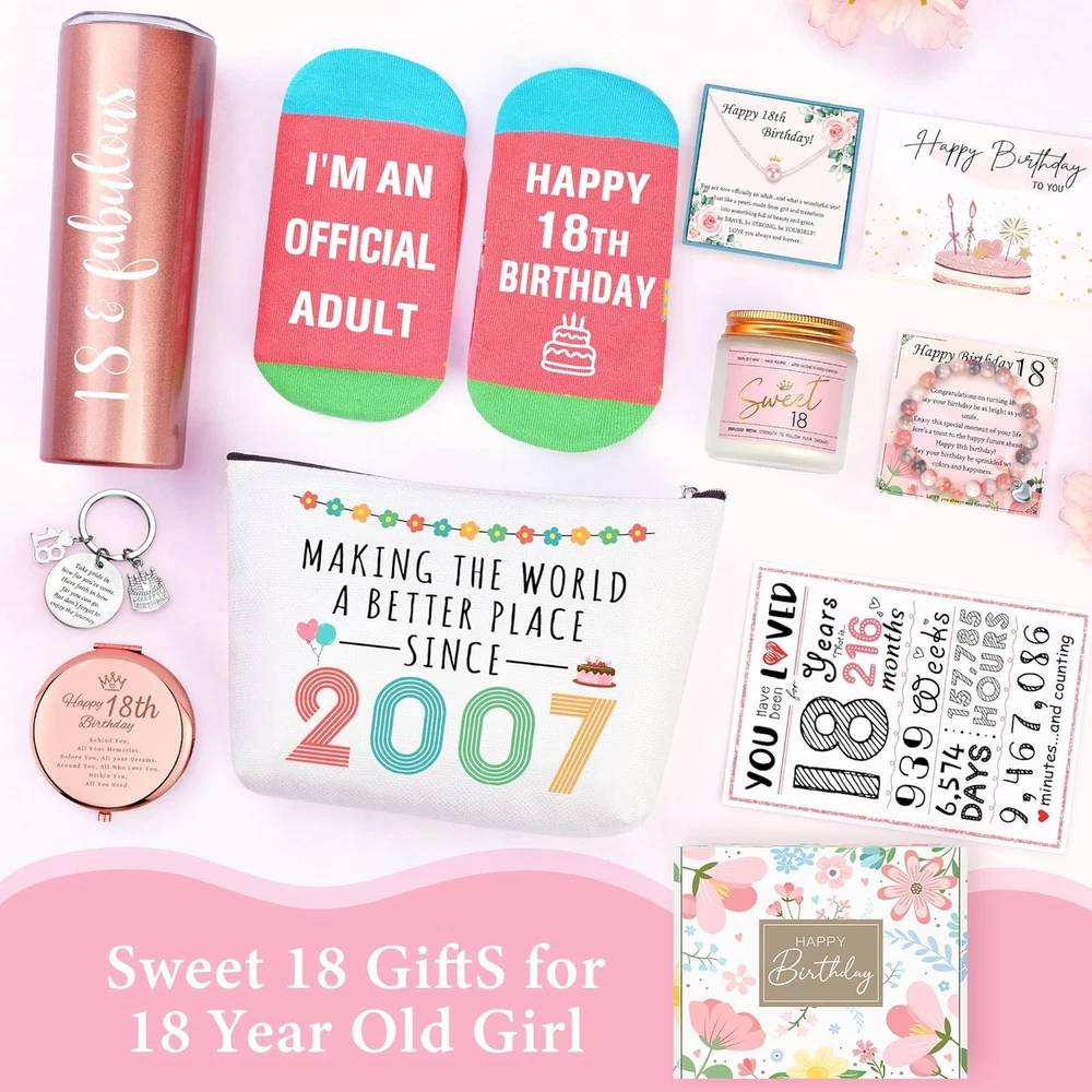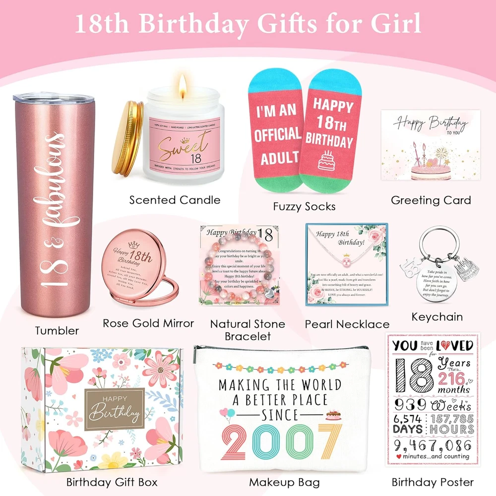 Store New Arrivals Add to Favorite View Feedback Contact Fast deliveries to the customer's home Quality customer service John Make the customers happy! 18Th Birthday Gifts for Girls Trendy 18 Year Old Girl Birthday Gifts for 18 Year Old Girl Gift Ideas Unique Age 18 Gift for Female Teen Girls Her Daughter Happy 18Th Decoration Presents with Tumbler Description Birthday Gifts for 18 Year Old Girls: Turning 18 is an exciting milestone, symbolizing the transition into adulthood and new beginnings! Celebrate this special moment with our beautifully curated 18th Birthday Gift Set, designed to bring joy and unforgettable memories to your daughter, niece, sister, or best friend. 18 Years Old Gift Ideas: This 18th Birthday Gift Box includes 10 stylish items, each thoughtfully designed to celebrate the excitement and positivity of stepping into adulthood: 1× 20oz rose gold tumbler, 1× natural stone bracelet, 1× Sweet 18 decoration poster, 1× Sweet 18 gift bag, 1× cozy birthday socks, 1× scented candle, 1× compact mirror, 1× keychain, 1× heartfelt birthday card, 1× elegant gift box. Happy 18th Birthday Decorations for Women: Celebrate her milestone 18th birthday with this beautifully curated gift basket! Imagine her relaxing in a cozy chair, slipping on the soft, warm socks, lighting the soothing scented candle, and sipping her favorite drink. As she reads the heartfelt messages on the birthday card and poster, she feels deeply cherished and loved. With the elegant bracelet on her wrist and the charming keychain in hand, she smiles confidently at her reflection in the compact mirror. A Meaningful Keepsake to Treasure: From "18 and Fabulous" to "Making the World a Better Place Since 2007," this gift set is more than just a collection of items—it’s a heartfelt celebration of her journey into adulthood. Perfect for birthdays or as a cherished keepsake, this thoughtful gift is ideal for creating unforgettable memories and sharing joyful moments on social media to celebrate her special day in style. Cool 18th Birthday Gifts Are Ready: Each item in this 18th Birthday Gift Box is elegantly packaged in a premium gift box, saving you time and effort—no extra wrapping required! If you have any concerns, our dedicated customer service team is here to assist within 24 hours, ensuring your thoughtful gift makes her 18th birthday truly special. Product description Unique 18 Year Old Girl Birthday Gift Still struggling to find the perfect birthday gift for a 18-year-old girl? Our unique and meaningful 18th birthday gift set is designed to celebrate her stepping into a new chapter of adult! "18 & Fabulous" 20oz Tumbler 18/8 Food-Grade stainless steel. Double-Wall vacuum insulation. Keep beverage temperature up to 24h for cold and 12h for hot. Suitable for both dishwasher and microwave. “18 & Fabulous” printed design, elegant and fashionable. Funny Canvas Bag Made of high-quality canvas fabric, durable and sturdy. Features a sturdy zipper with anti-slip design for smooth use. Spacious design to hold all daily essentials. Double-sided printing with vibrant colors that won’t fade. Moderate size, compact and lightweight, making it easy to carry on the go. Soy Wax Candle Made from 100% natural soy wax and premium essential oils, it provides a long-lasting fragrance, adding a unique sense of ceremony to the milestone moments of a 18-year-old girl’s growth. Rose Gold Mirror Exquisite engraving with a dual mirror design—one side magnifying. It is a motivational mirror designed for girls, offering daily encouragement! 18th Birthday Poster The time-themed composition of the 18-year-old design conveys the preciousness of every moment of her existence. Exquisite Bracelet Inlaid with pink gemstones and features a unique heart-shaped charm design, making it both beautiful and full of positive energy. Cute Cotton Socks Printing adorable patterns and playful text, these socks made with highly elastic microfiber, offering ultimate comfort and warmth for her. Stainless Steel Keychain This charm necklace, with a round charm, "18" charm, and cake charm, symbolizes blessings for her 18th year. A precious keepsake. Reusability Reusable Unit Count 10.0 Count Style 18th birthday girl style Number of Items 10 Color 18th birthday decorations for girls pink Included Components Keychain Material Stainless Steel Capacity 1.3 Pounds Item Weight 1.81 pounds Shape Cylindrical Material Feature Insulated Item model number 18th birthday gifts ideas Special Feature Break Resistant Product Dimensions 4"W x 8"H Product Care Instructions 18 year old girl birthday decorations Size 18th birthday girl ABOUT US We offer the best prices around on high quality products. Our E-store includes media such as books, movies, music and games while offering electronics, toys, sporting apparel, clothing, tools, general home, garden items and more. SHIPPING We are always working hard to ensure your package arrives as soon as possible. Please understand that some factors like weather, high postal traffic, and the performance of shipping companies are outside of our control. We offer free shipping to the lower 48 states and ship within 2 business days of payment, usually sooner. We do not accept P.O. Boxes. Please provide a physical address. For shipping outside of the continental USA, we only use eBay's Global Shipping Program. The item is shipped to KY and then sent to the rest of the world. International customers are responsible for all duties and taxes. Continue to 'check out' to calculate costs for shipping the item to your country. Messages regarding eBay's Global Shipping Program MUST be directed at eBay EXCLUSIVELY. RETURNS We offer a 30-Day Return Policy on items in which you are not completely satisfied with. You have the option of a full-refund or an exchange of the item. No returns are available on items shipped outside of the USA PAYMENT We accept PayPal. CONTACT US This page content is yet to come Please ad us to your favorite s