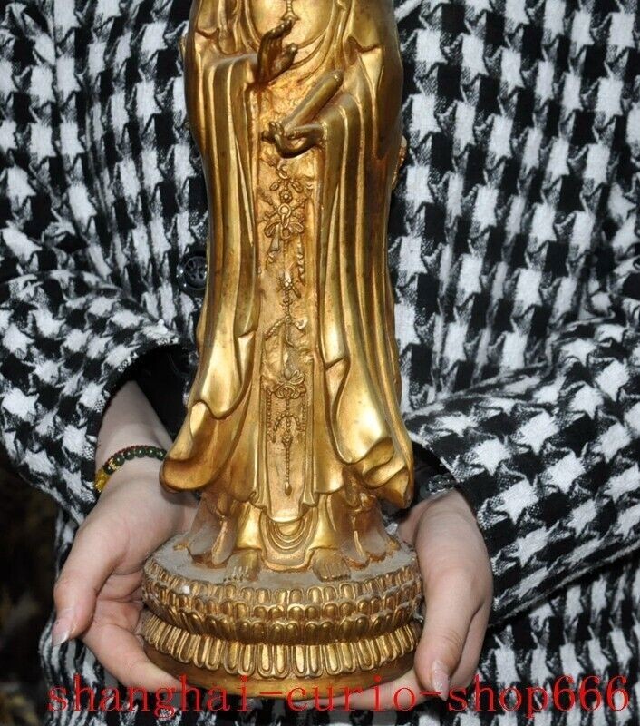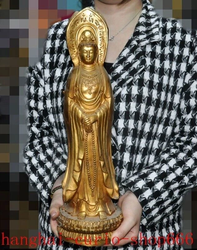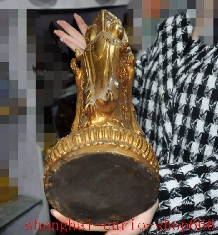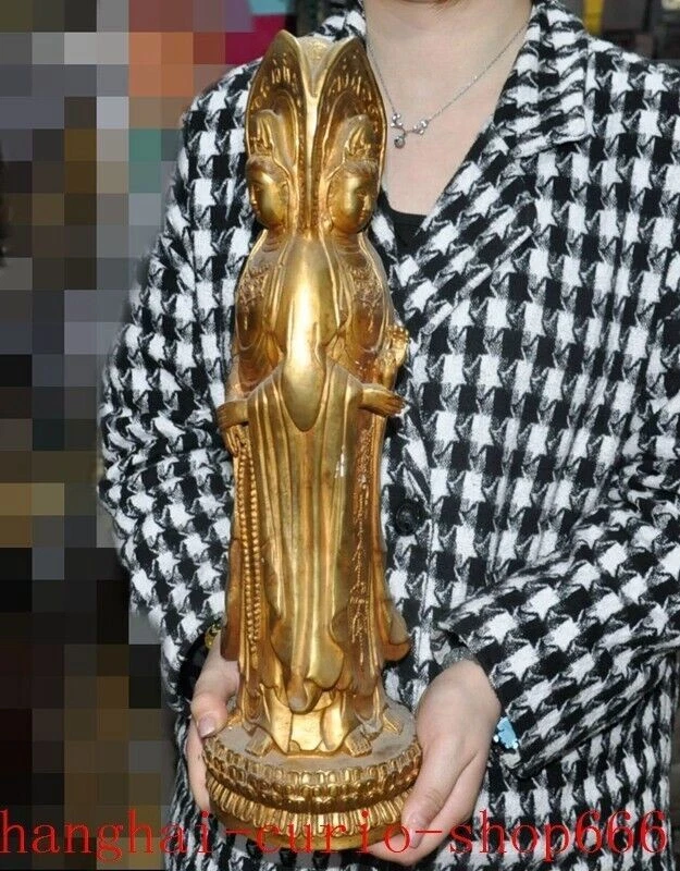 18"Tibet temple Bronze gilt 3 Sides Tara Kwan-Yin GuanYin Goddess Buddha statue Size : Height : 18 inch . Long : 5.4 inch . breadth : 5.4 inch Size : Height : 45 CM . Long : 13.5 CM . breadth : 13.5 CM Weight : 4.8 KG ----i ncluded the weight of packing materials Materials : Bronze gilt Condition : Good condition Origin : China