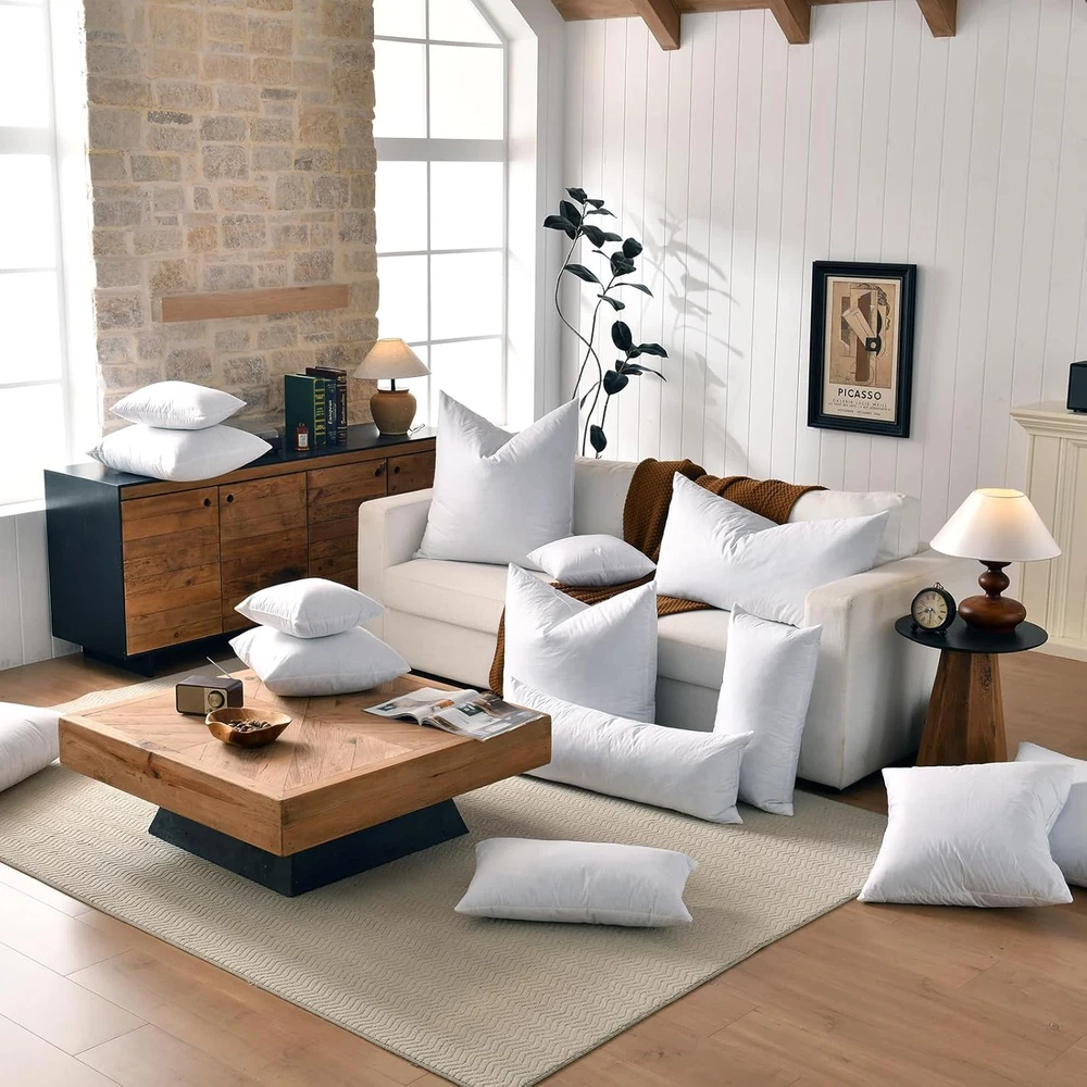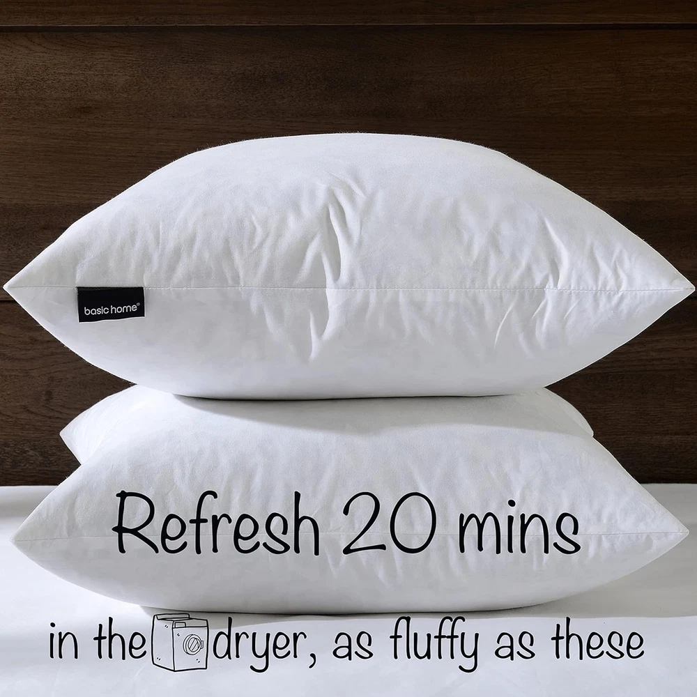 26oz feather and down filled in a durable cotton fabric with downproof stitch preventing feathers from poking out and full pillow from corner to corner. 18x18 square throw pillow inserts, set of 2, use as an insert in decorative shams/ Couch shams/Sofa pillows/ Bedroom shams. Product Description You know what you want The perfect insert is the one that’s perfectly suited to your body shape and your posture. You’ll know when you’ve found it. Because from the moment you lean on, you’ll feel your muscles relax and your mind grow quiet and you wouldn’t want to move anywhere else. Softness than firmness It's more softness than firmness. It can be fluffy but can't be very support if your are looking for strong supportive pillow. We prefer our shredded memory foam filled pillows for great support. Premium cotton fabirc We’ve been using the finest cotton fabric and materials that you can be sure every pillow inserts is crafted with experience and passion, leaving you to sit back and relax. Various sizes These feather down filled inserts are available in 11 different sizes to meet your decorating needs. You’ll love the thoughts that these feather pillow fillers which bring an added level of luxury to your decor scape. Care Instructions The pillows are shipped in vacumm seal, and this may cause smell when you open it. Please put the pillows to the dryer for about 20 mins after receiving. It will help fluffy and fresh. For best results for your covers. Pillow insert is better to order 2 sizes up to provide a plump and full pillow from corner to corner. Feathers is naturally absorbent and please leave it out in the sun for a few hours if it is mainly used in moist conditions. The sunlight, heat, and fresh air will help make your pillow fresher.
