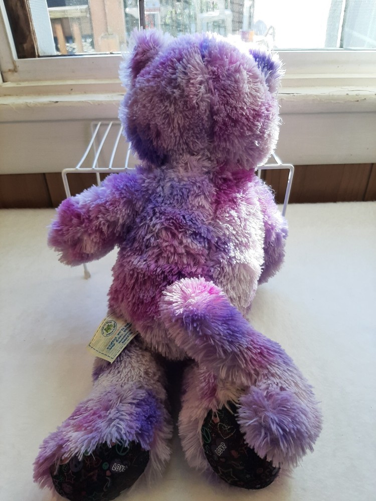 Build A Bear 18” Peace Tie-Dye Purple Kitty Cat BFF Stuffed Plush Animal Toy BAB In good pre-owned condition may show signs of wear from use/handling/storage/display. Please view all pics for condition/details/flaws/issues. SOLD AS IS There is sticker residue on the tag also has a loose string on his nose & minor ones on the fur please see photos for details. There is/maybe marks/spots/dirt/debris please see photos 1-18, there is/maybe paint loss/sticker loss please see photos 1-18, there is lite discoloration please see photos 1-18, there are surface scratches to item please see photos 1-18, please see all photos for condition/issues/details. II