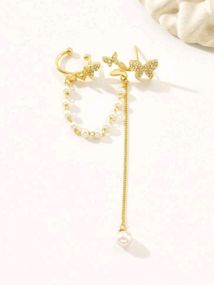 Dare to stand out with this 18k gold-plated Elegant Tassel Butterfly Pearl Cuff Stud Earring—a masterpiece of unique design and high-end craftsmanship. Featuring a delicate butterfly perched amidst cascading pearl tassels, this earring embodies movement, grace, and luxury in every detail. Designed to wrap elegantly around your ear, the cuff stud style ensures a secure fit while making a bold statement. It’s not just jewelry—it’s a conversation starter, perfect for elevating evening ensembles or adding a touch of magic to everyday looks. Step into the extraordinary and let your style take flight. Add this one-of-a-kind treasure to your collection today and make every moment a statement.