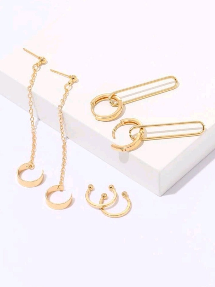 Transform your jewelry collection with our stunning 6pcs 18K Gold Plated Creative Chain Decor Geometric Earrings! These eye-catching earrings are designed for the modern woman who loves to make a statement while keeping it chic and sophisticated. Each piece in this versatile set features unique geometric shapes and intricate chain designs, perfect for adding a touch of contemporary elegance to any outfit. Whether you’re dressing up for a night out or elevating your everyday look, these earrings are perfect for every occasion. Mix and match them to create your own unique style, or wear them individually for a subtle yet stylish accent. Crafted with high-quality materials and plated in luxurious 18K gold, these earrings are not only stunning but also durable and designed to last. Step out in confidence and showcase your individuality with this fabulous earring set. Don’t miss out on the chance to enhance your daily decorations—grab your set today and let your style shine!