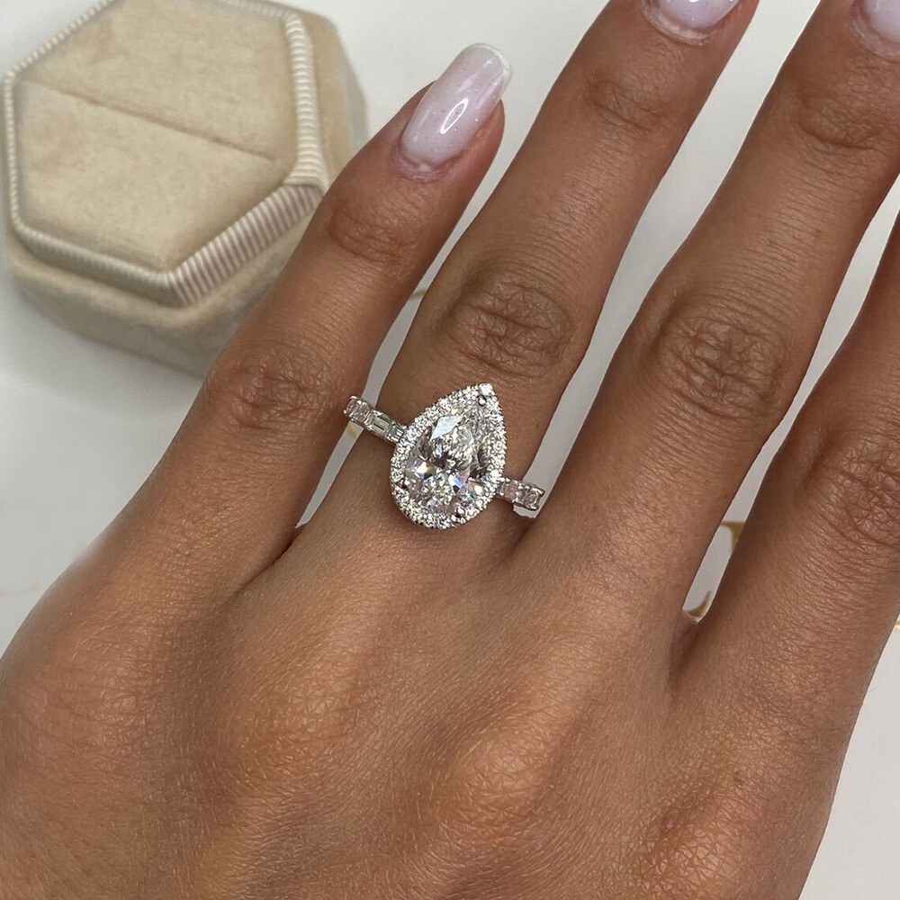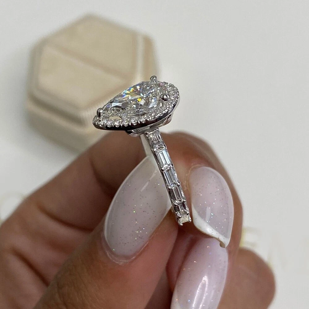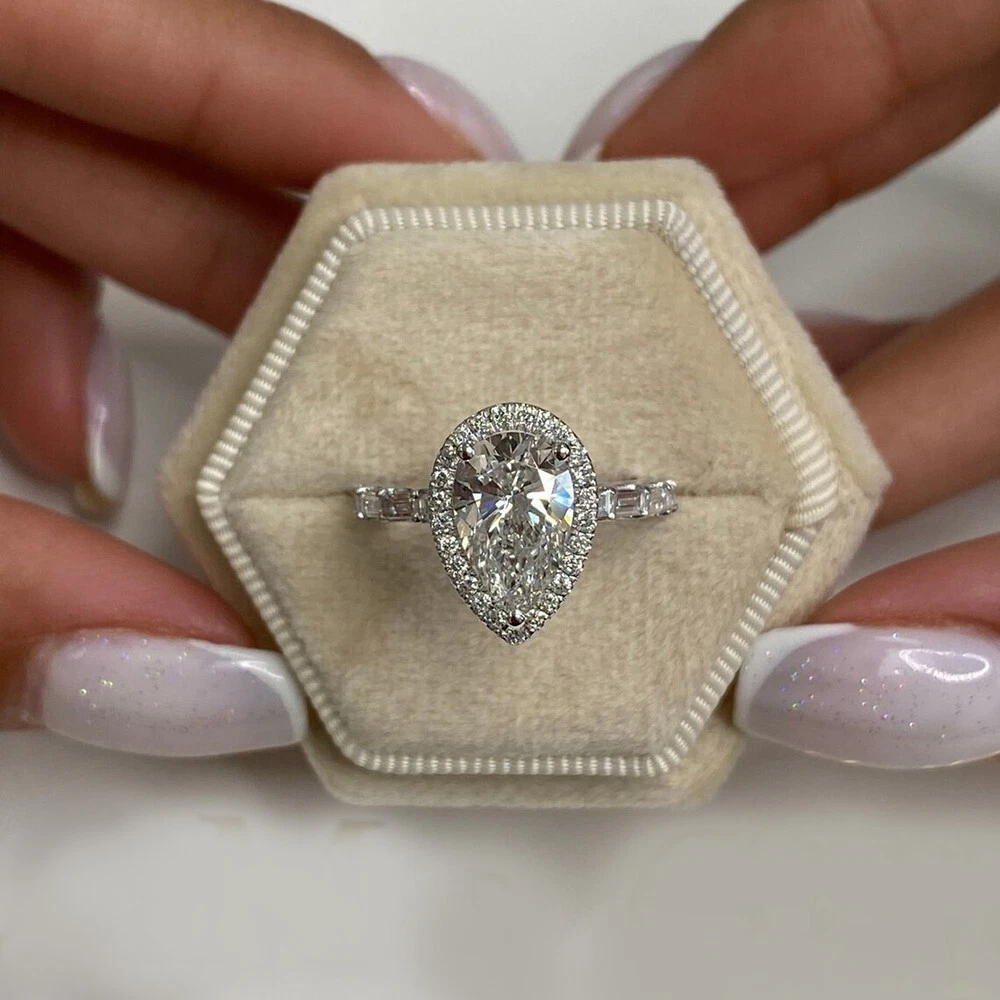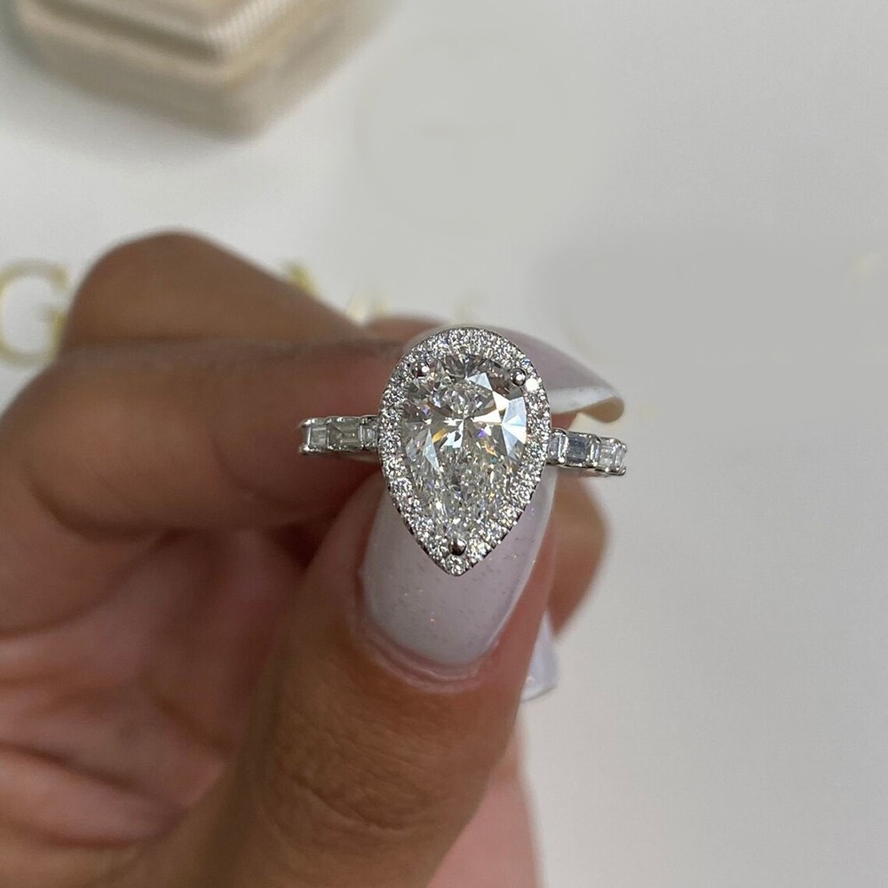 This 18k white gold engagement ring features a stunning 2.75 carat lab-created pear-shaped diamond. The diamond has a very slightly included (VS1) clarity grade and a beautiful H color grade. The solitaire with accents setting style adds a touch of elegance to the ring, making it a perfect symbol of love and commitment. This handmade ring is nickel-free and customizable, with the option to add personalization. It comes with a certification from IGI and a seller warranty. Eye-clean gemstone clarity grade and excellent cut grade make this ring a true beauty. Made in India, this ring is available for wholesale purchase. Diamond-43 * Premium Quality * 30 Days Return * Free Shipping Description Total Carat Weight - 2.75 Carat Center Carat Weight - 2.00 Carat Side Carat Weight - 0.75 Carat Metal Type - White Gold Metal Purity - 18k Metal Authenticity - BIS Hallmarked Stamp Diamond Type - Lab Grown Diamond Color - H Diamond Clarity - VS1 Diamond Cut - Excellent Cut Certification - IGI / GIA SKU Code - FLR - 567 Customization and Personalization: "Transform your jewelry into a unique masterpiece! We have All Ring Sizes Available, We offer a range of customization options, including Ring Resizing, Metal Change, Metal Color Change (White/Yellow/Rose), and Color Stones Change (White Topaz, Blue Sapphire, Ruby, etc.). Contact us on eBay for personalized creations tailored just for you." Shipping: "Experience swift and secure shipping worldwide! Choose from shipping options like FedEx, USPS, or Registered Post. Enjoy Free Standard Shipping on eligible products, making global delivery convenient." Customs Note: "International shoppers, take note! Some countries may impose additional customs fees, especially in Europe. Buyers are responsible for these charges. For more details, please check with local customs authorities. If returning an item, buyers are responsible for return shipping duties levied in the seller's country." Payments: "Seamless and secure payment options await you! We accept PayPal, MasterCard, Visa, Google pay on ebay check out page and more. Shop with confidence and convenience." Returns & Refunds: "Your satisfaction is guaranteed with our 30-day money-back return(or exchange) policy. WE PROVIDE PRE PAID LBEL IN USA AND UK. Packaging: "Unbox luxury with confidence! Our precious jewels are meticulously packed to ensure damage-free delivery. Every piece is delivered in an elegant box, making it an ideal gift for someone special." Feedback & Customer Satisfaction: "Your satisfaction is our top priority! Leave feedback and Detailed Seller Ratings with confidence. Before leaving feedback, reach out to us if unsatisfied, and let us make things right. Contact us for any questions or concerns, as we value your experience and aim for 100% customer satisfaction." About Us: "Discover excellence with our specialized collection! We specialize in Custom Made Solitaire Diamond Ring, Engagement Rings, Wedding Bands, Diamond Earrings, Wedding Necklace, Pendants, Emerald Ring, Gold Ring Loose Diamonds, With over 6 decades of experience in Jewelry Manufacturing, we provide 14K and 18 K Handmade and Machine-made Gold Diamond Jewelry at guaranteed low prices. Enjoy a Free Luxury Gift Box with every purchase and experience friendly customer service that prioritizes your satisfaction." A Brief on Lab Grown Diamonds What are Lab Grown Diamonds? Lab Grown diamonds are not imitation stone like Cubic Zirconia or Moissanite, this is a 100% genuine, 100% real diamond, and they are chemically and visually the exact same as natural diamonds and there is no difference! Technically Lab Diamonds are the same as natural diamonds. All our lab-grown diamonds will pass the "diamond tester" test 100% guaranteed! By evaluating each area and requesting a certificate of authenticity (IGI / GIA Lab) for your Lab Grown Diamond, you can be sure to avoid making a purchase with another form of imitation diamonds. Why does it matter? Whilst there are many simulants on the market, a lab-grown diamond is not referred to as a simulant, but as a diamond Certified by the International Gemological Institute, our lab-grown diamonds are held to the same standards and are just as “real” as mined diamonds. Our Lab Grown Diamonds are as hard as an earth mined diamond and are available in different shapes and sizes. WE DO END-TO-END LAB-GROWN DIAMOND JEWELRY LIKE NO ONE ELSE What is the Difference between A Lab-grown Diamond and A Natural Diamond? They are diamonds, created in labs instead of mined. Lab Grown Diamonds are lower in cost. Lab-grown diamonds arouse suspicion and questioning, yet during the summer of 2018, the Federal Trade Commission that regulates commercial practices amended its jewelry guide to remove the word natural from the definition of diamond. It continues by clarifying that: "It is no longer accurate to define a diamond with the word natural when it is possible to create a product which has essentially the same optical, physical and chemical properties as a mined diamond." Our Lab Grown Diamonds share the same physical, chemical and optical characteristics as mined Diamonds. How are Lab Grown Diamonds made? A lab-grown diamond is crafted in a highly controlled laboratory that creates the diamonds under intense heat and pressure. Because these diamonds contain the same chemical compounds as mined Diamonds, they are diamonds. How popular are lab-grown diamonds? Recently, in 2019, Meghan Markle was seen in London adoring a stunning pair of drop earrings crafted from lab-grown diamonds. This certainly sparked a conversation that someone who could wear mined diamonds, chose to use a sustainable alternative grown in a lab. Lady Gaga was spotted in London at her A Star Is Born premiere in 2018, wearing a pair of earrings that featured 9 brilliant-cut lab-grown diamonds. Emma Watson has been seen wearing both Lab-grown diamonds and recycled gold jewelry at a Vanity Fair Oscars after Party and the Academy Awards. Leading en